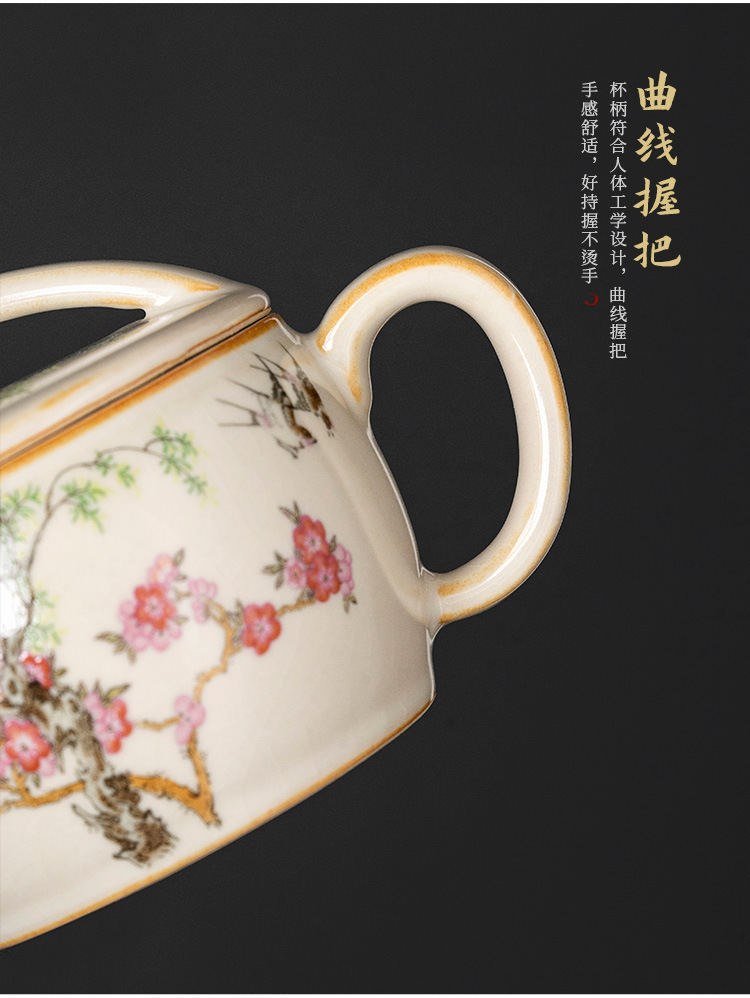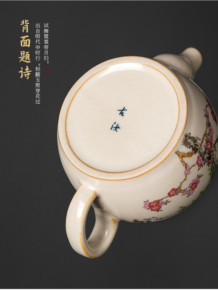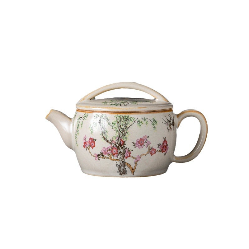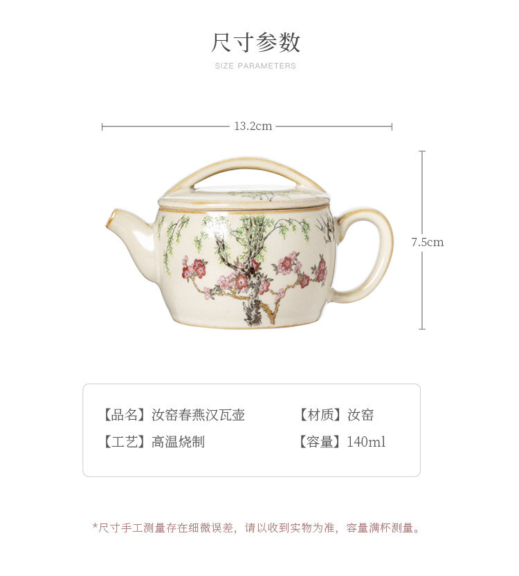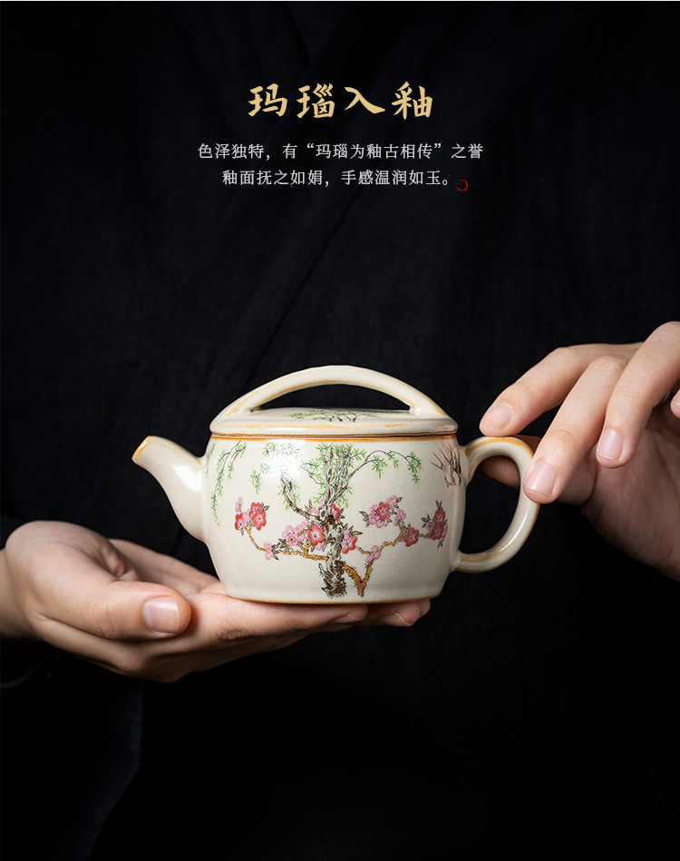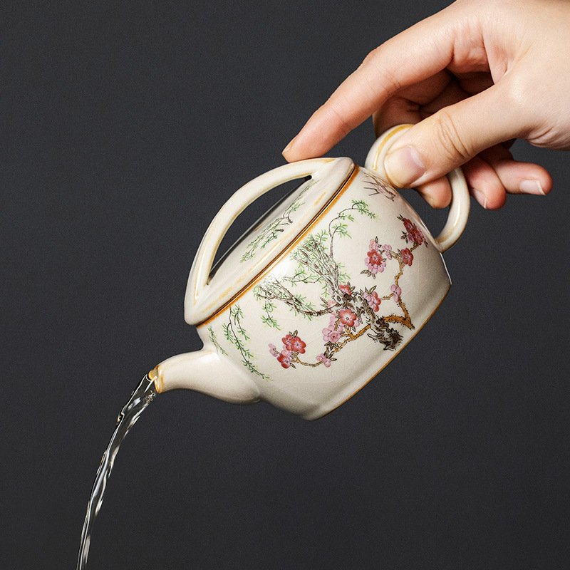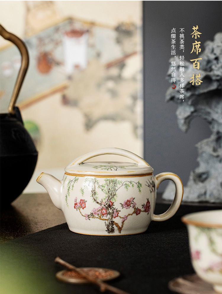 汝窑春燕汉方茶壶家用陶瓷单壶中式功夫茶具茶水分离泡茶壶泡茶器