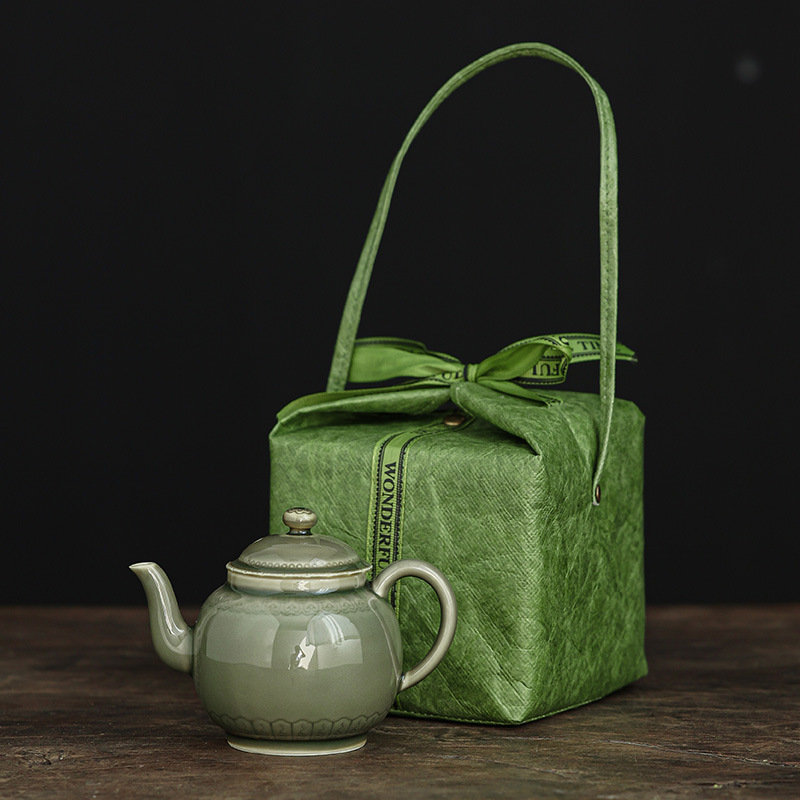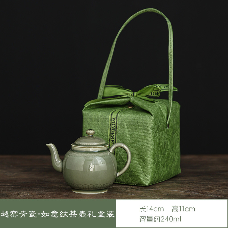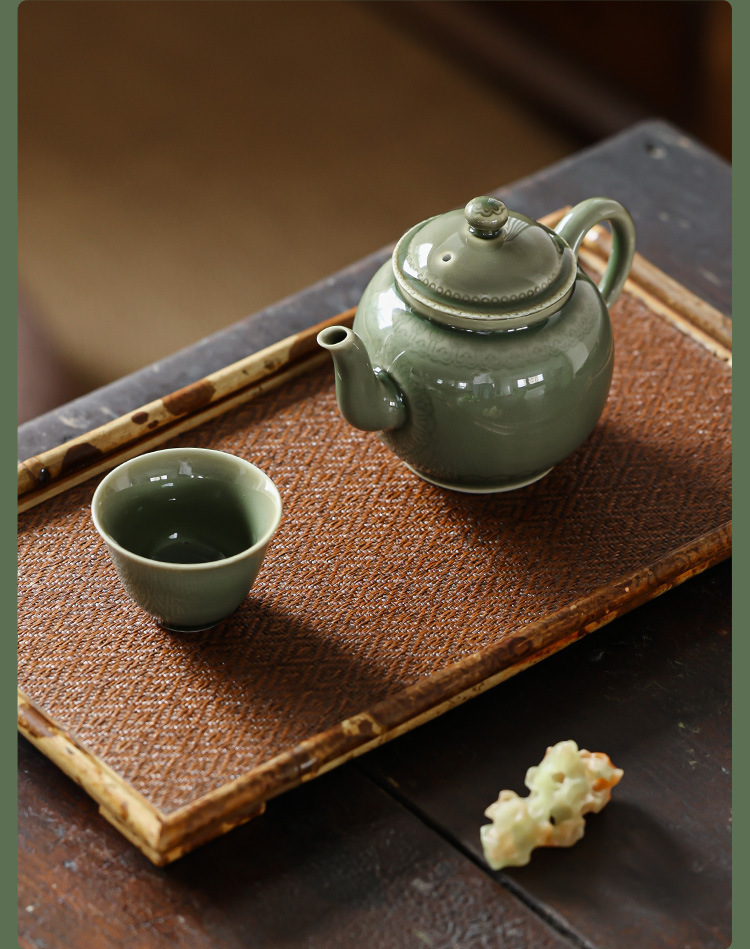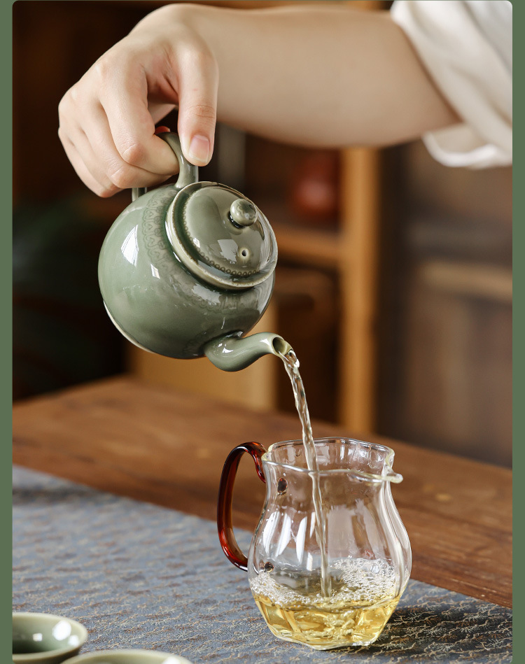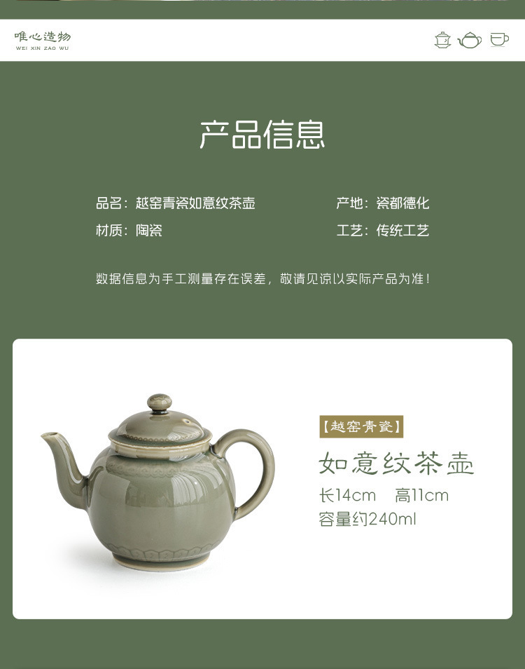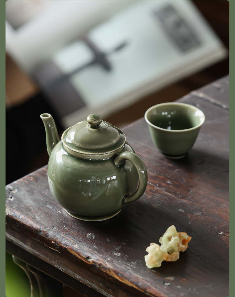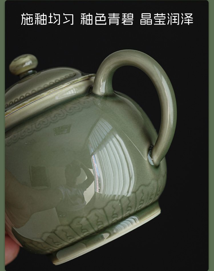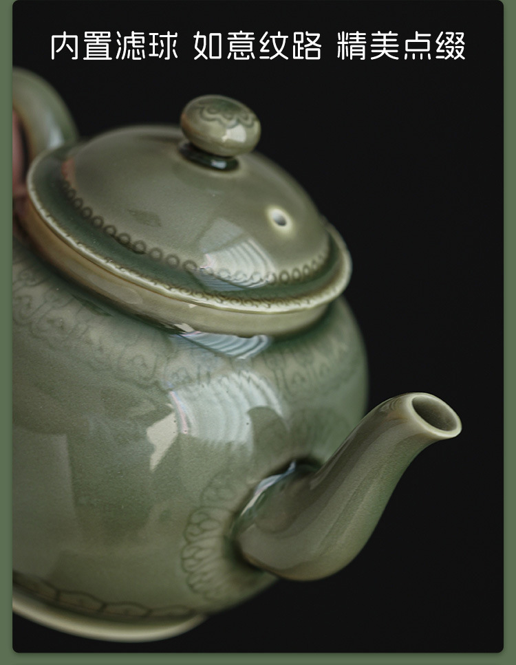 越窑青瓷茶壶单个高档泡茶壶家用功夫茶具如意纹路陶瓷大容量过滤