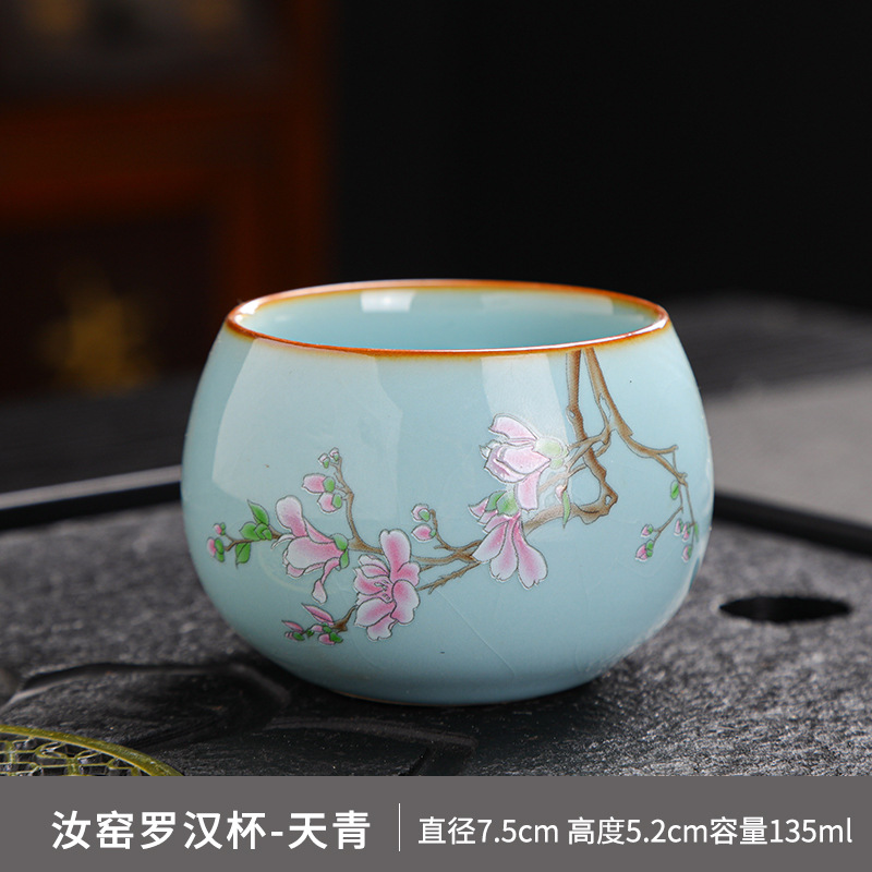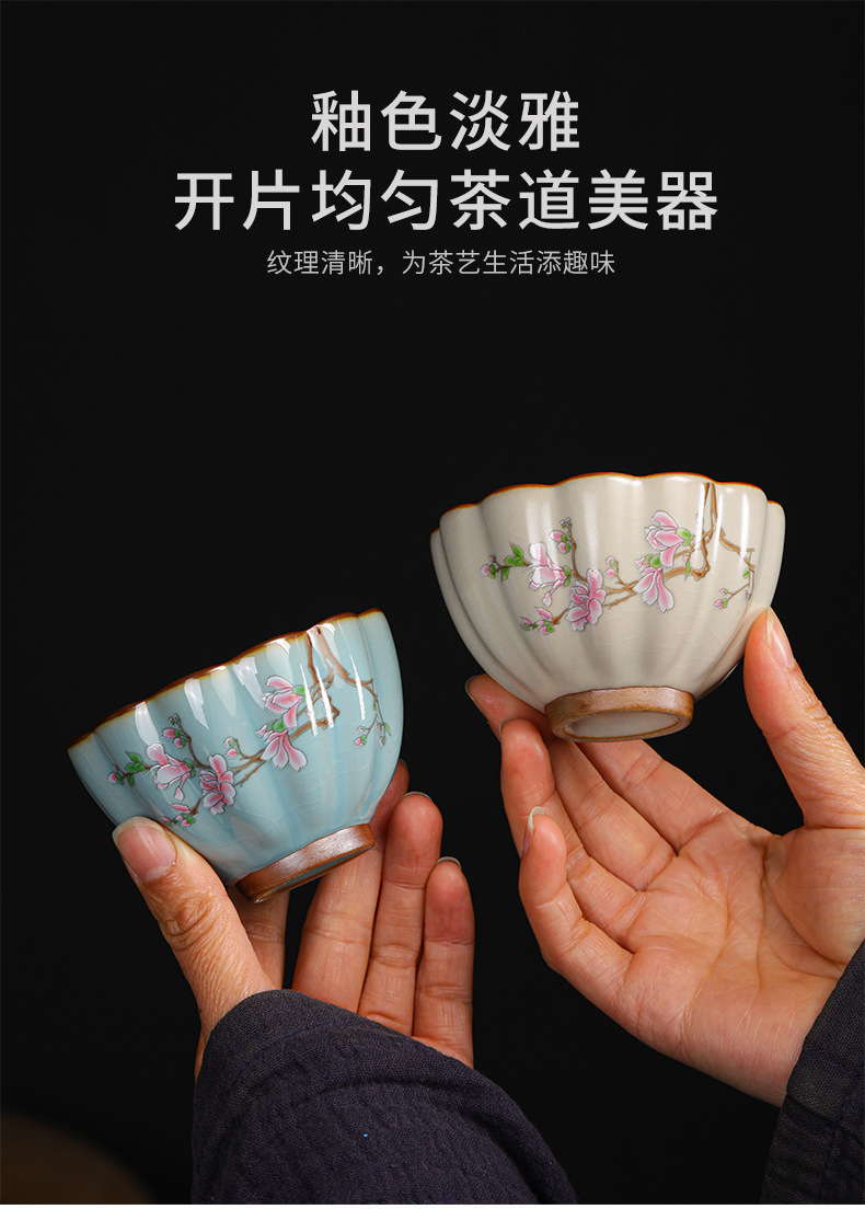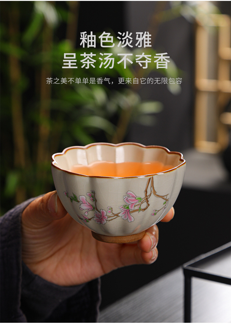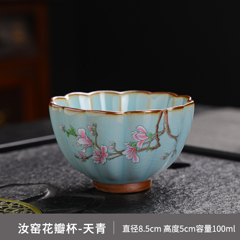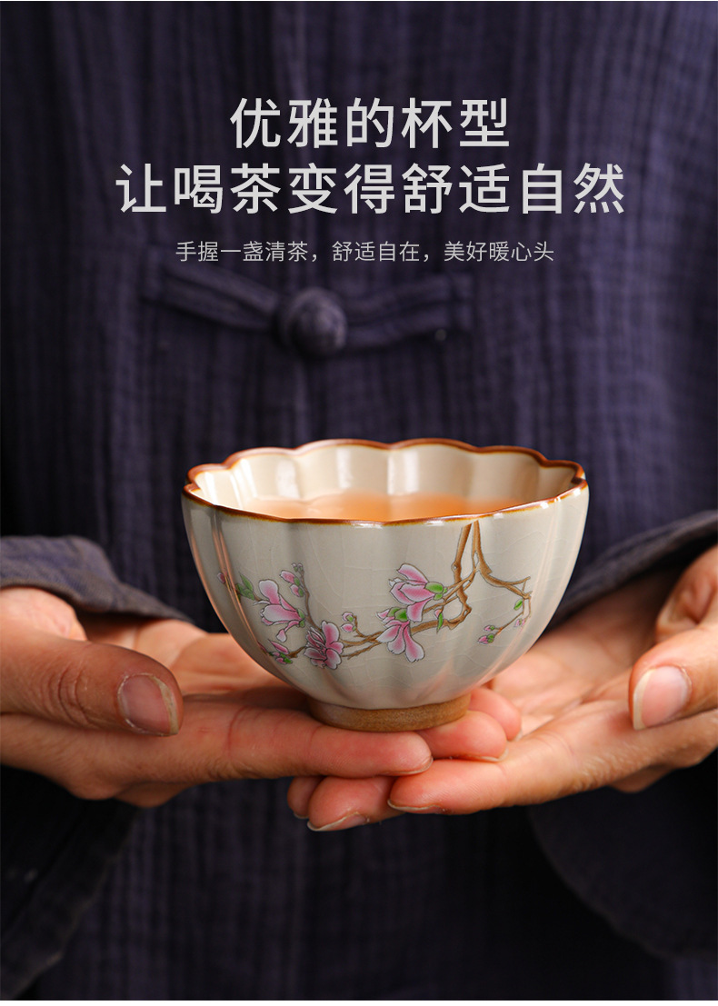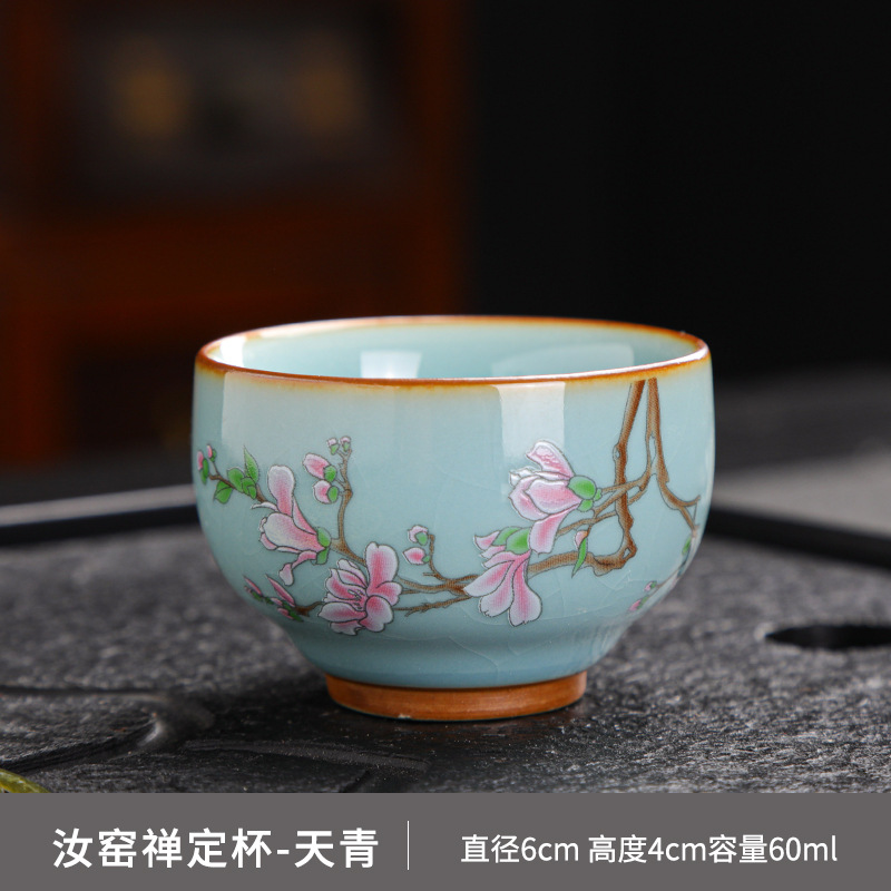 汝窑陶瓷茶杯个人专用兰花主人杯家用高端单杯功夫茶具茶盏品茗杯