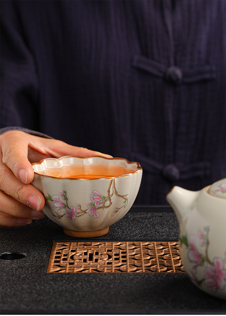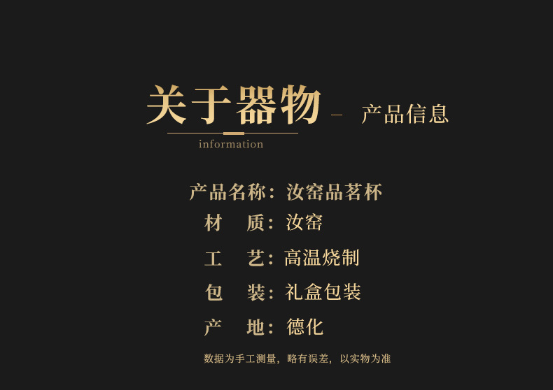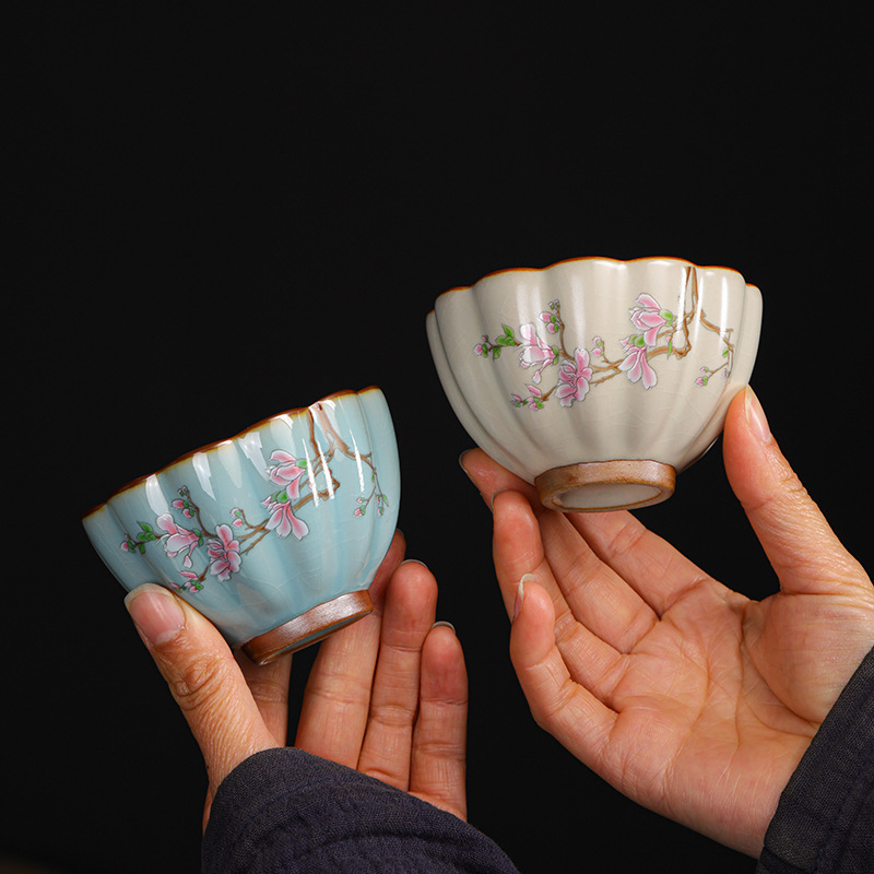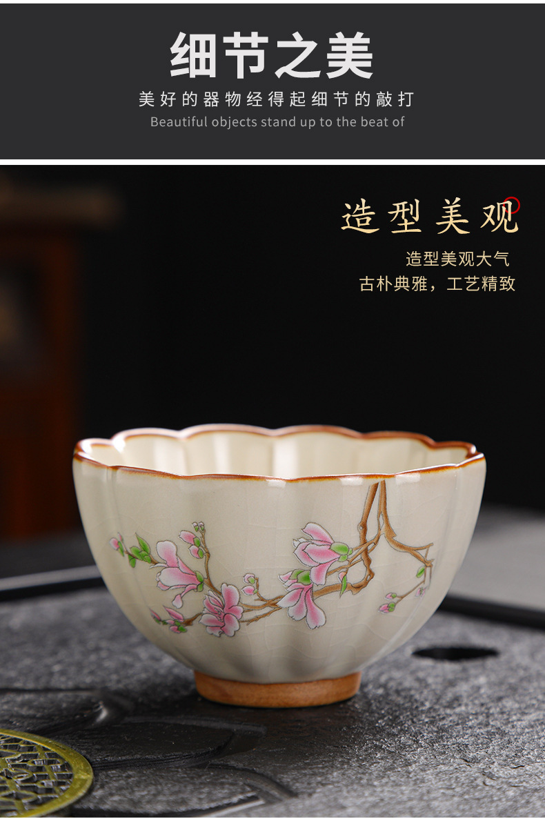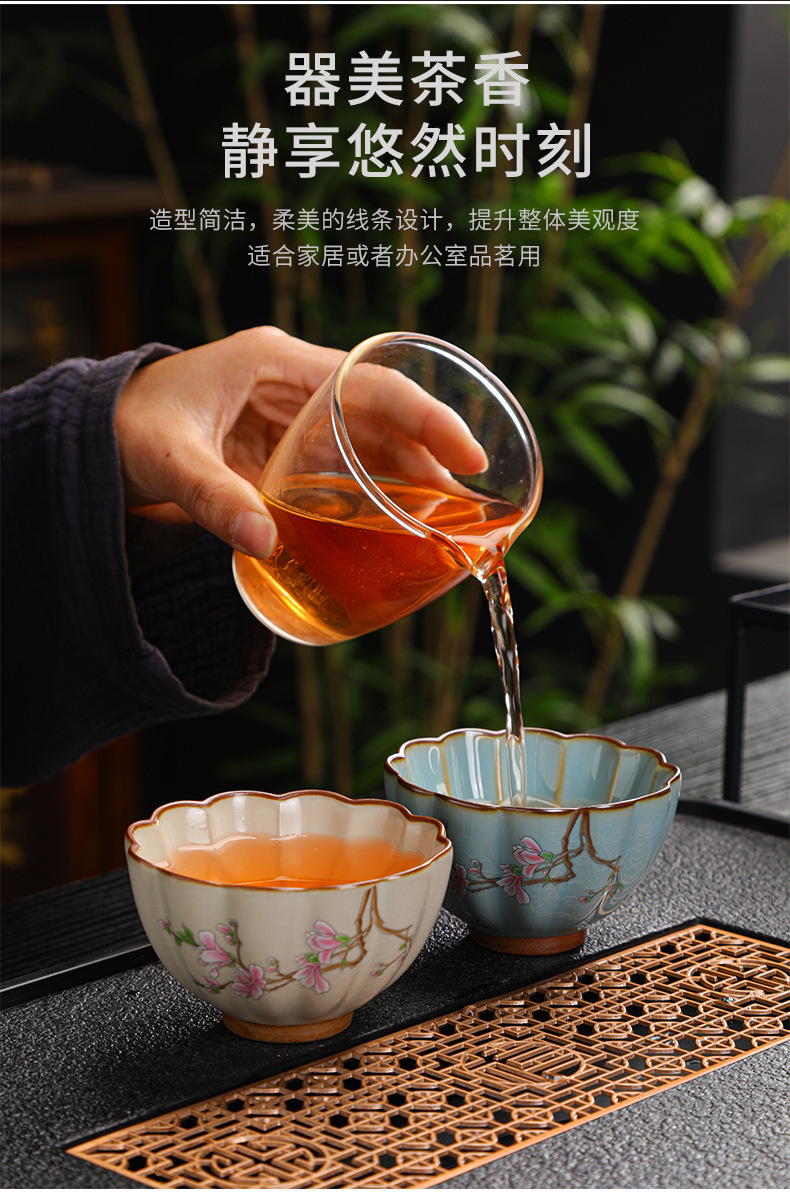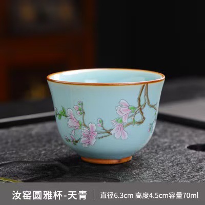 汝窑陶瓷茶杯个人专用兰花主人杯家用高端单杯功夫茶具茶盏品茗杯