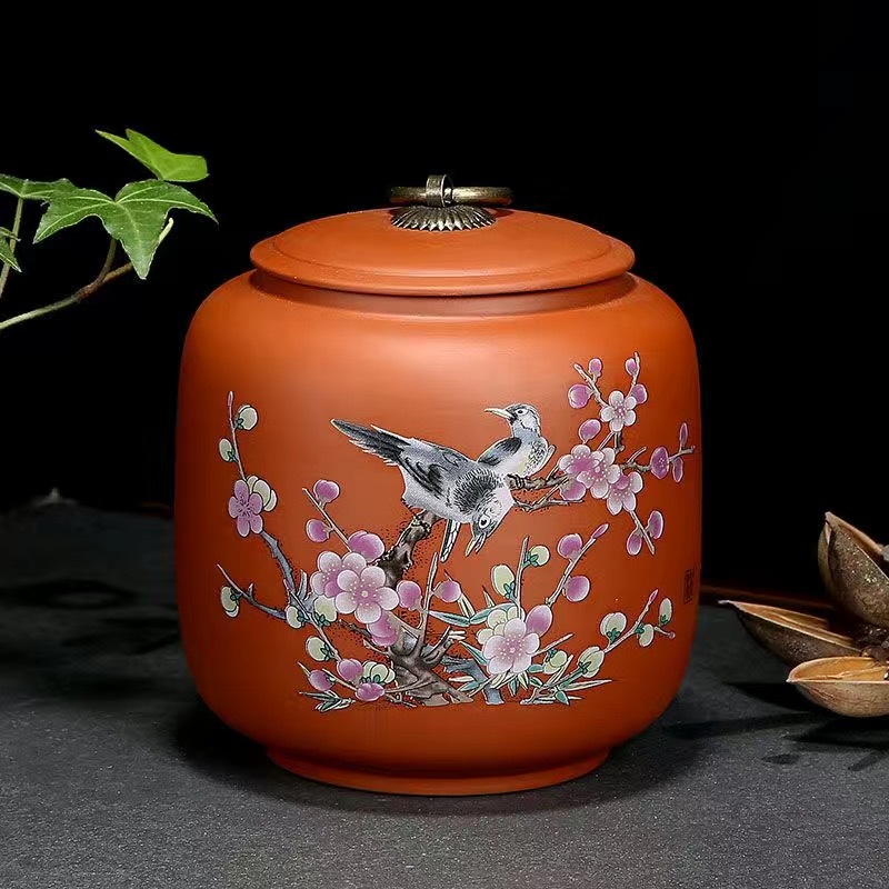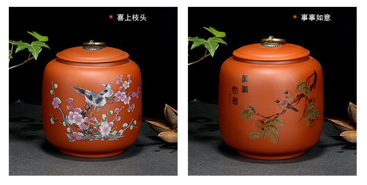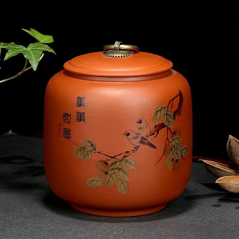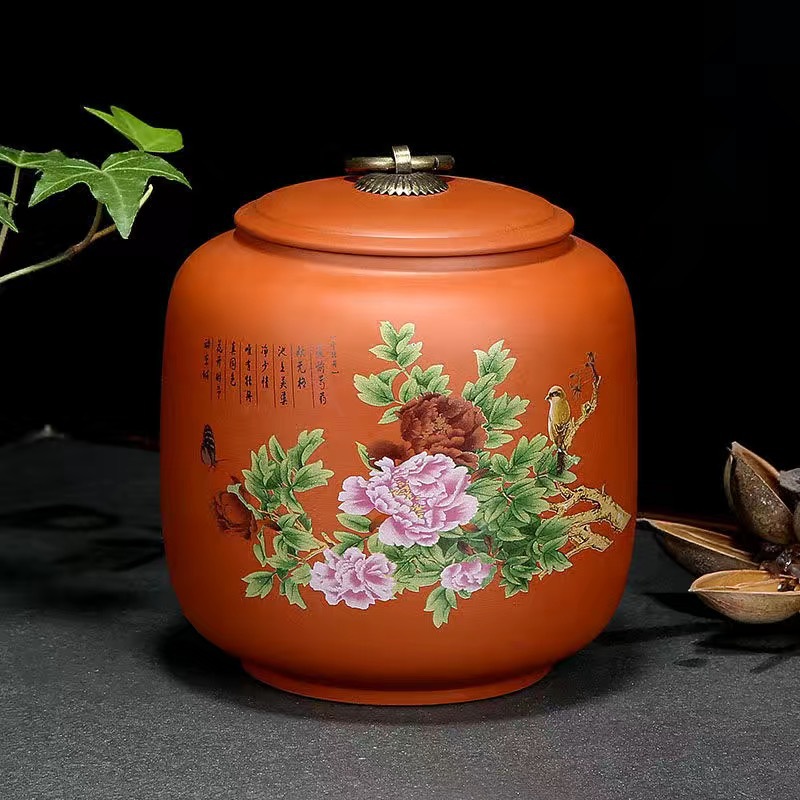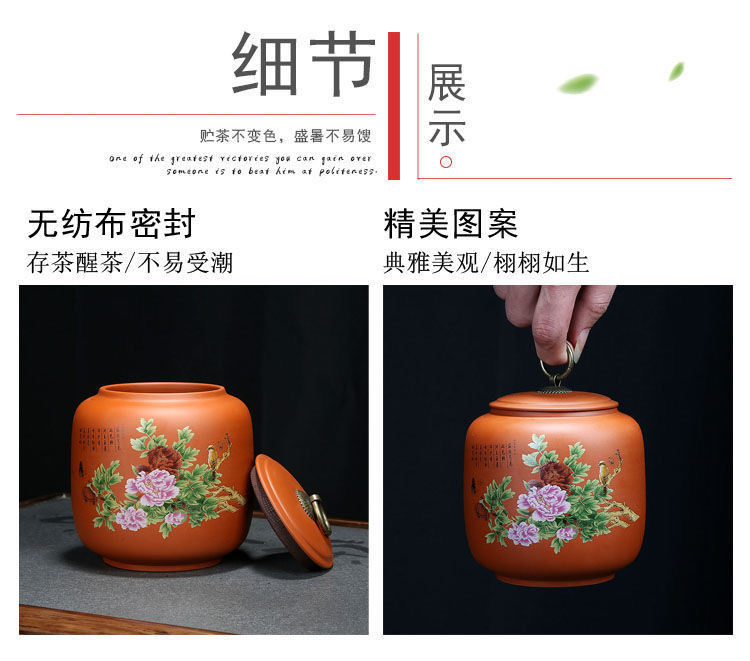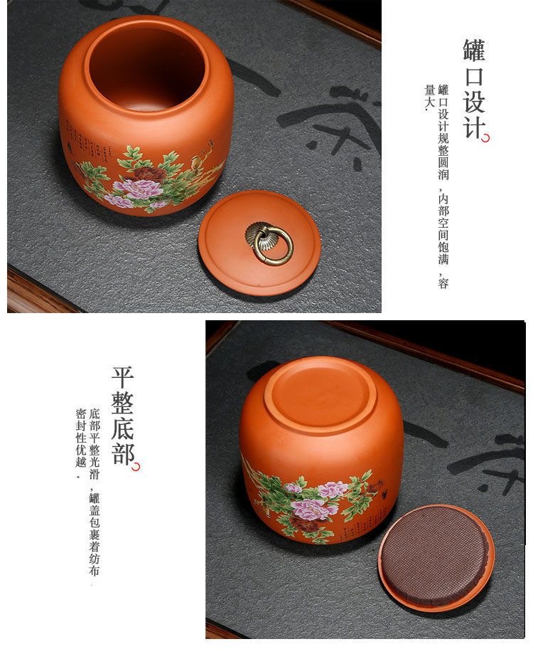 紫砂茶叶罐中号半斤装陶瓷防潮家用干果花茶密封罐普洱散茶储存罐