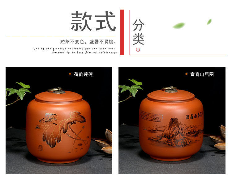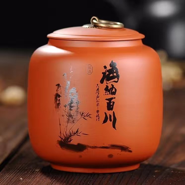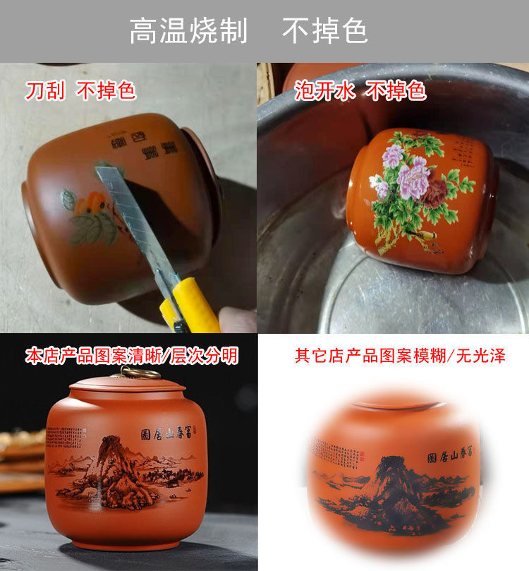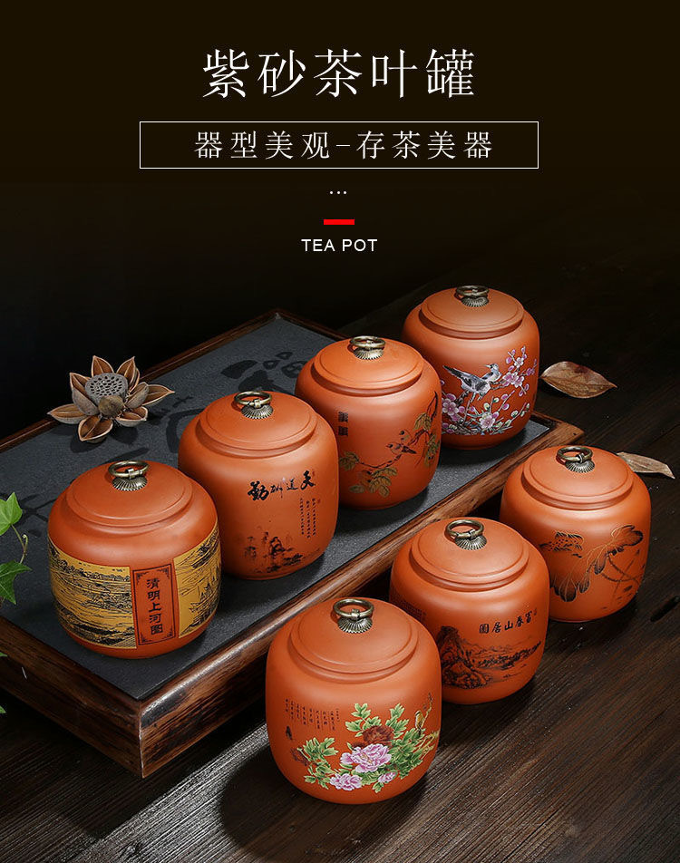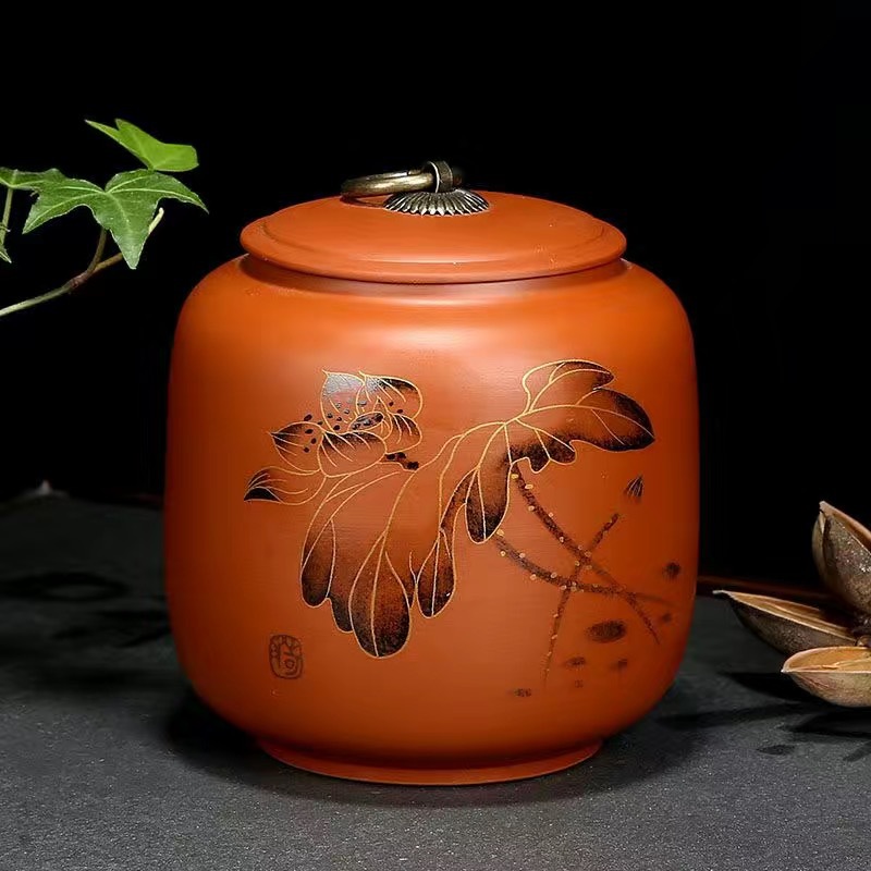 紫砂茶叶罐中号半斤装陶瓷防潮家用干果花茶密封罐普洱散茶储存罐
