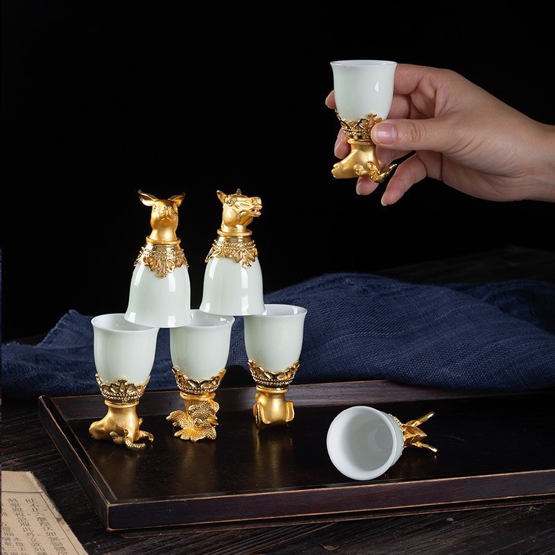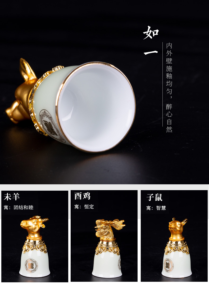 十二生肖兽首杯白酒杯家用中式仿古分酒器酒具套装小酒杯酒盅一口