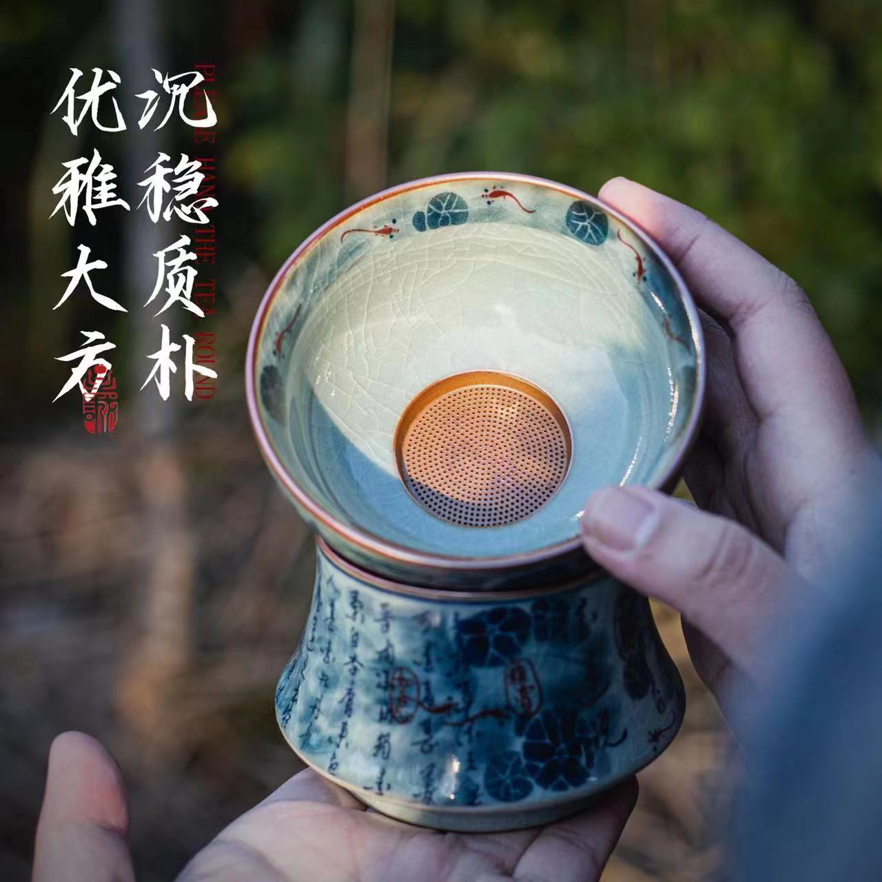 老陶泥哥窑开片过滤茶漏功夫泡茶架茶滤过滤器新型茶叶隔滤网千孔