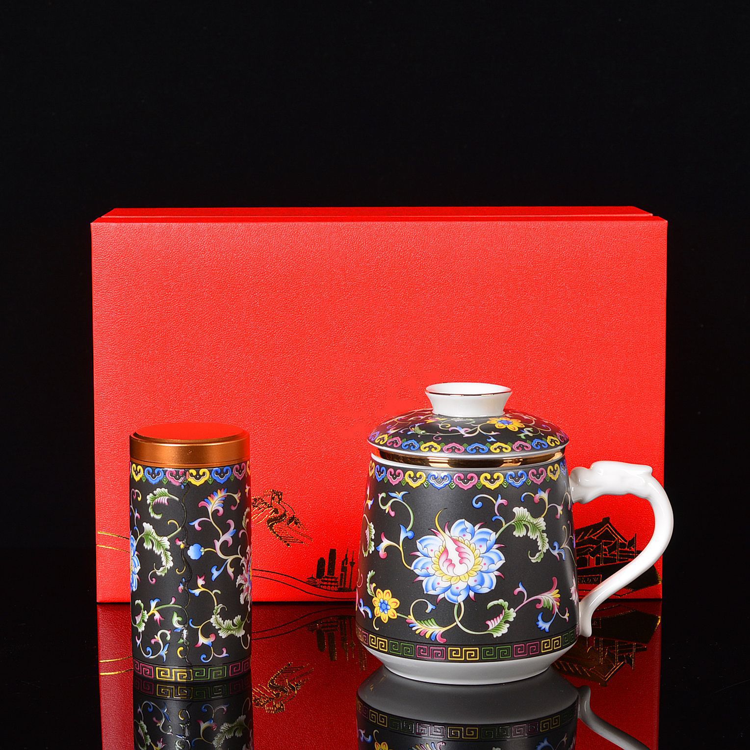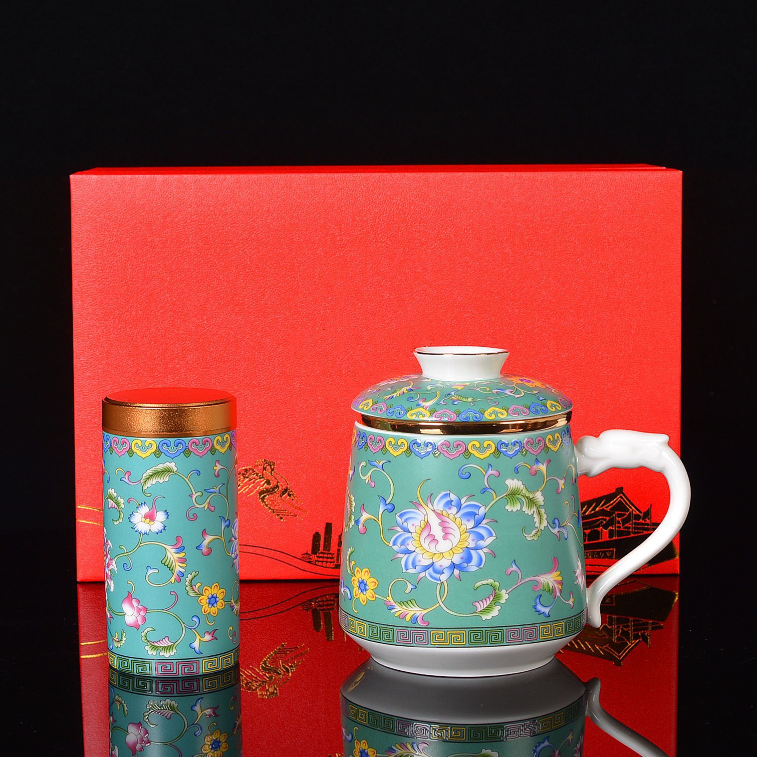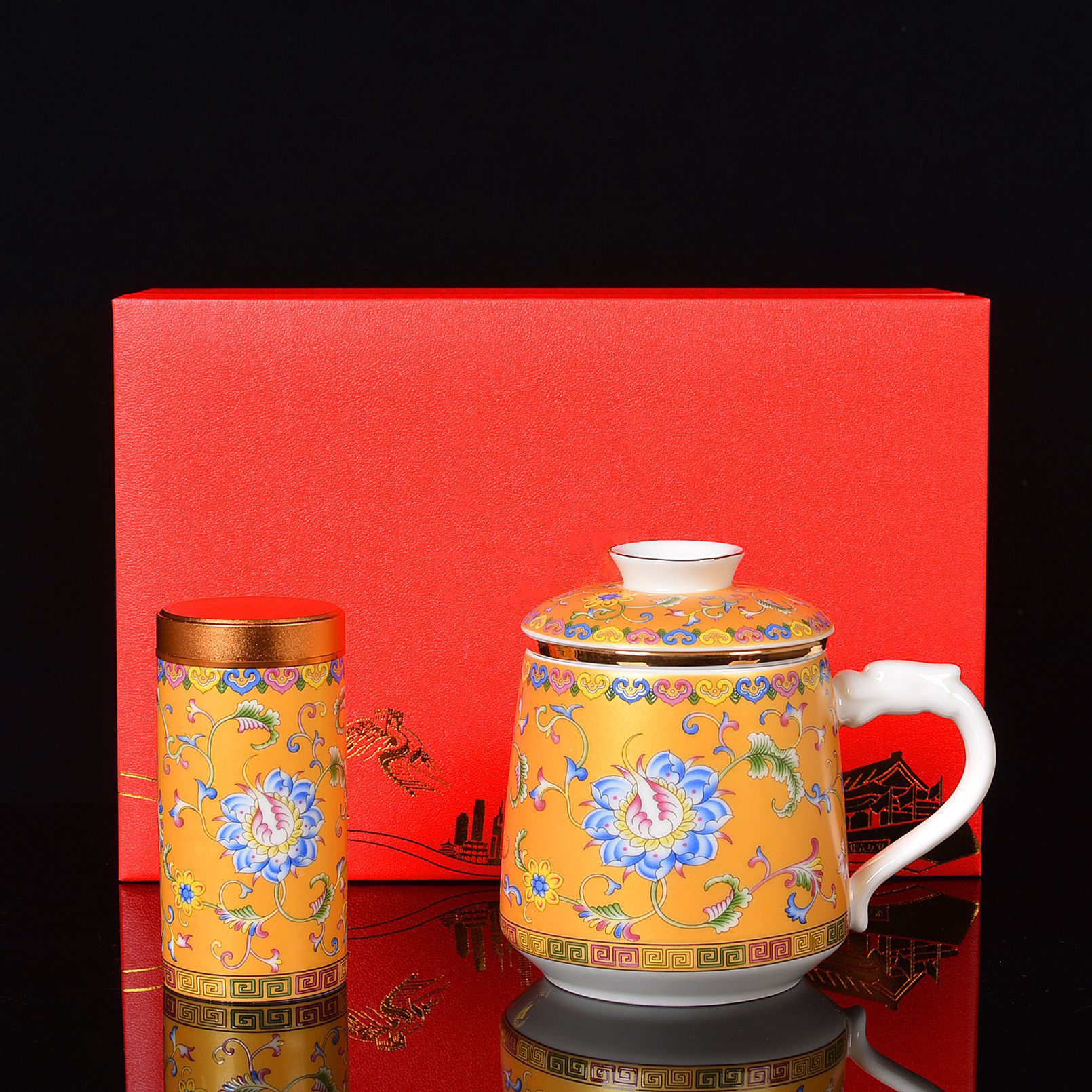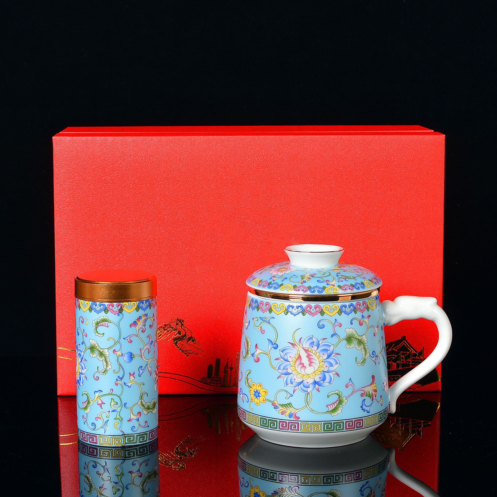 珐琅彩羊脂玉瓷水杯陶瓷办公杯带盖个人杯茶叶罐礼品可以雕刻logo