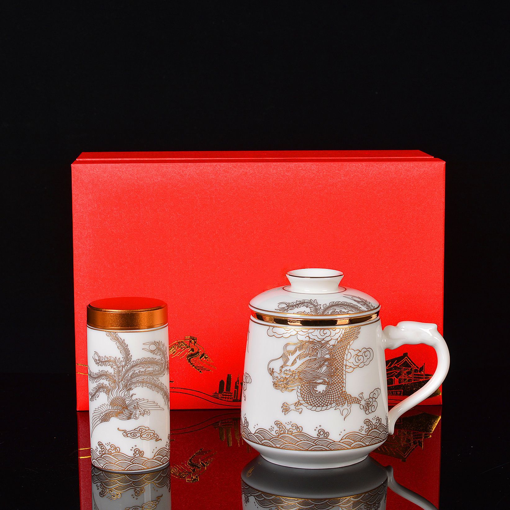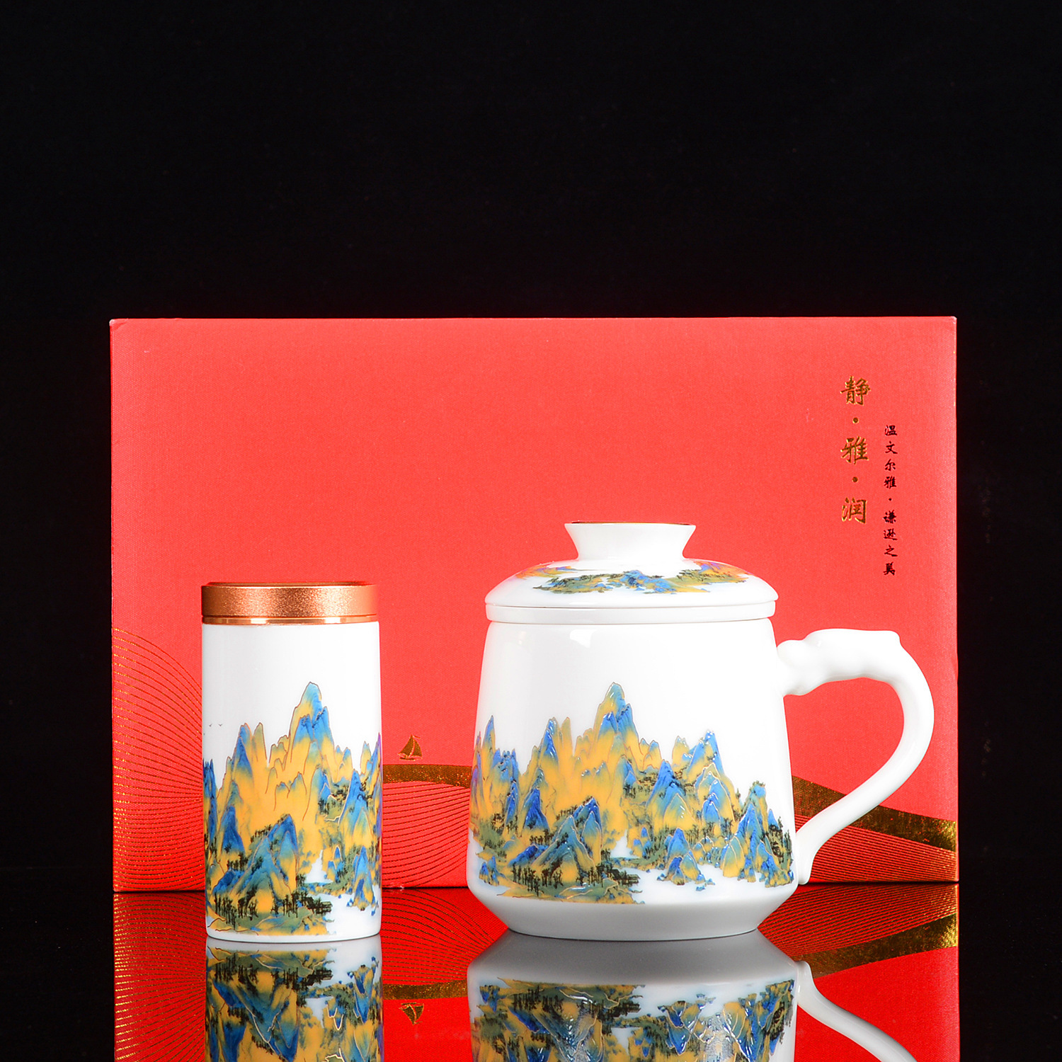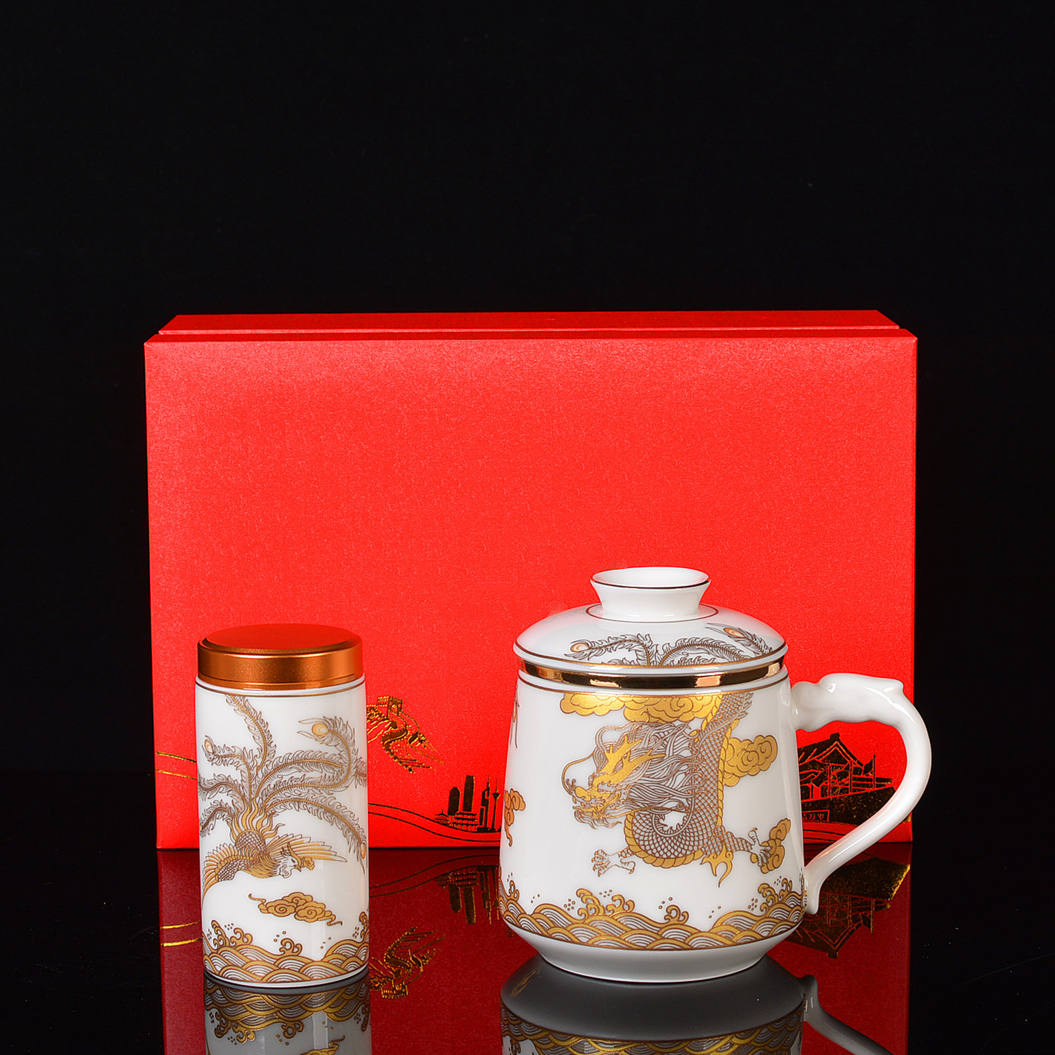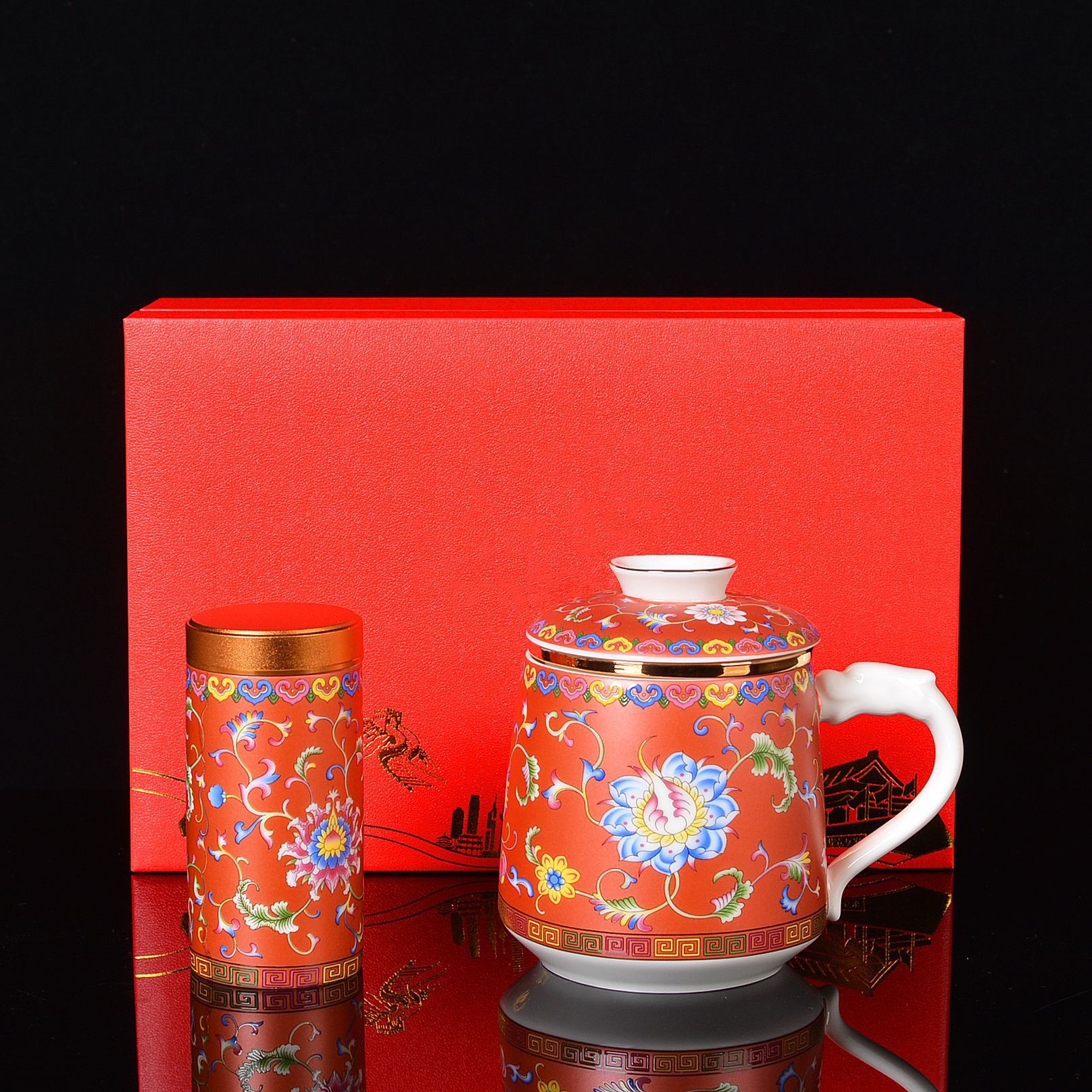 珐琅彩羊脂玉瓷水杯陶瓷办公杯带盖个人杯茶叶罐礼品可以雕刻logo
