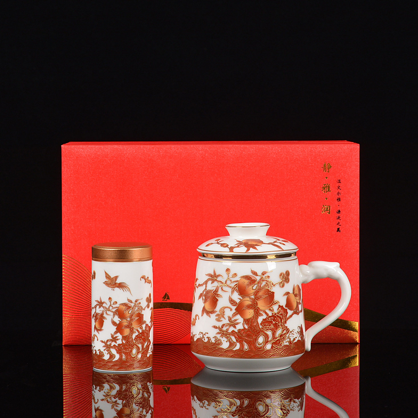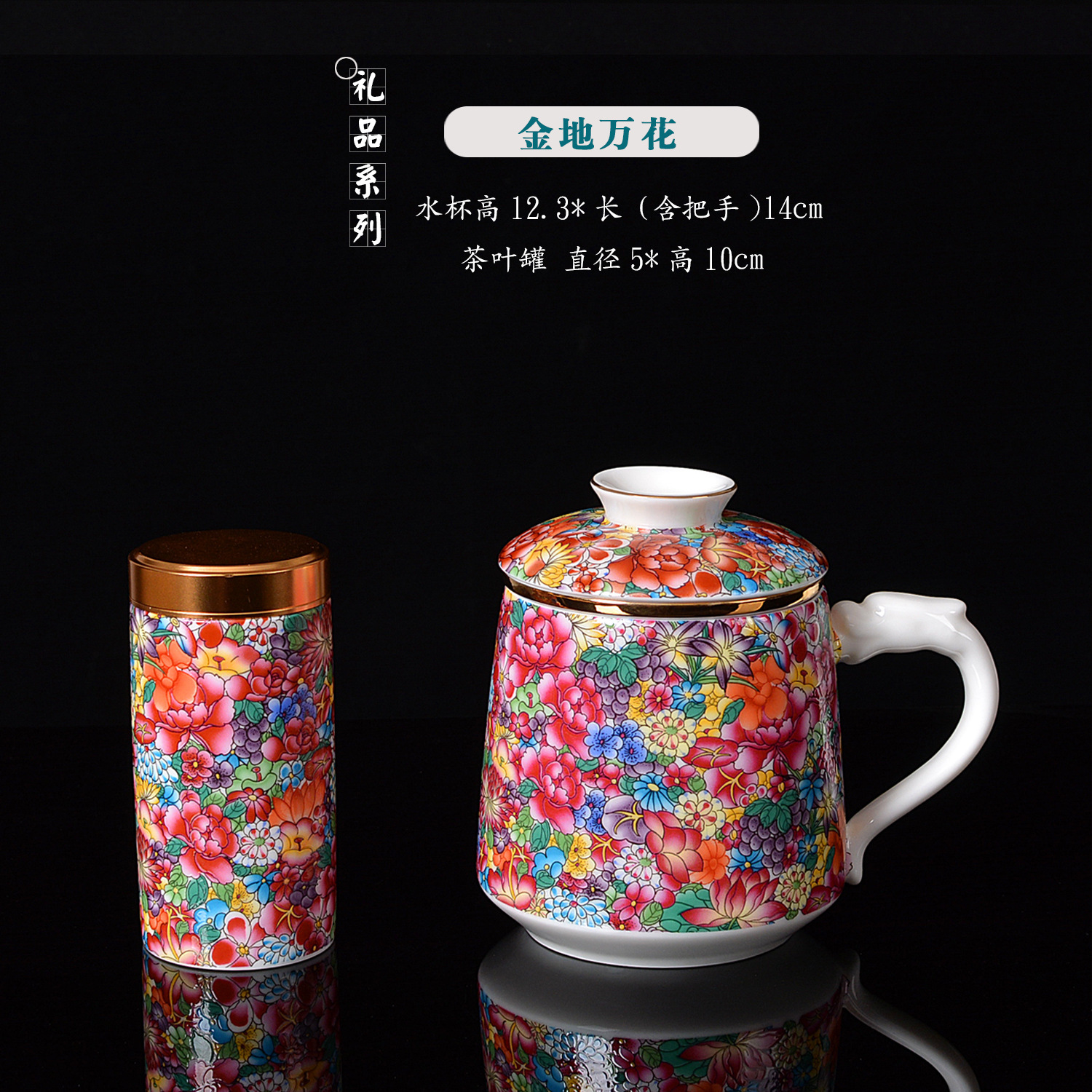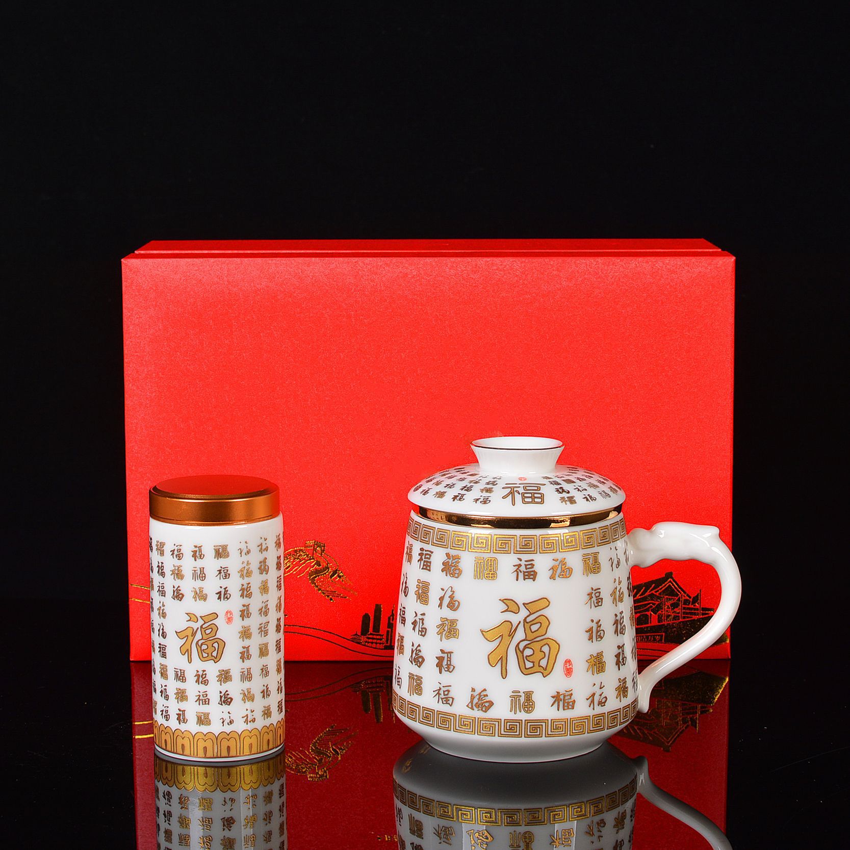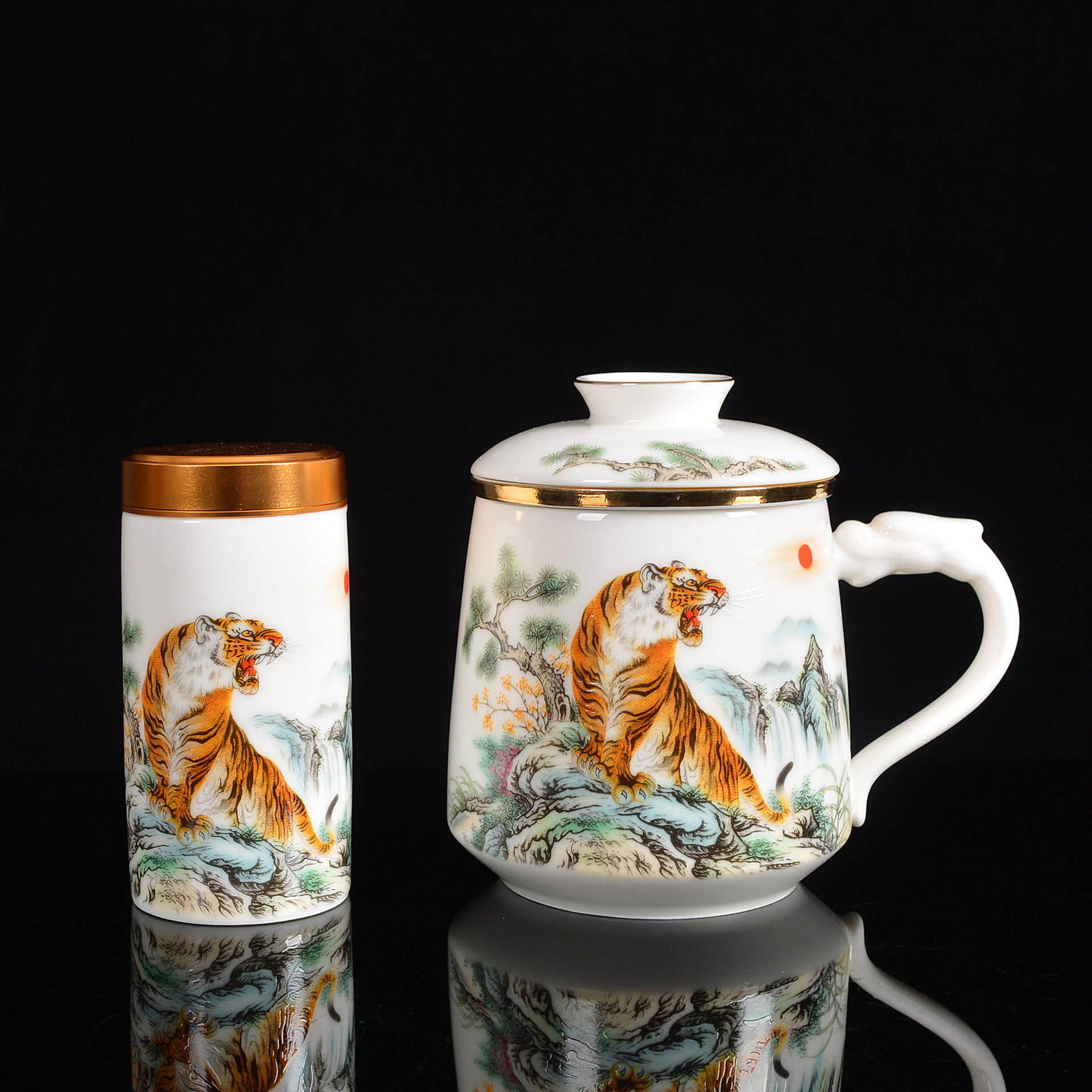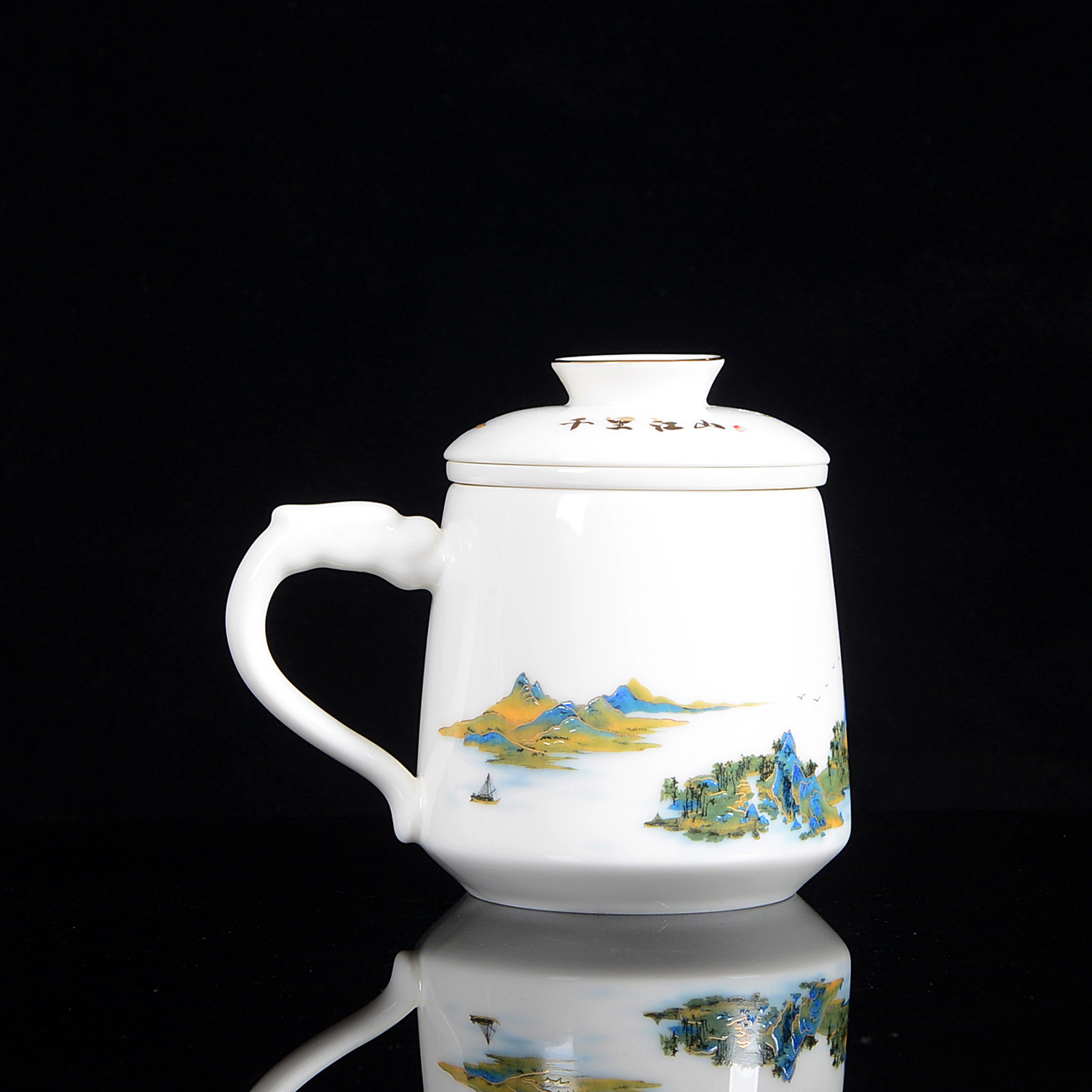 珐琅彩羊脂玉瓷水杯陶瓷办公杯带盖个人杯茶叶罐礼品可以雕刻logo