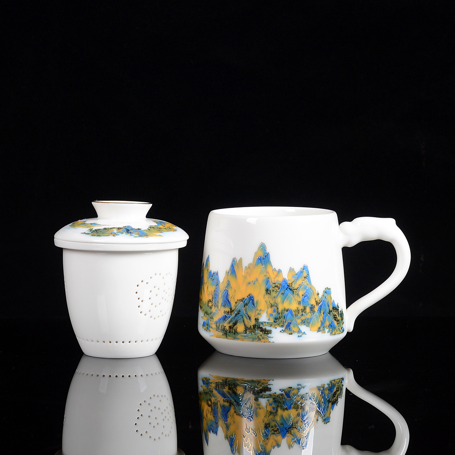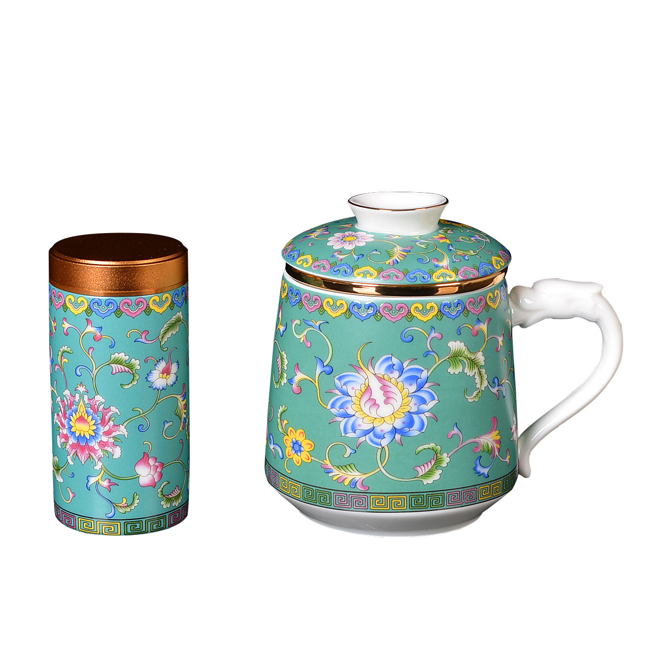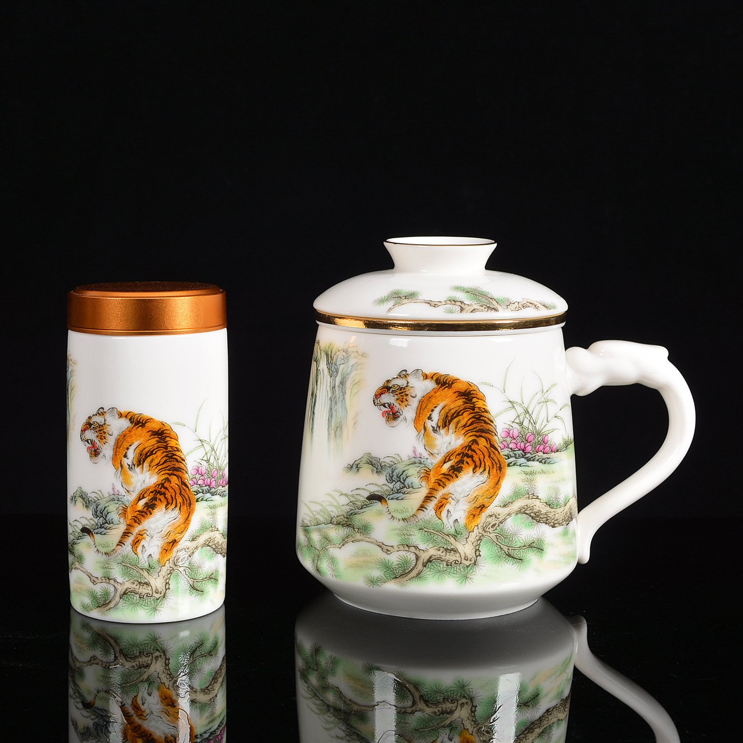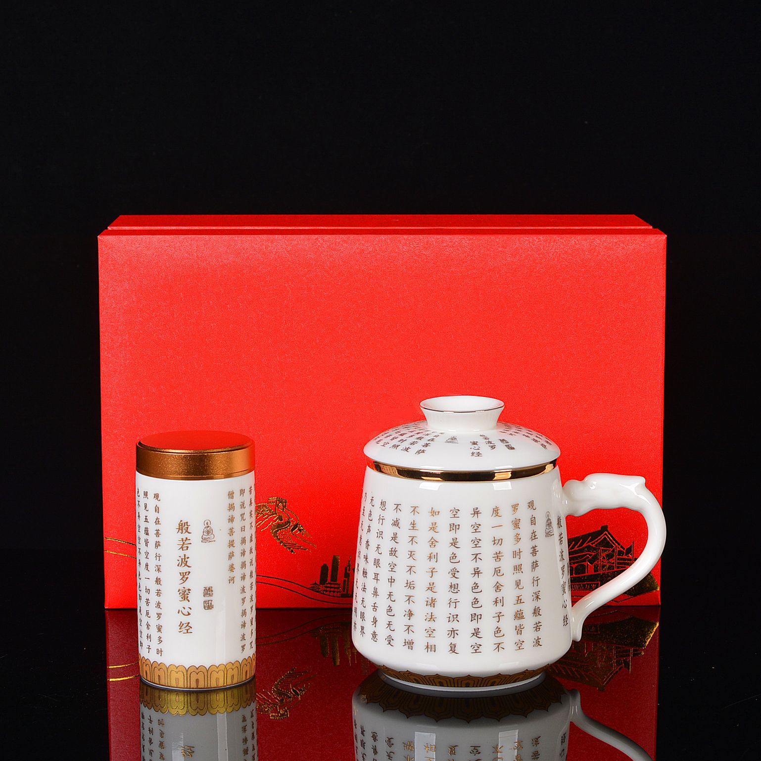 珐琅彩羊脂玉瓷水杯陶瓷办公杯带盖个人杯茶叶罐礼品可以雕刻logo