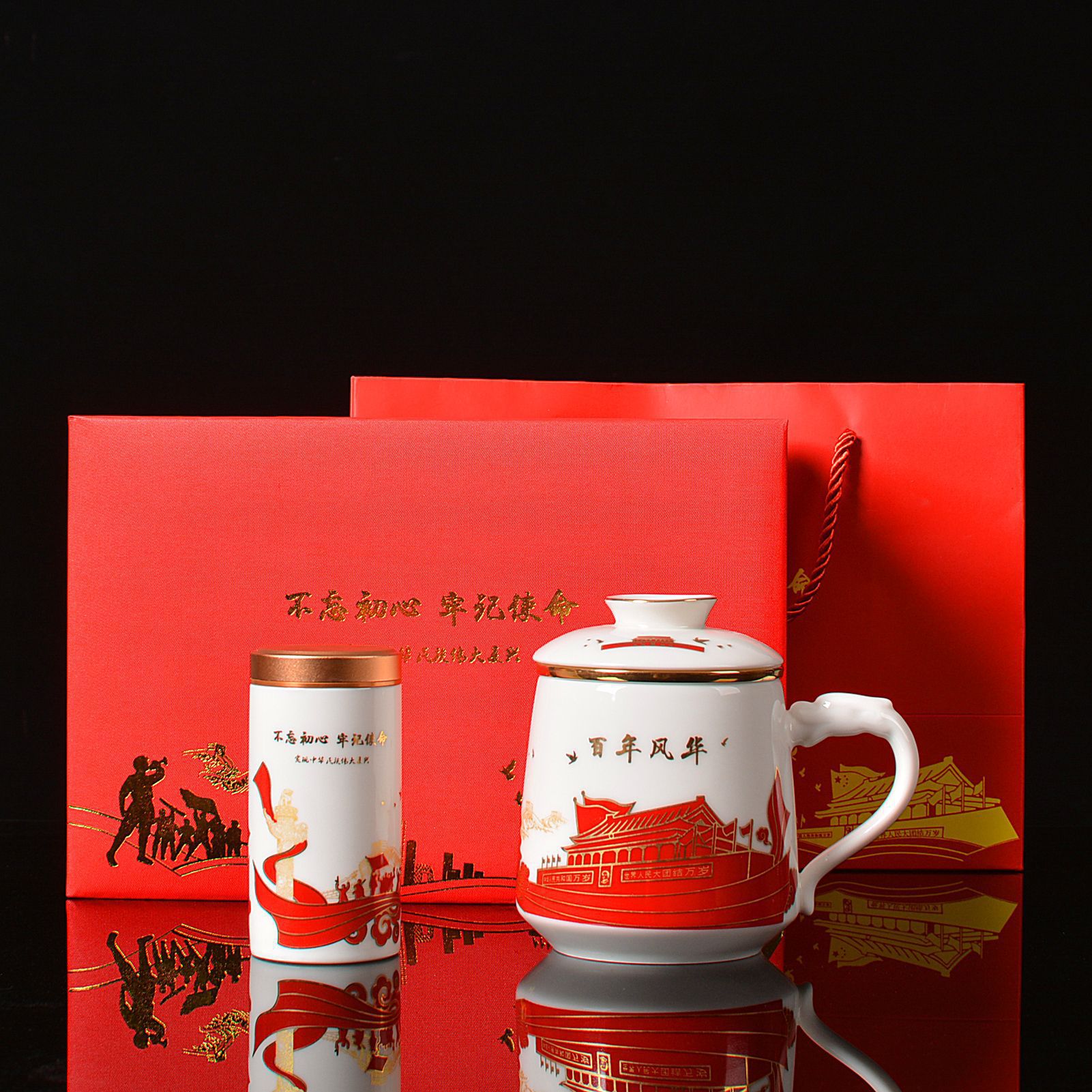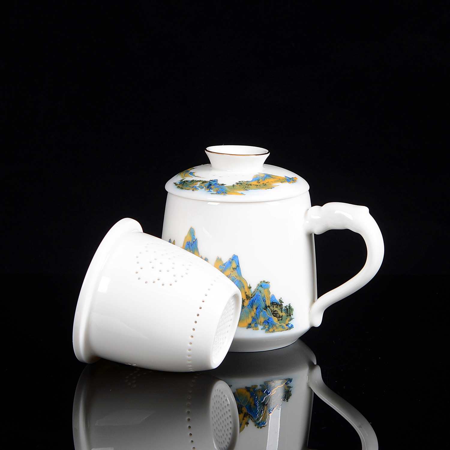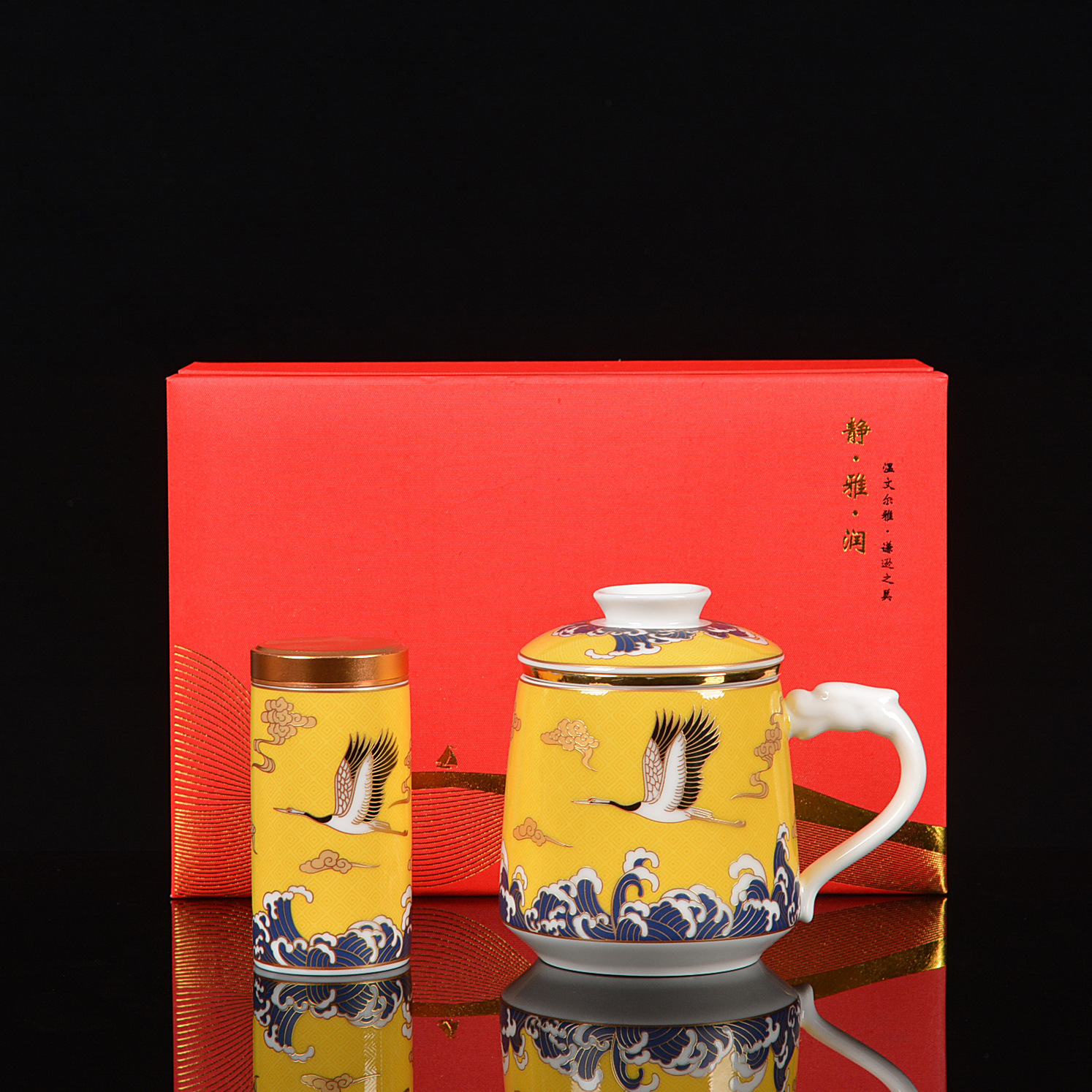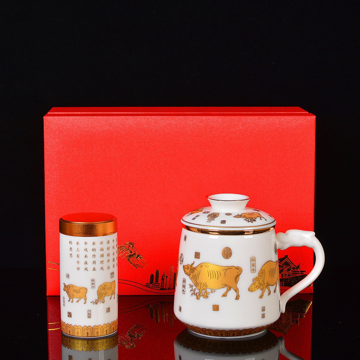 珐琅彩羊脂玉瓷水杯陶瓷办公杯带盖个人杯茶叶罐礼品可以雕刻logo