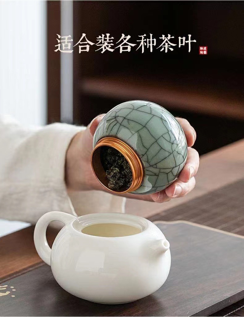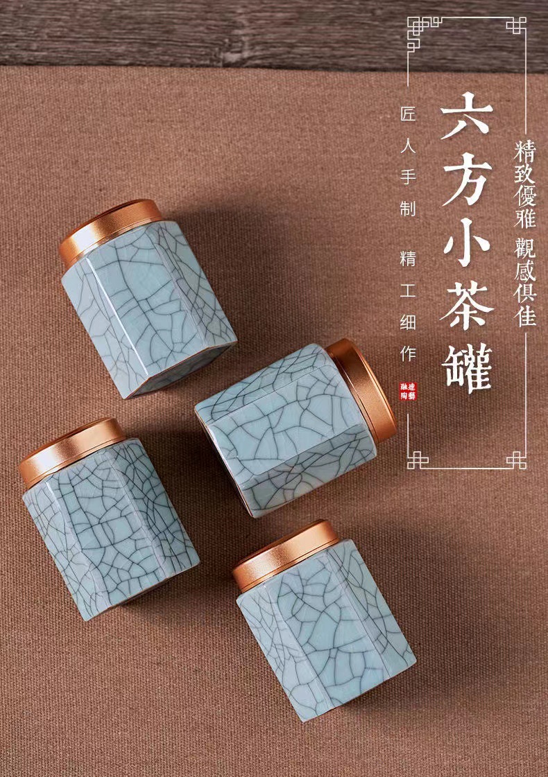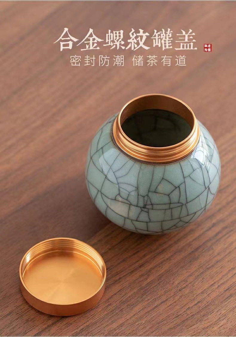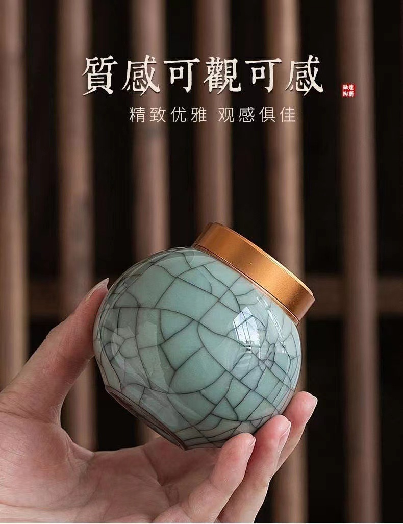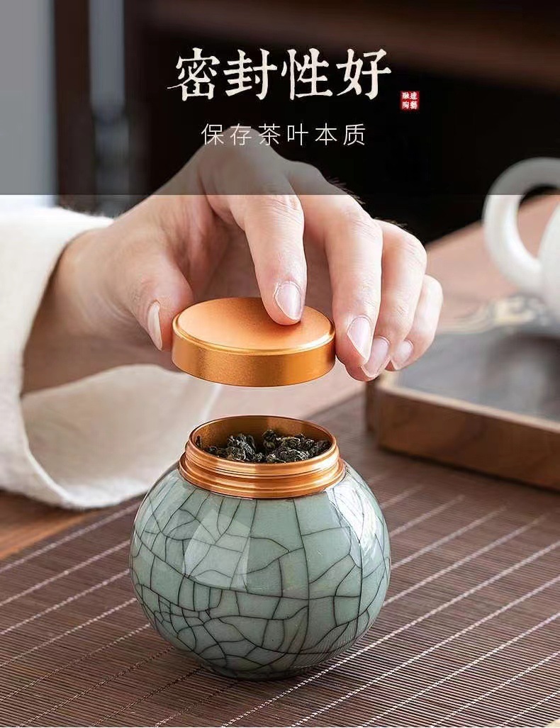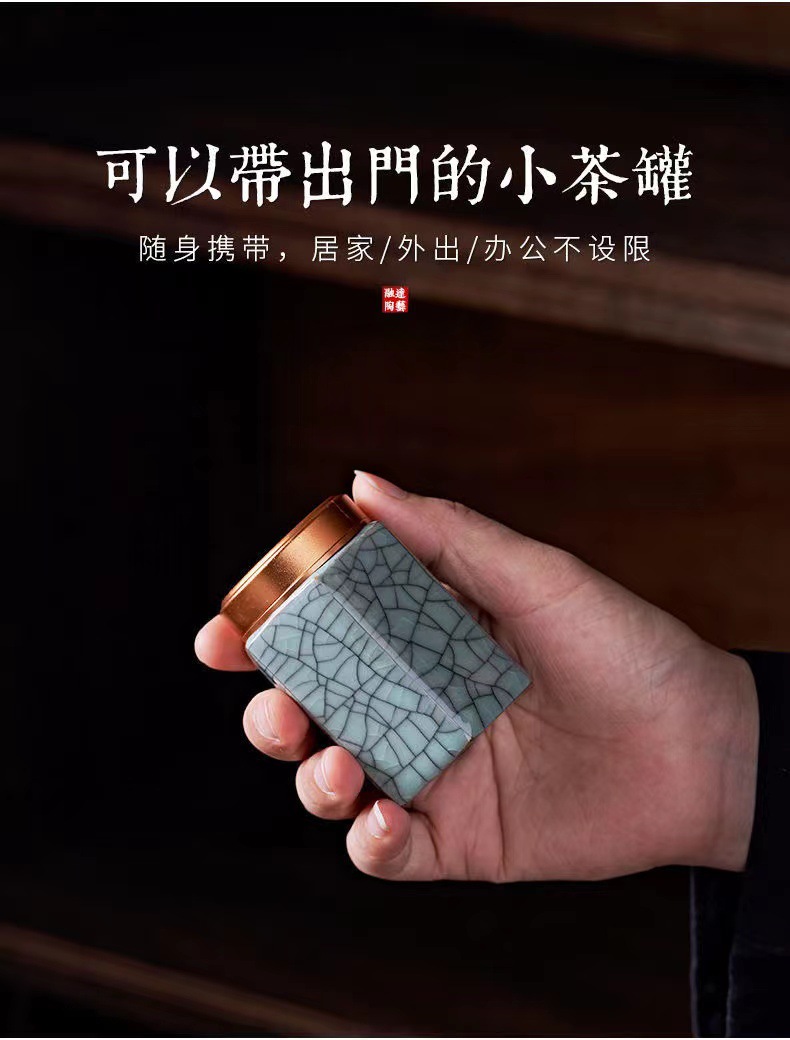 陶瓷茶叶罐迷你小茶仓便携式开片冰裂密封罐青瓷防潮小号储物罐子