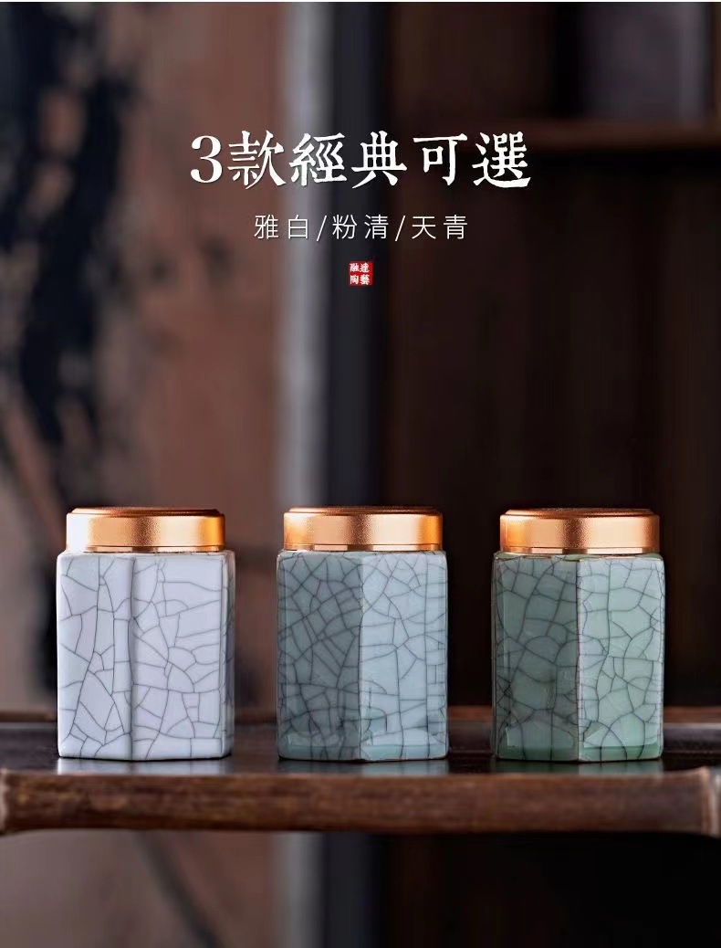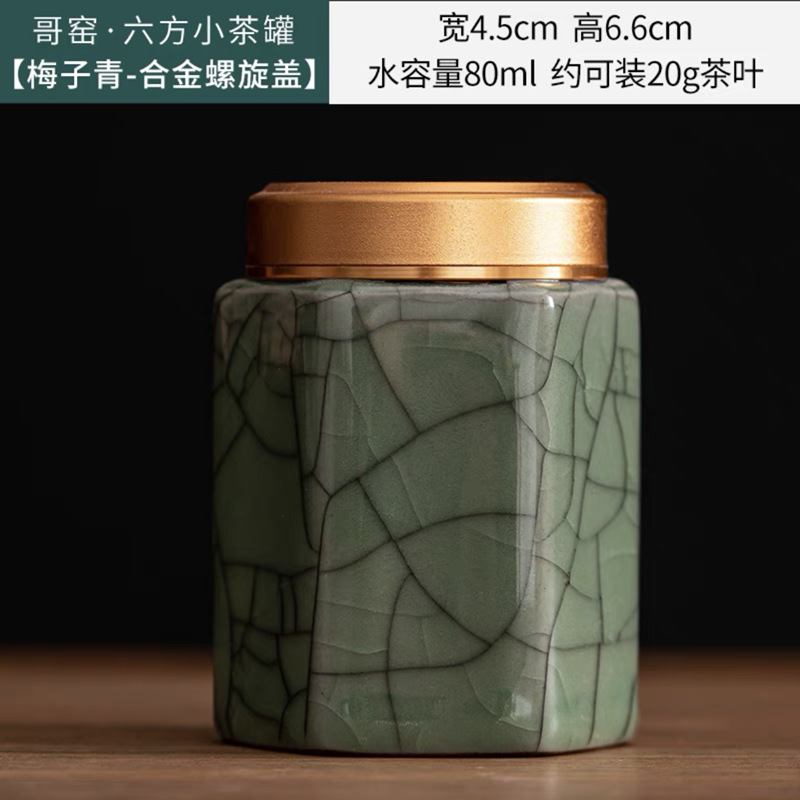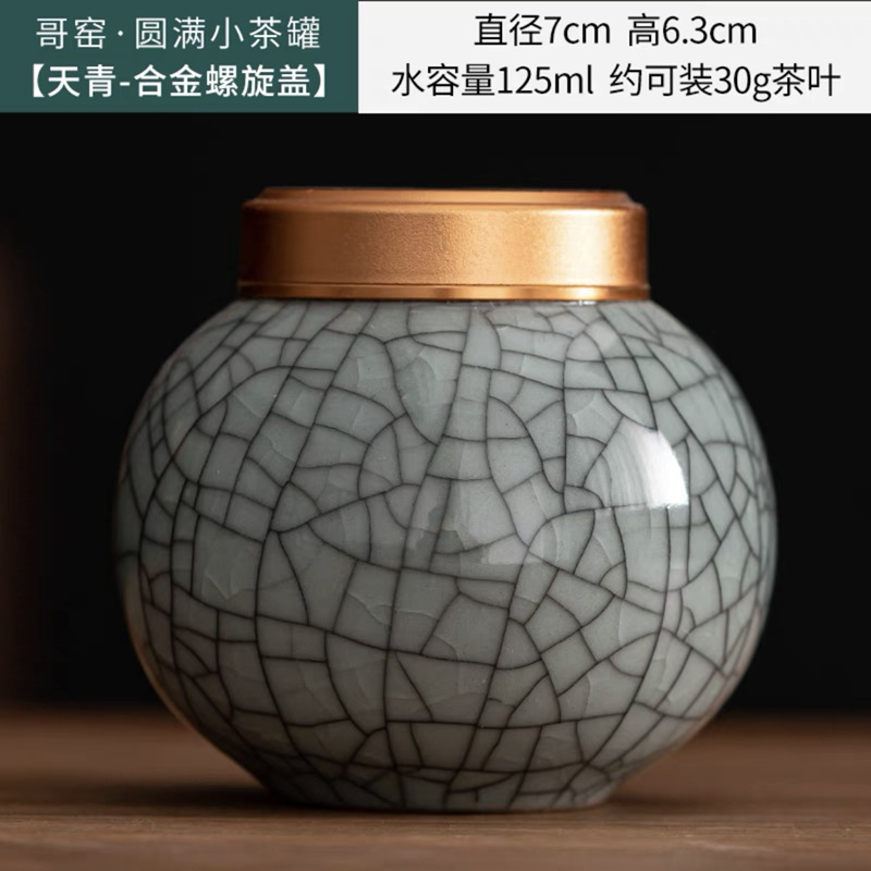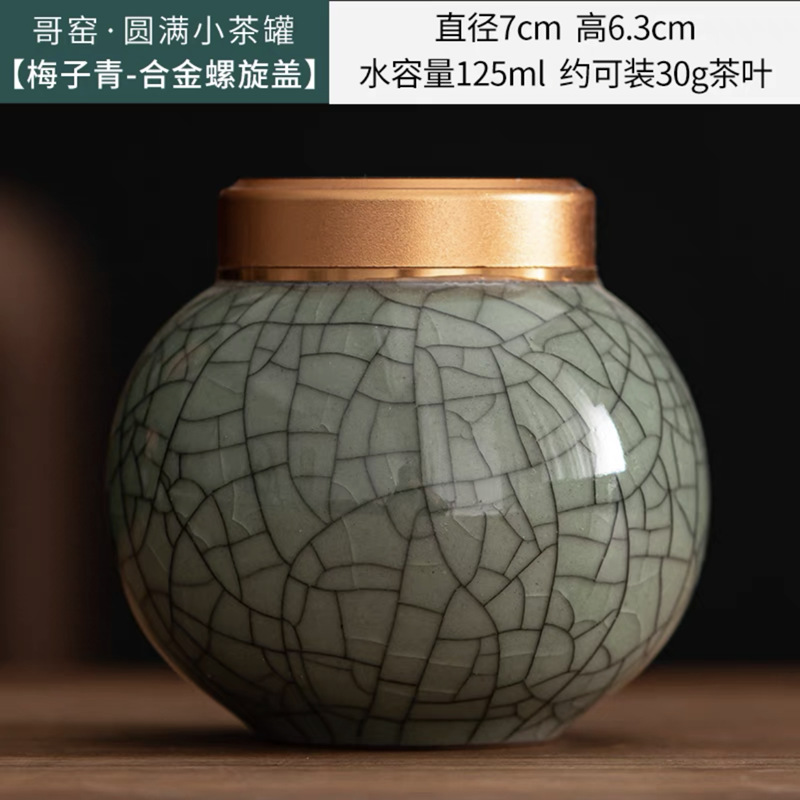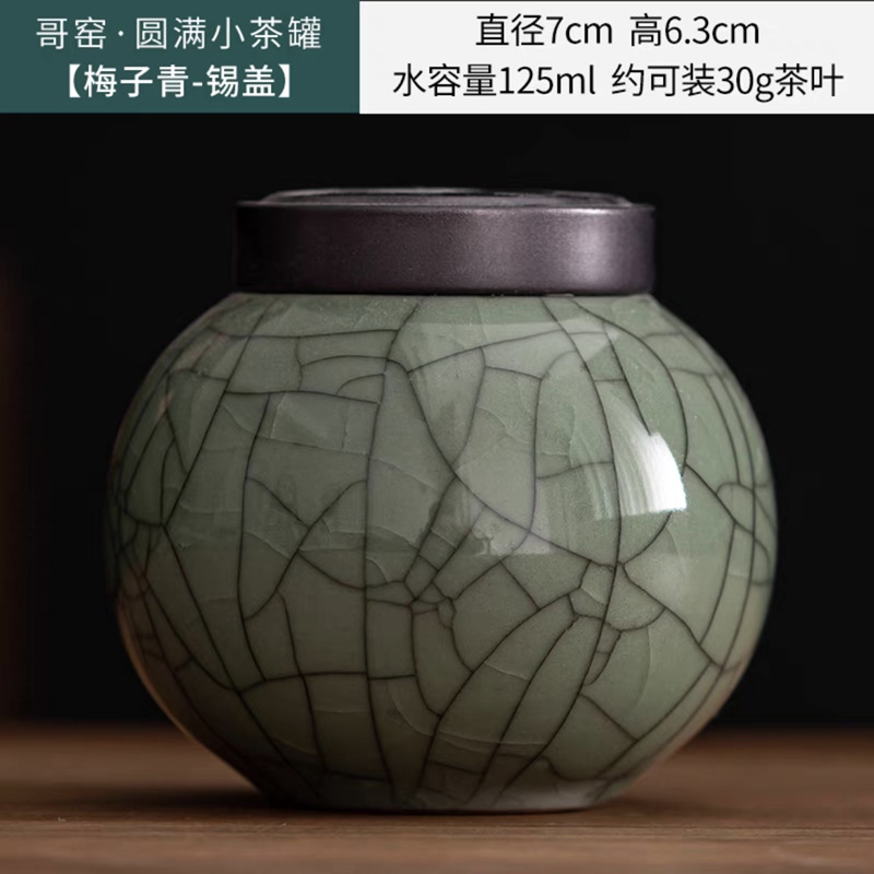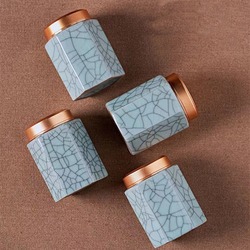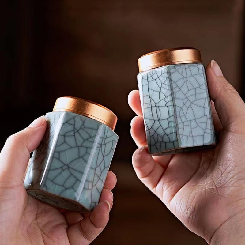陶瓷茶叶罐迷你小茶仓便携式开片冰裂密封罐青瓷防潮小号储物罐子