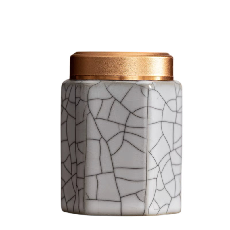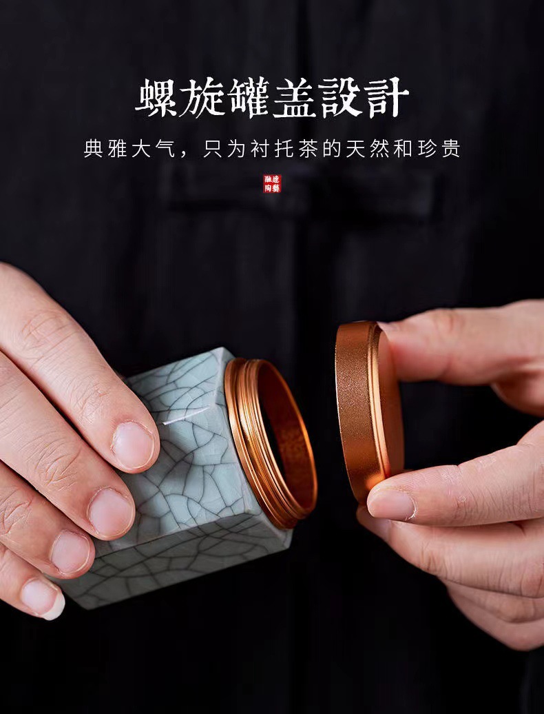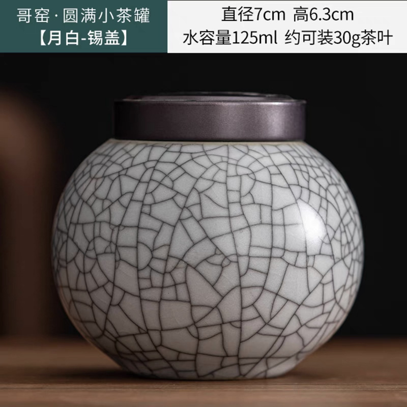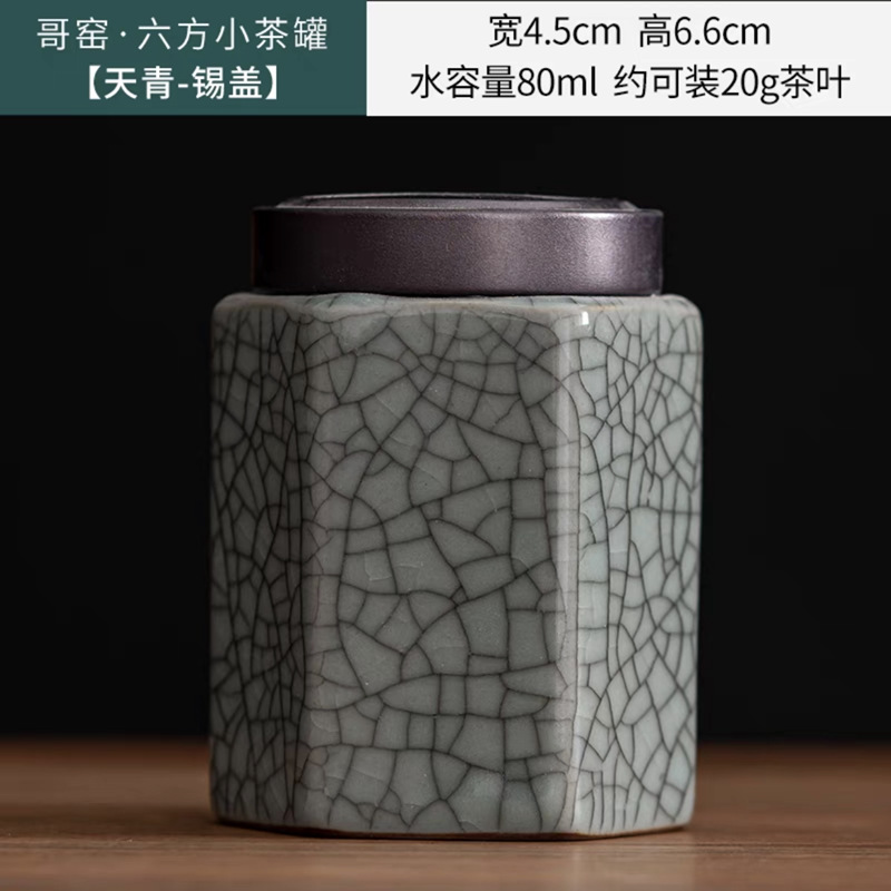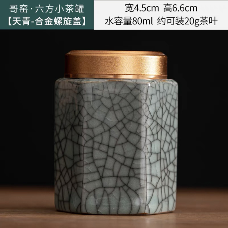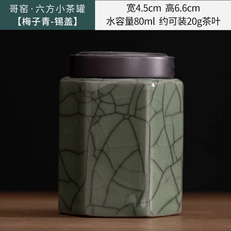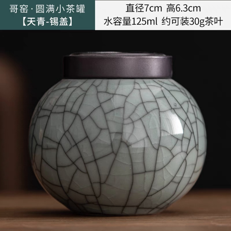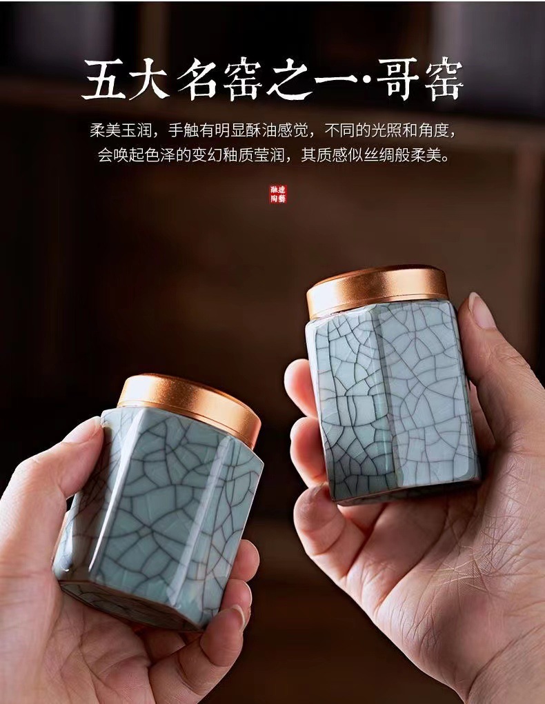 陶瓷茶叶罐迷你小茶仓便携式开片冰裂密封罐青瓷防潮小号储物罐子