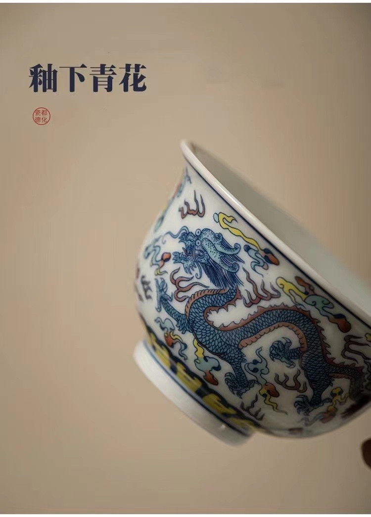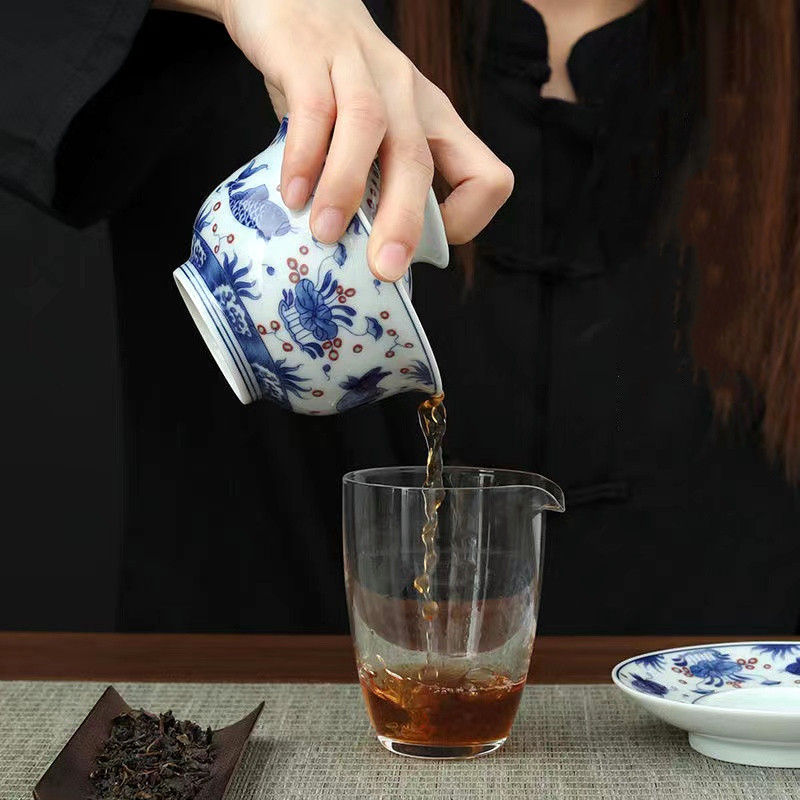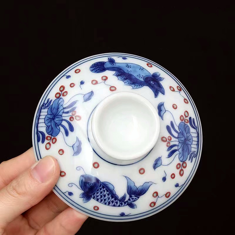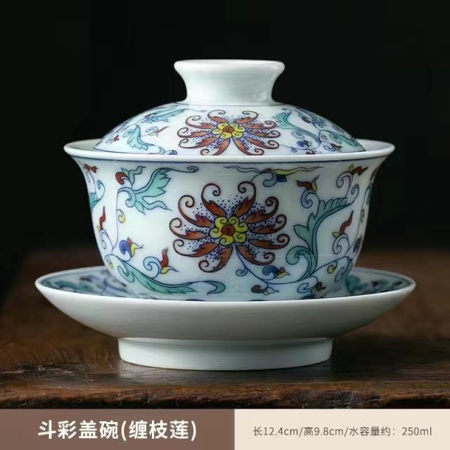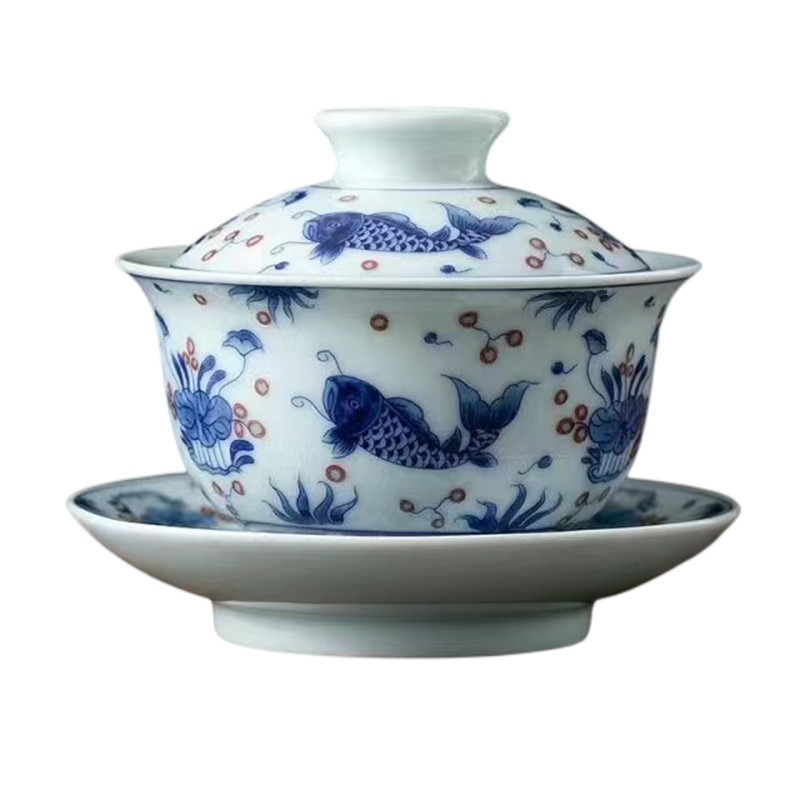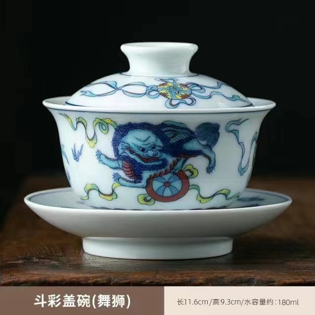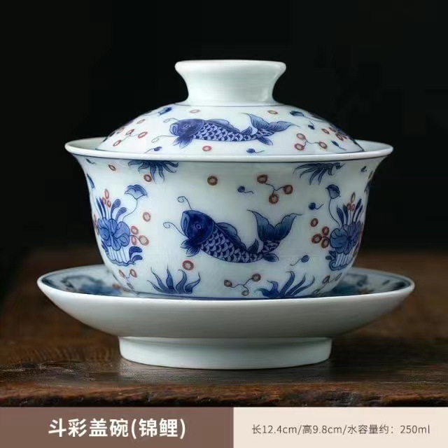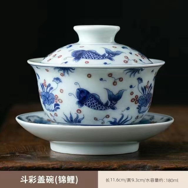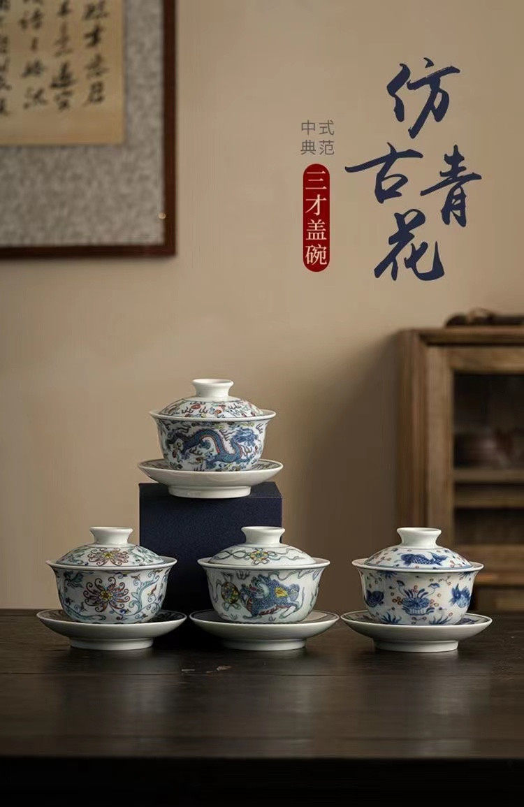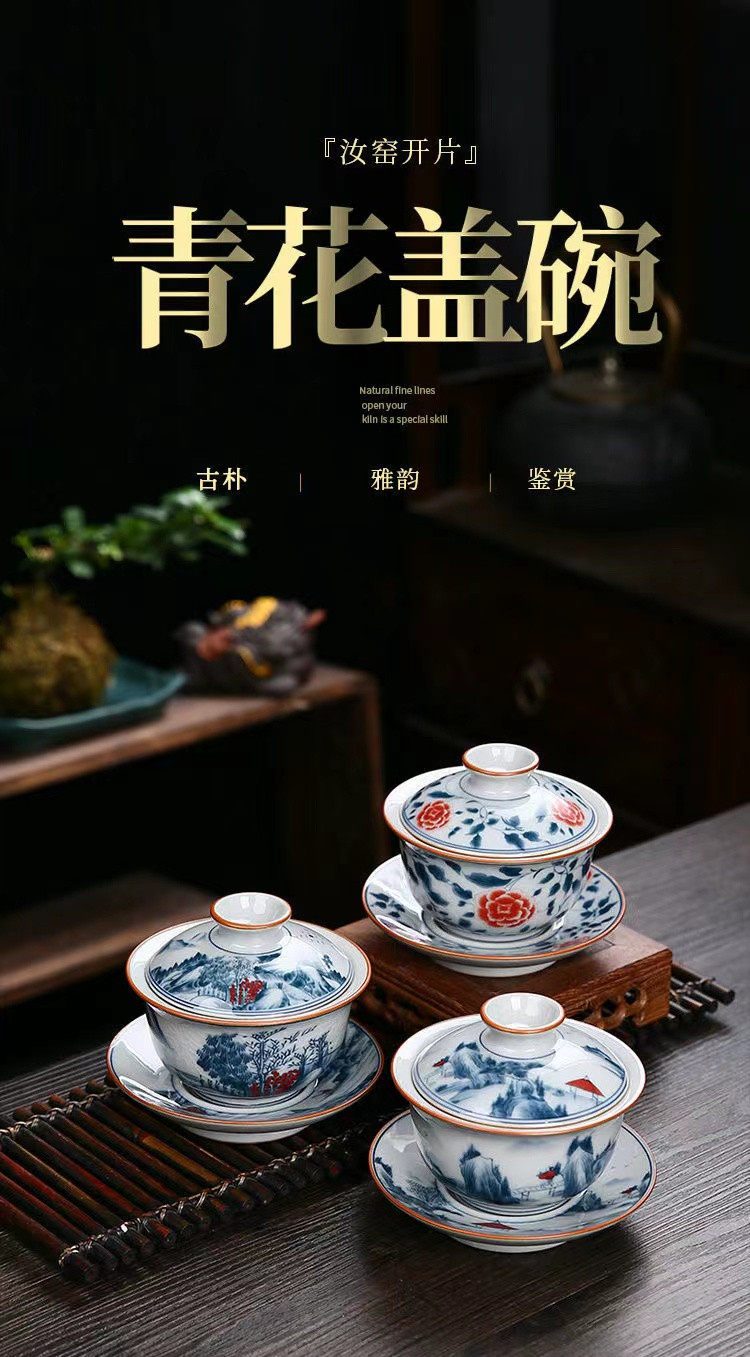 青花三才盖碗大号开片冰裂釉功夫茶具茶碗家用复古单个轻奢泡茶碗