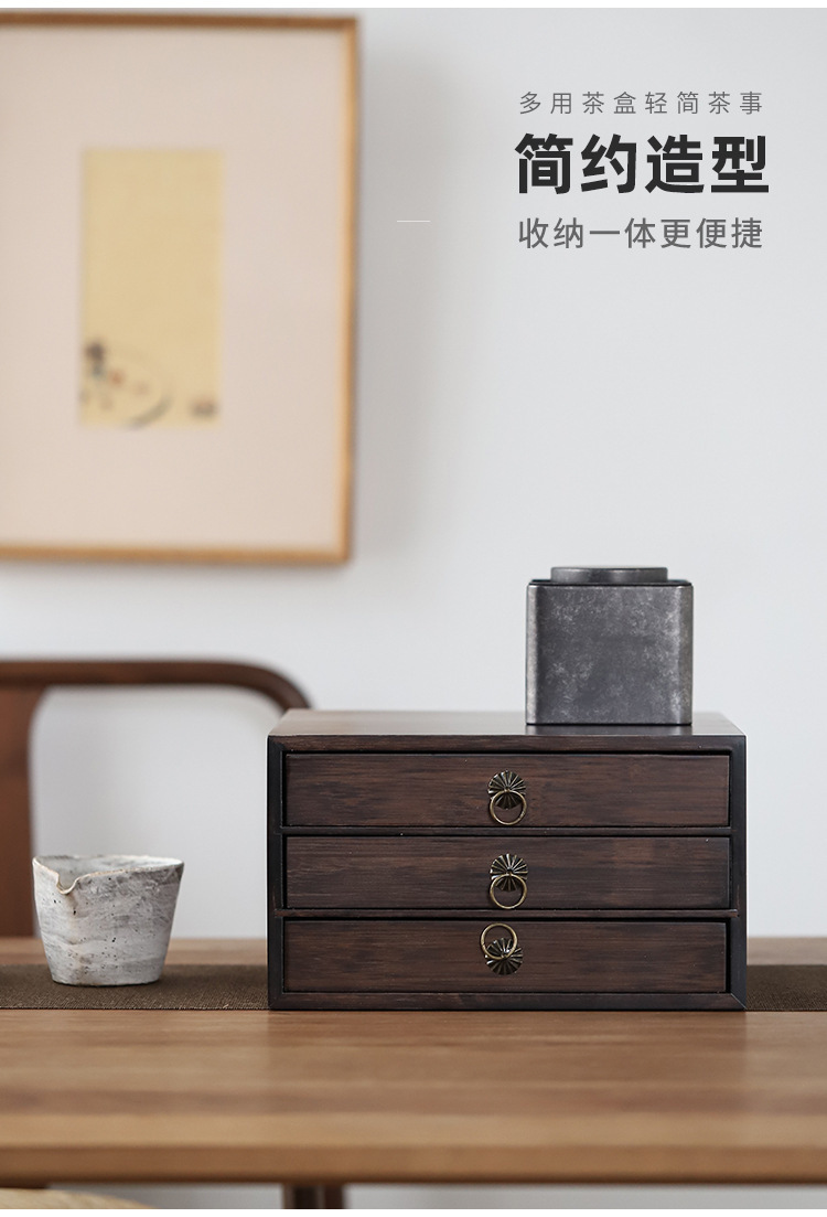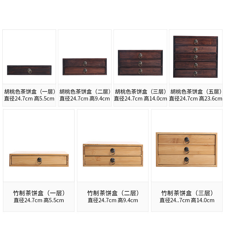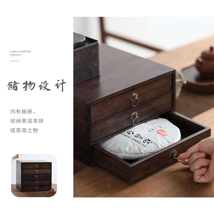 普洱茶收纳盒分茶盘家用白茶茶饼茶盒子多层实木竹制抽屉普洱架子