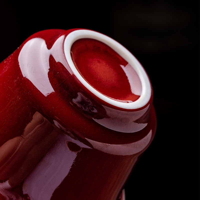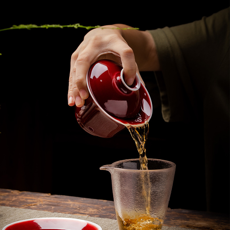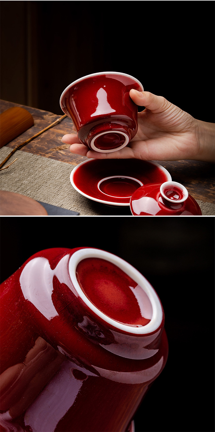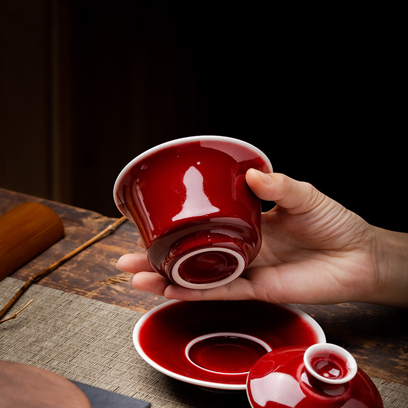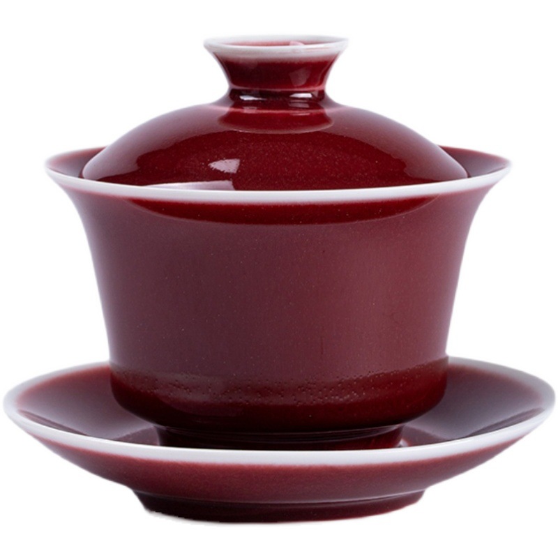 郎红釉三才盖碗茶杯陶瓷家用手工泡茶碗功夫茶具不烫手高档盖杯