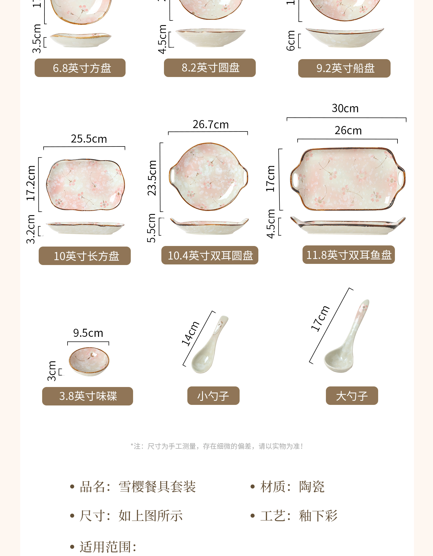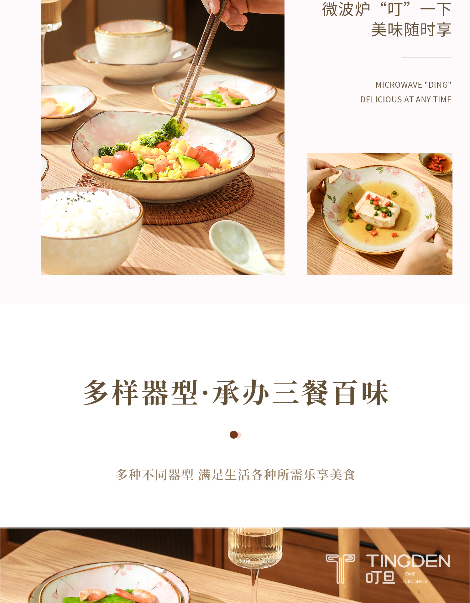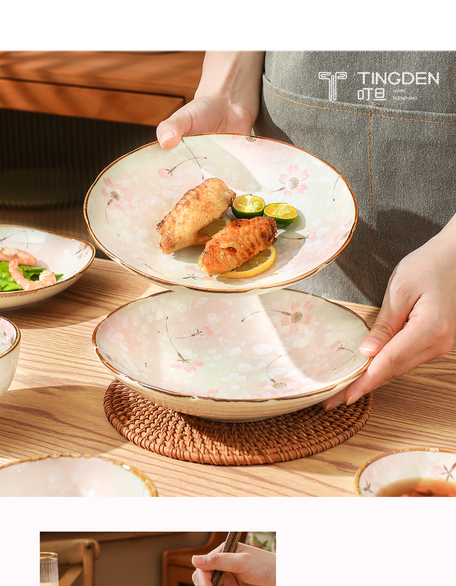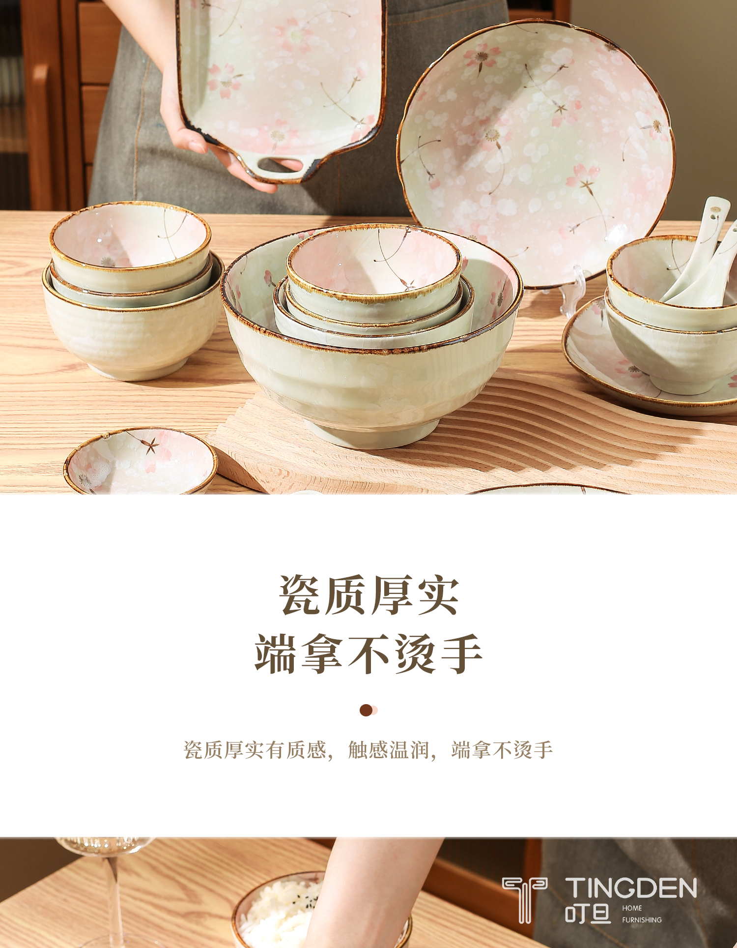 日式樱花碗餐具家用盘子饭碗陶瓷碗碟米饭碗吃饭碗