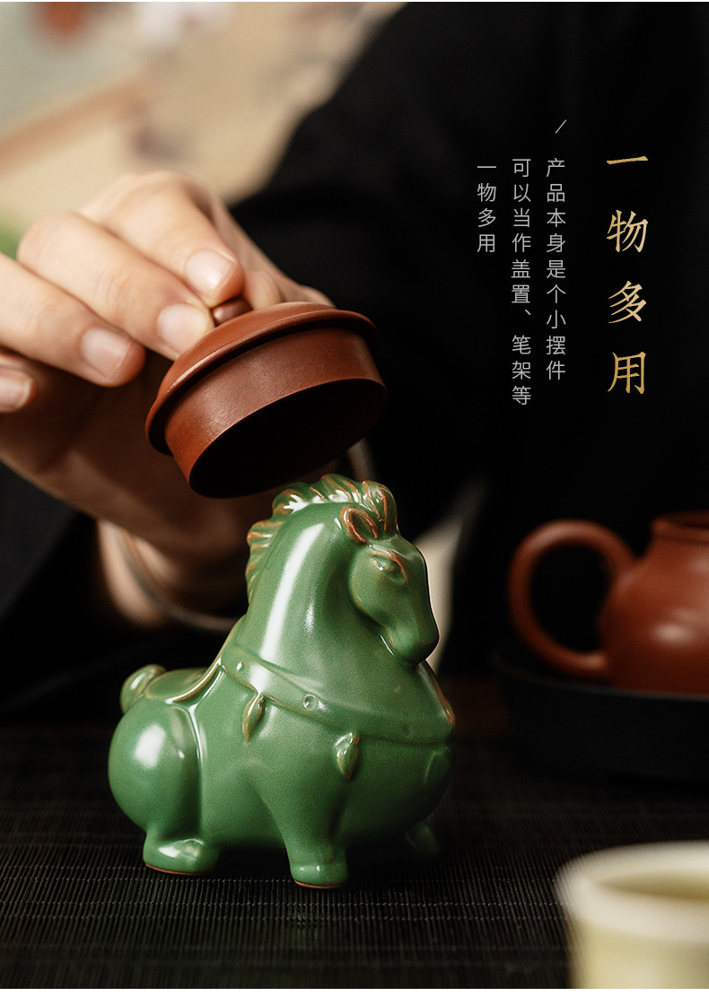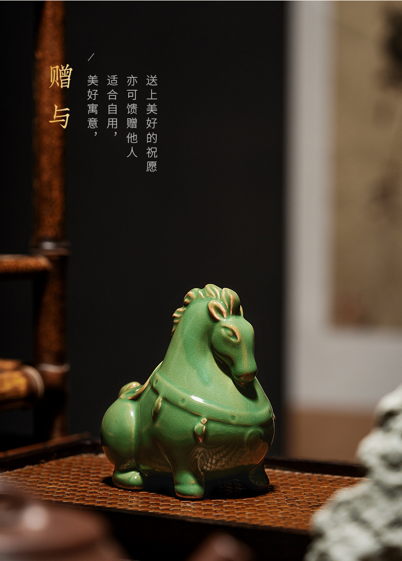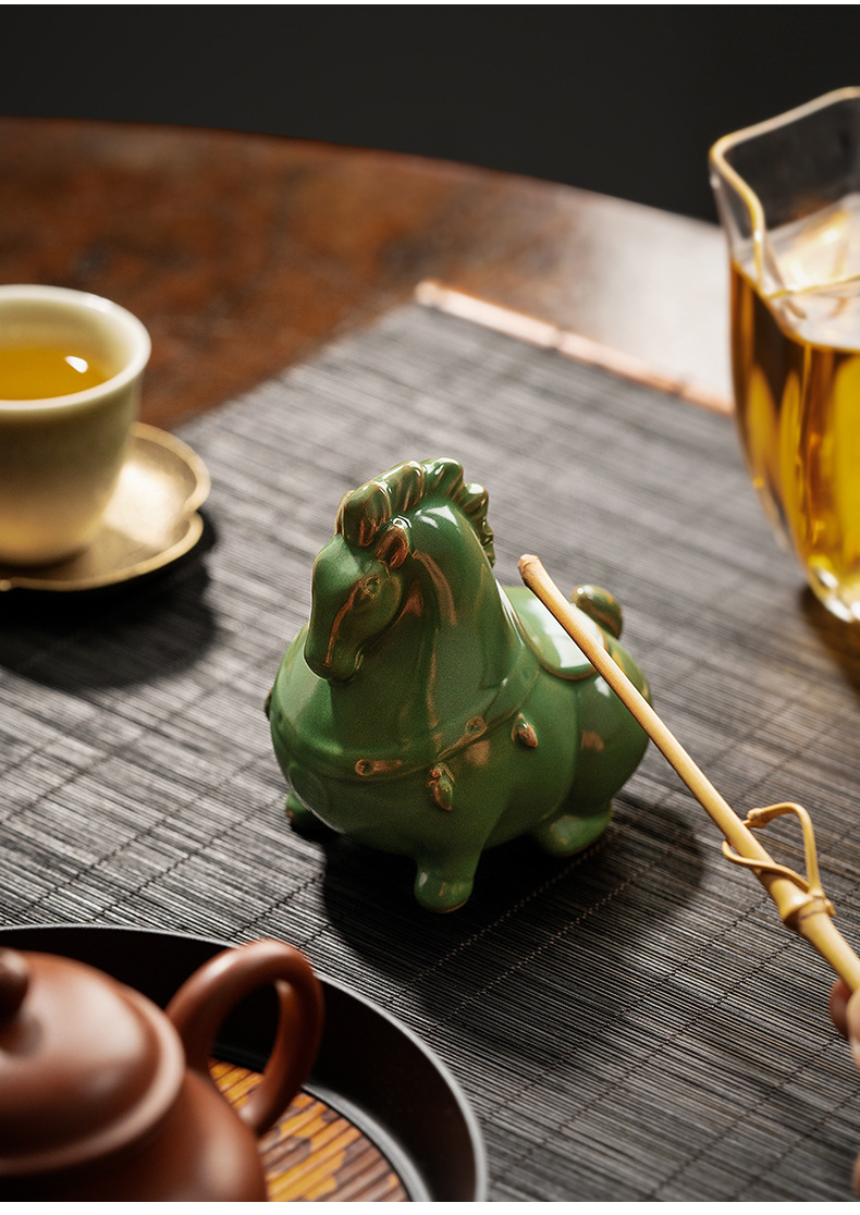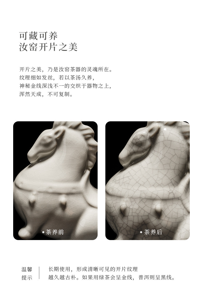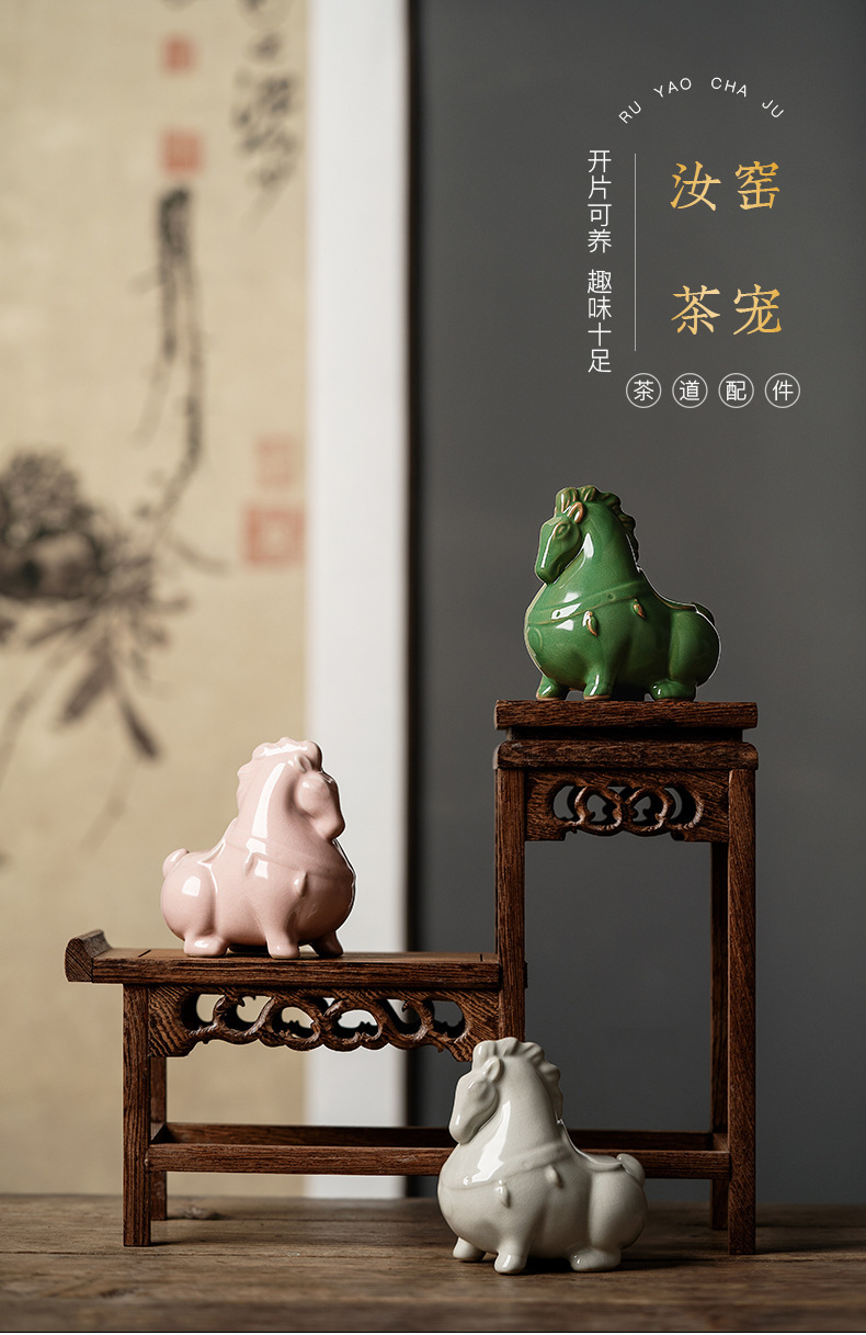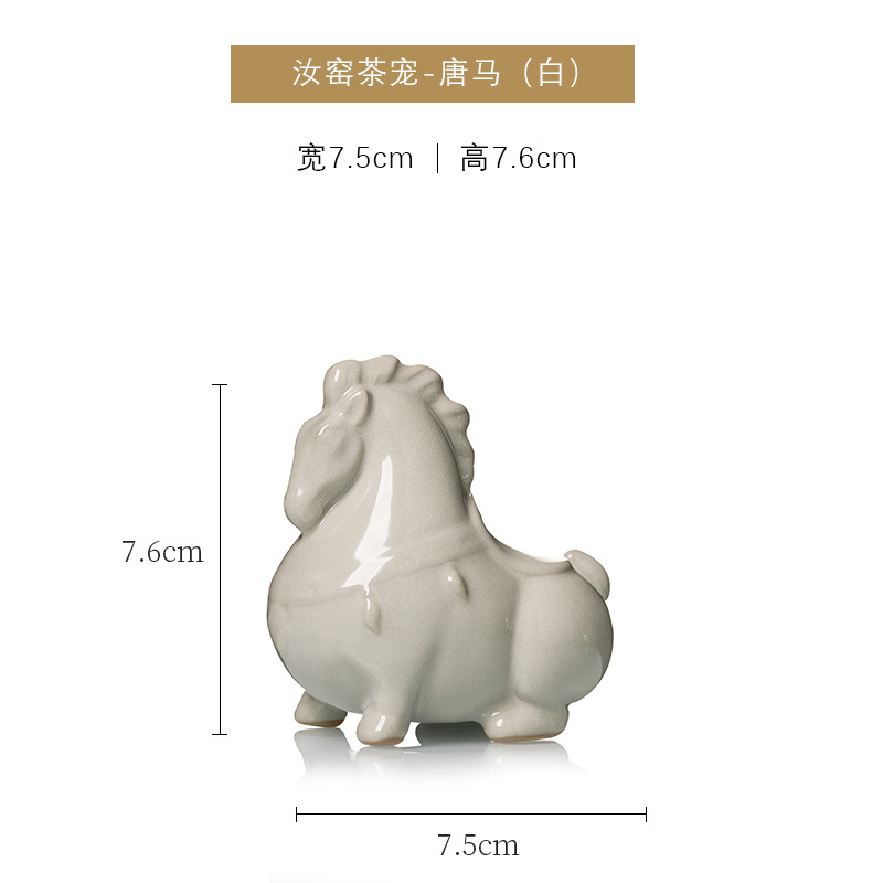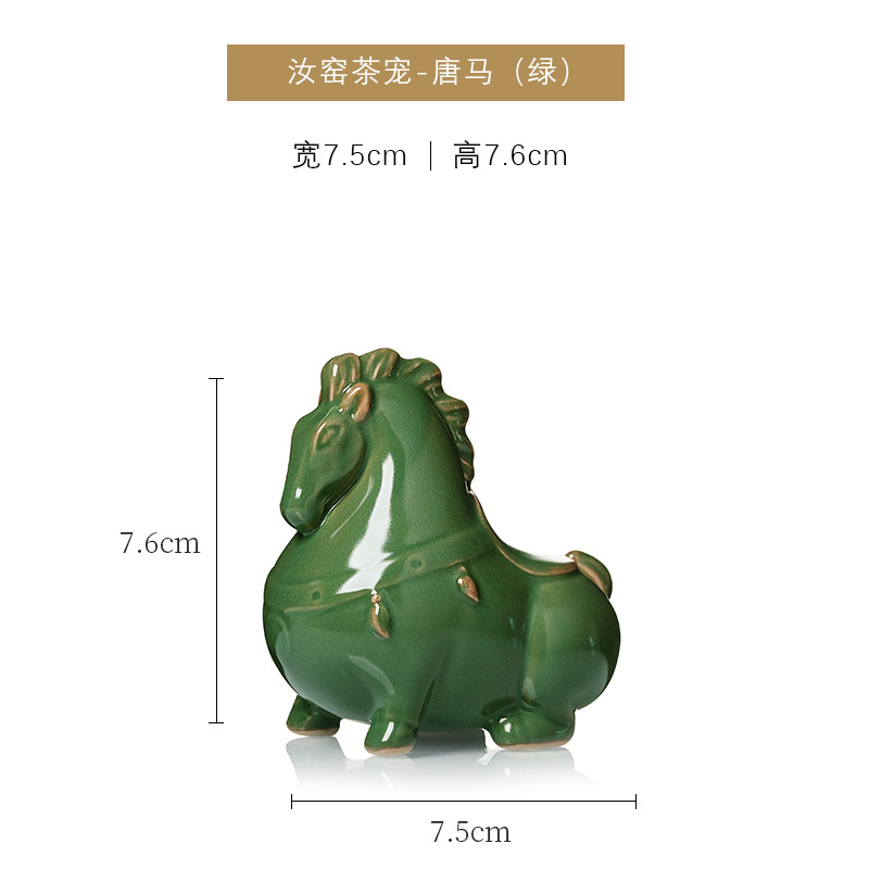 汝窑陶瓷茶宠茶具摆件开片茶玩生肖马创意精品可养茶桌小摆件唐马