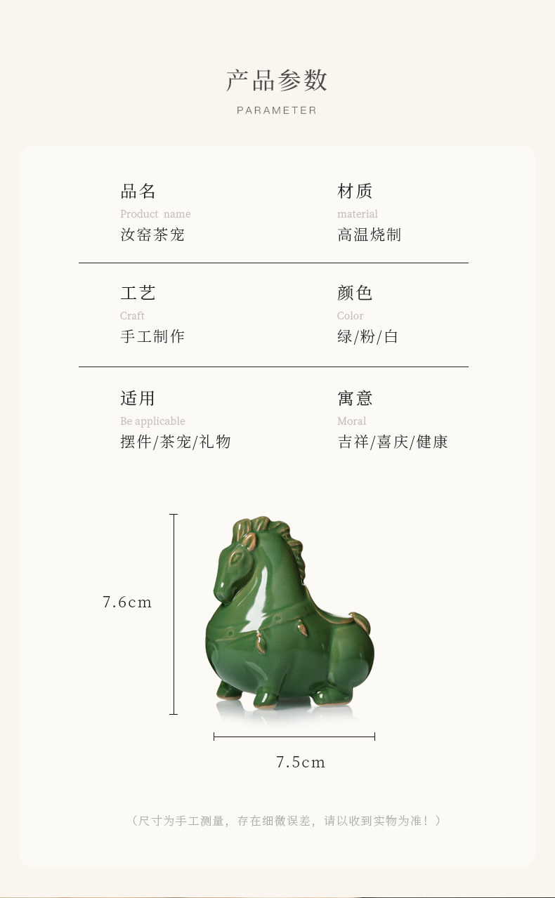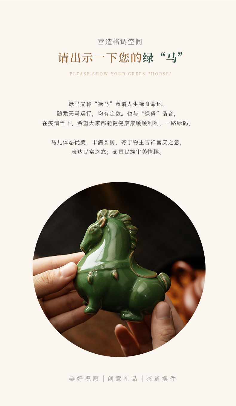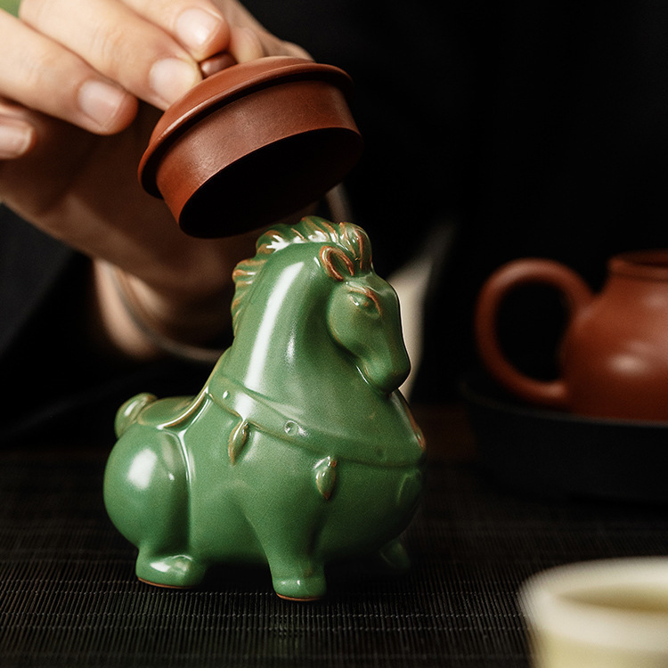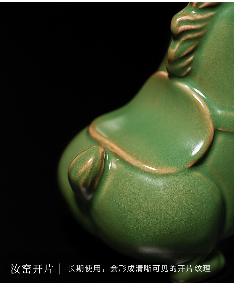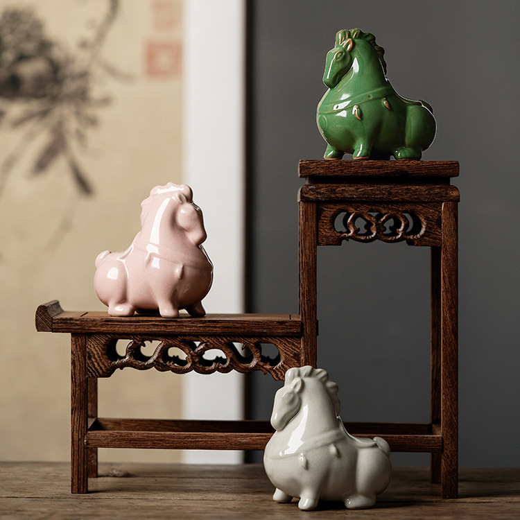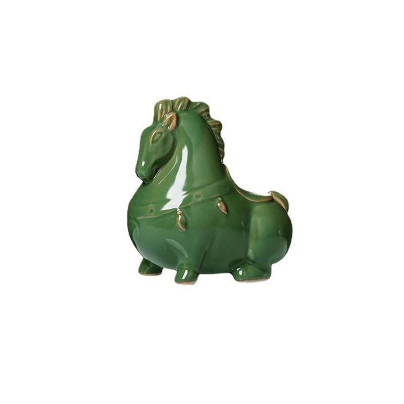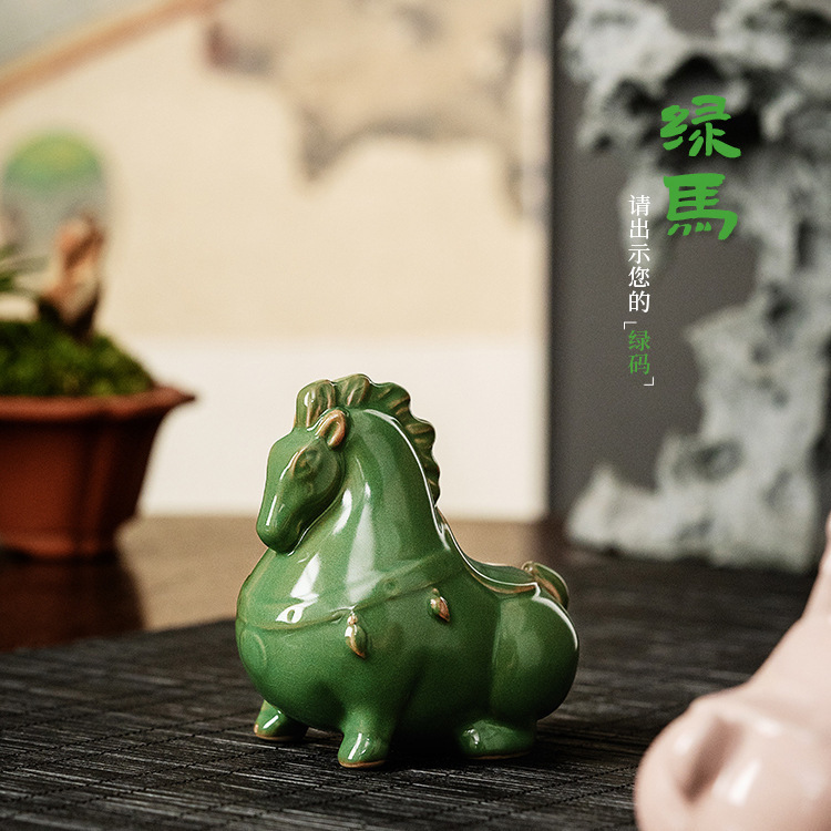 汝窑陶瓷茶宠茶具摆件开片茶玩生肖马创意精品可养茶桌小摆件唐马