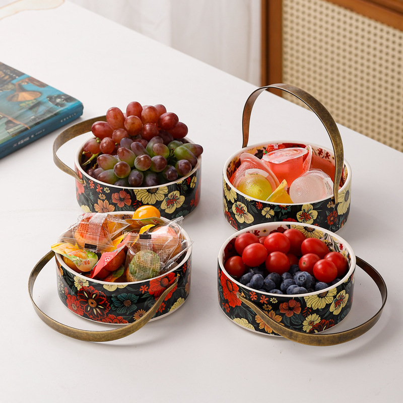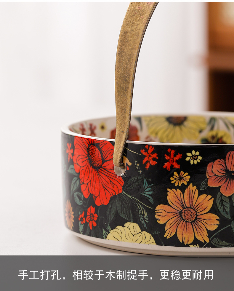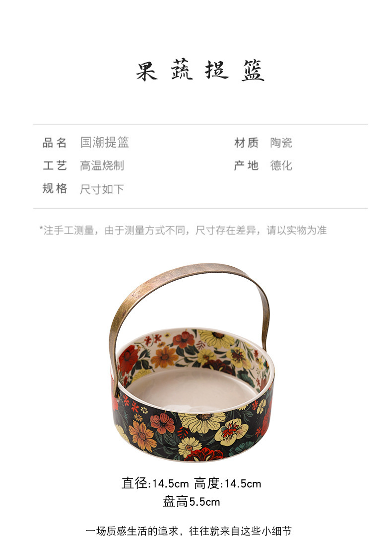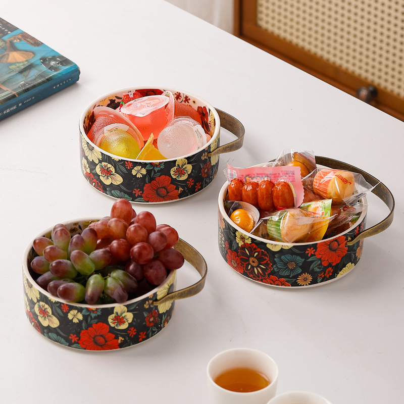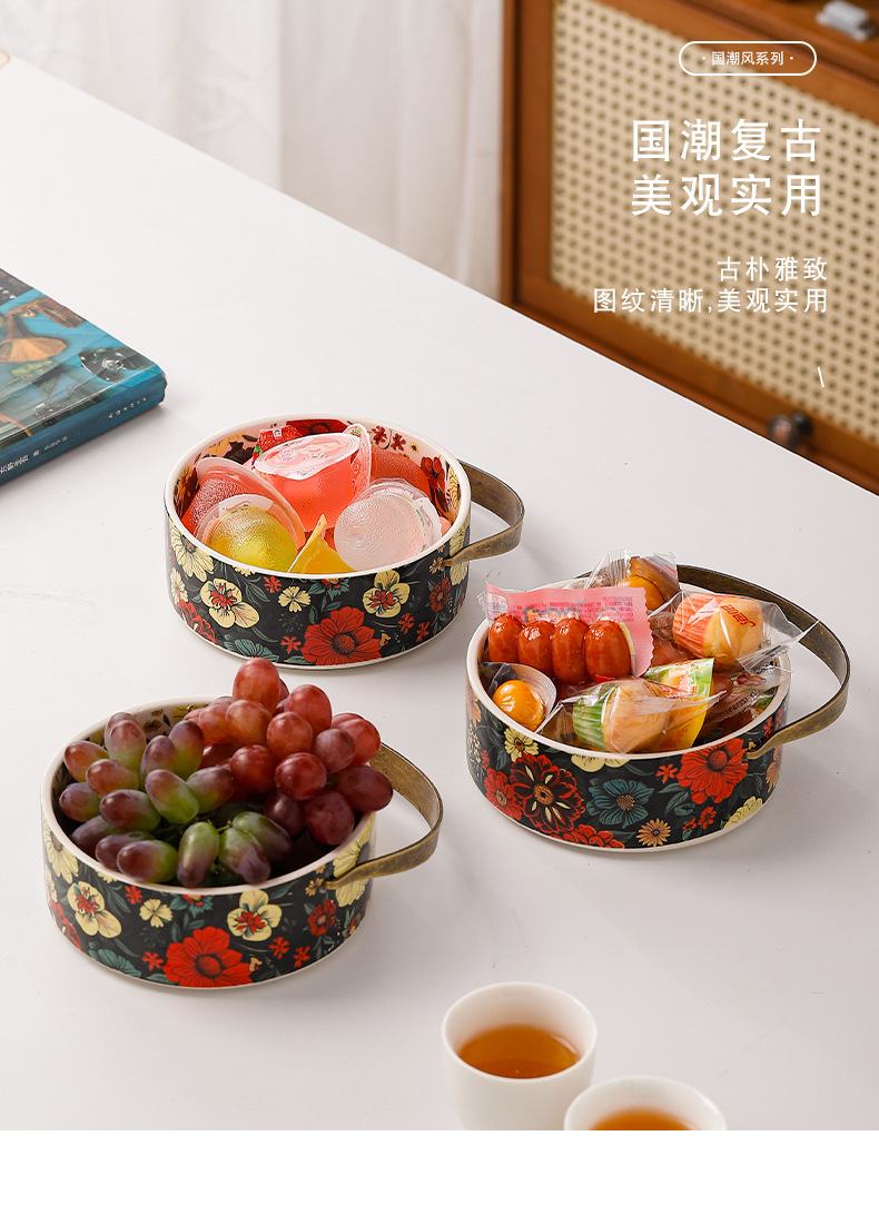 陶瓷复古手提果盘家用零食糖果盒精致高端轻奢坚果水果水果篮点心