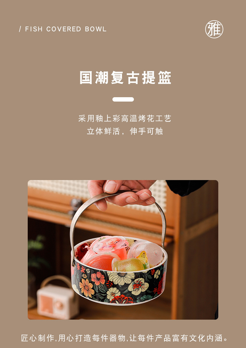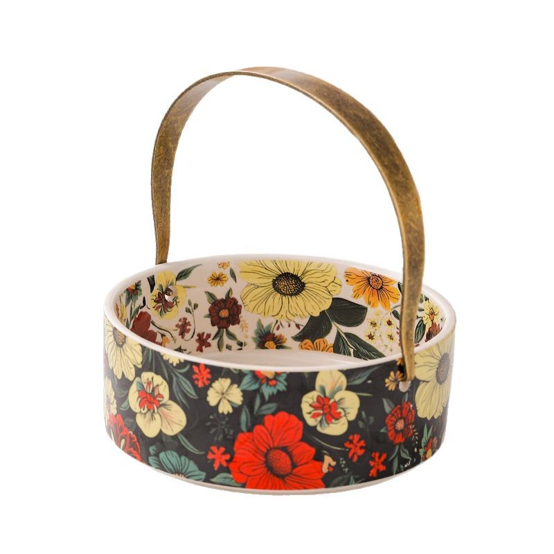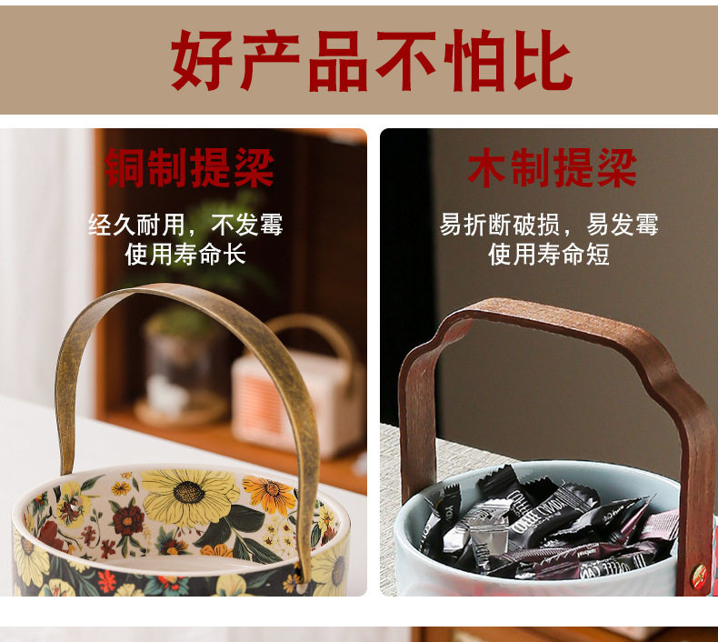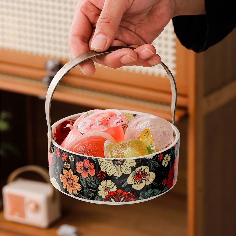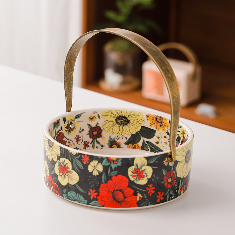 陶瓷复古手提果盘家用零食糖果盒精致高端轻奢坚果水果水果篮点心