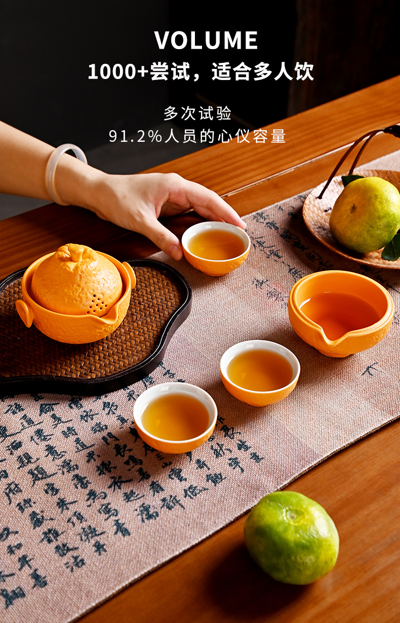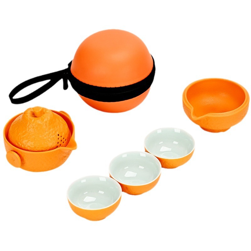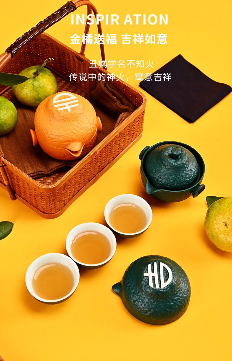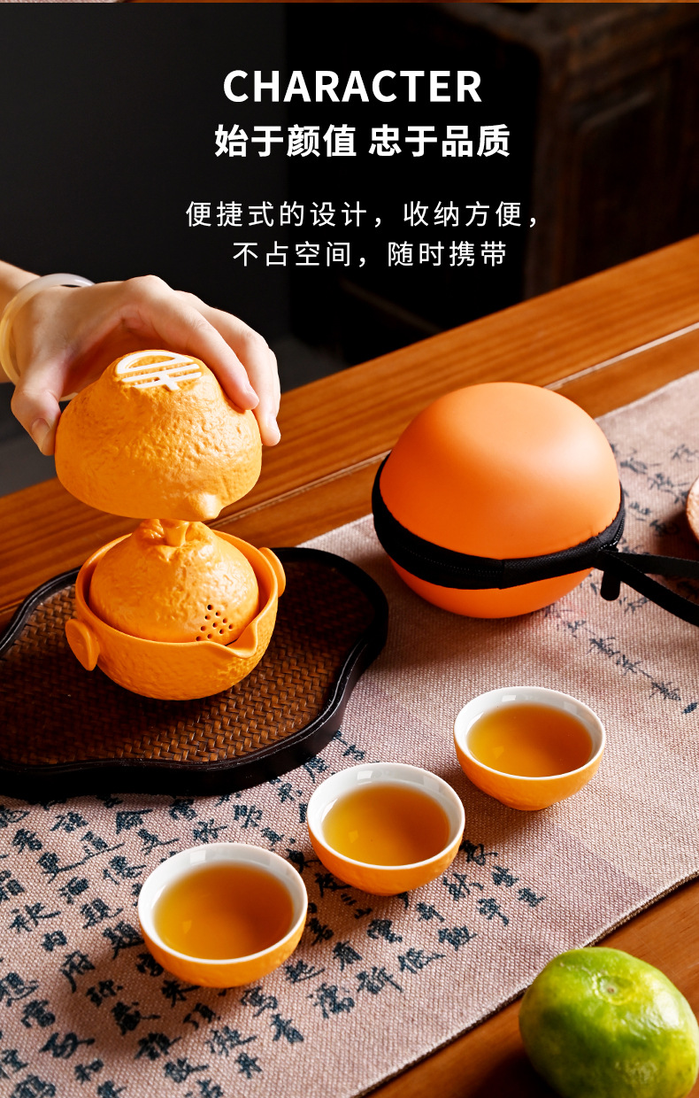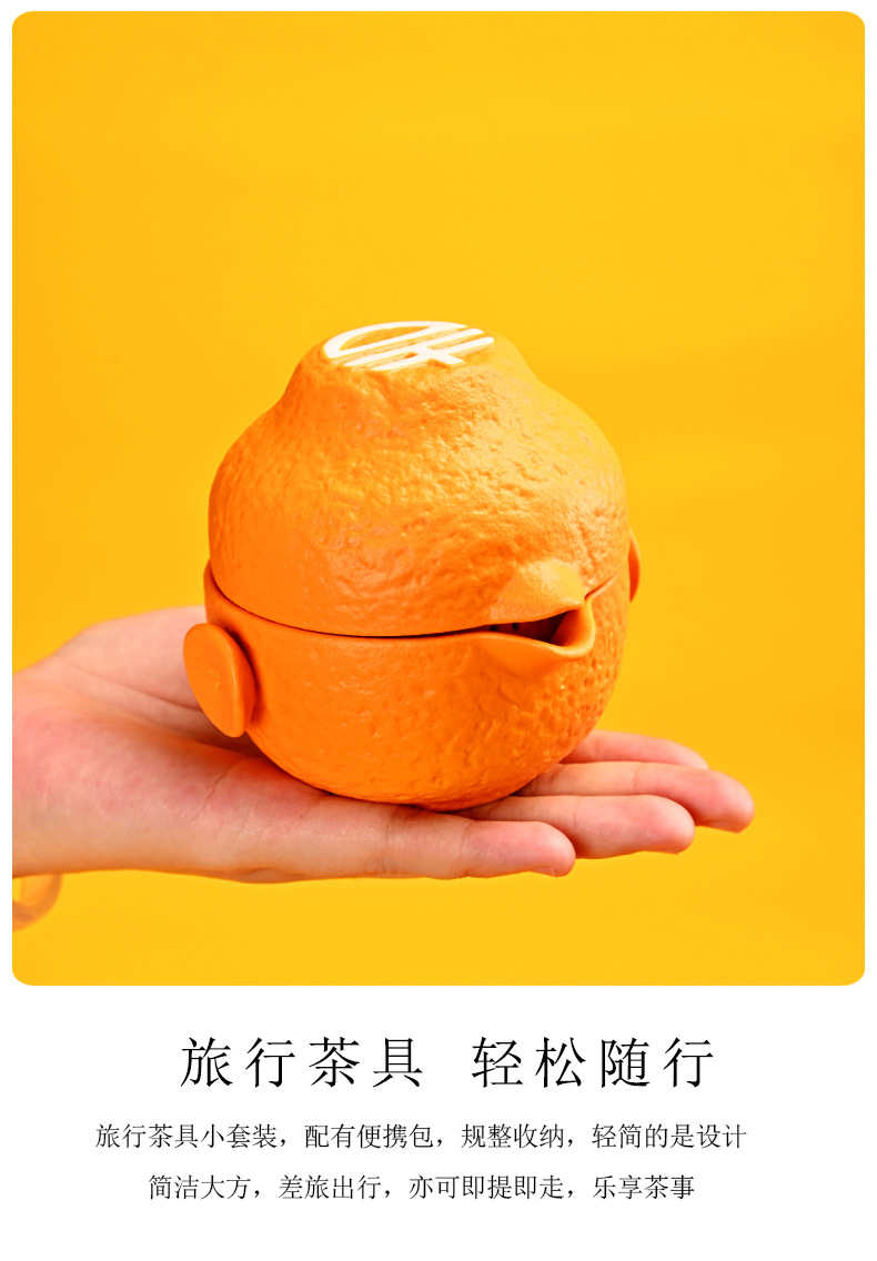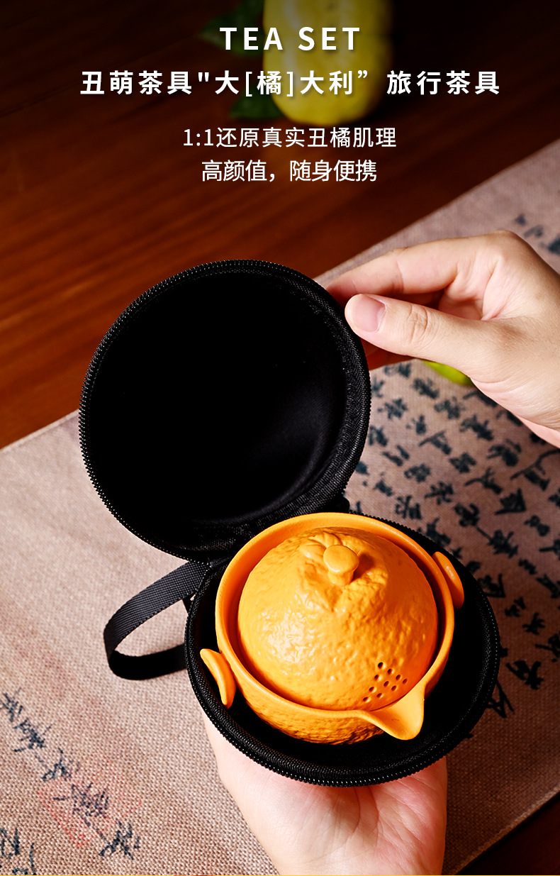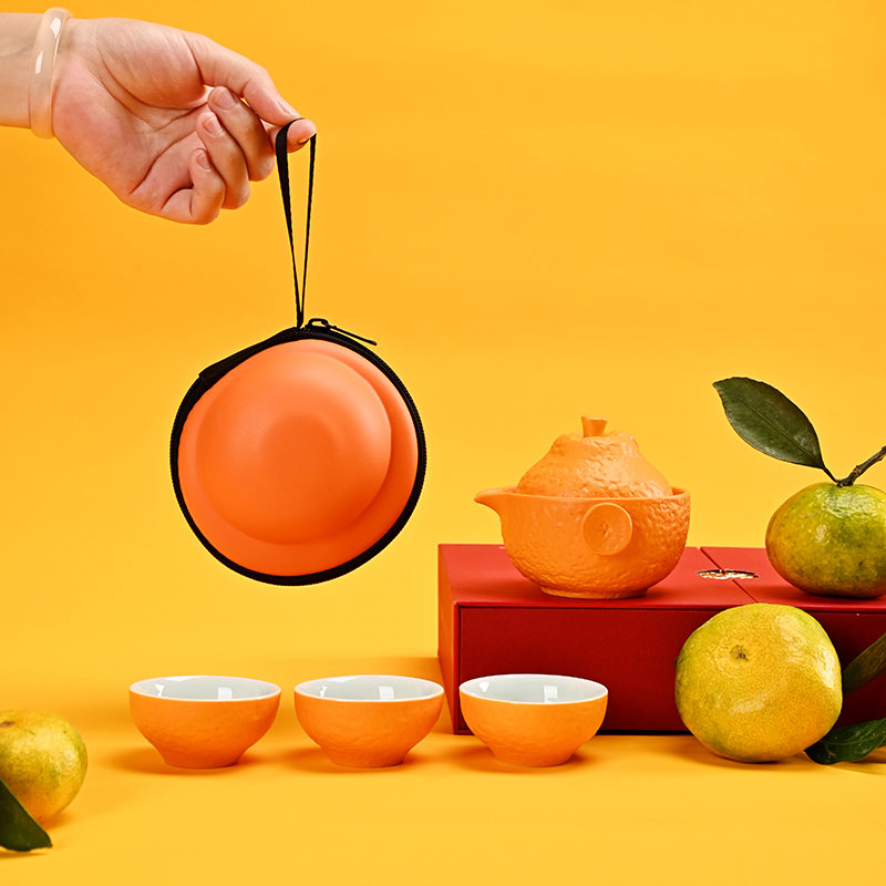 创意旅行功夫茶具小套组丑橘陶瓷一壶四杯大吉大利便携户外泡茶壶