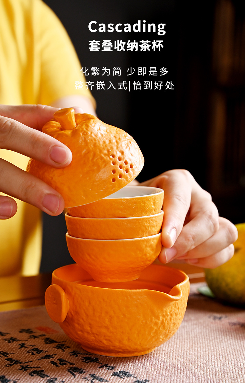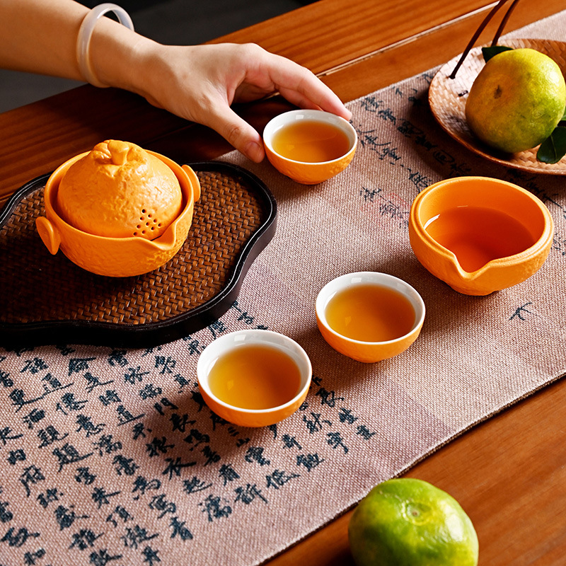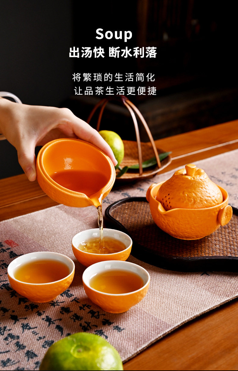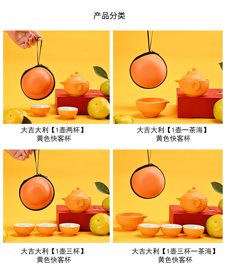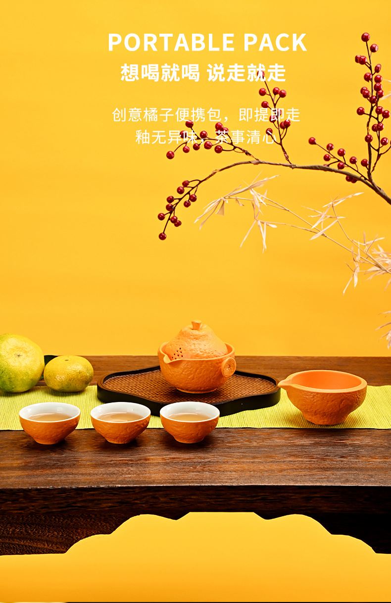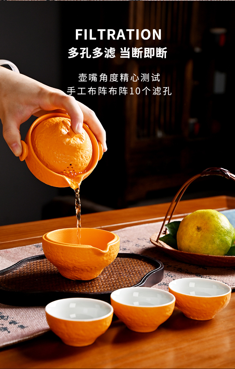 创意旅行功夫茶具小套组丑橘陶瓷一壶四杯大吉大利便携户外泡茶壶