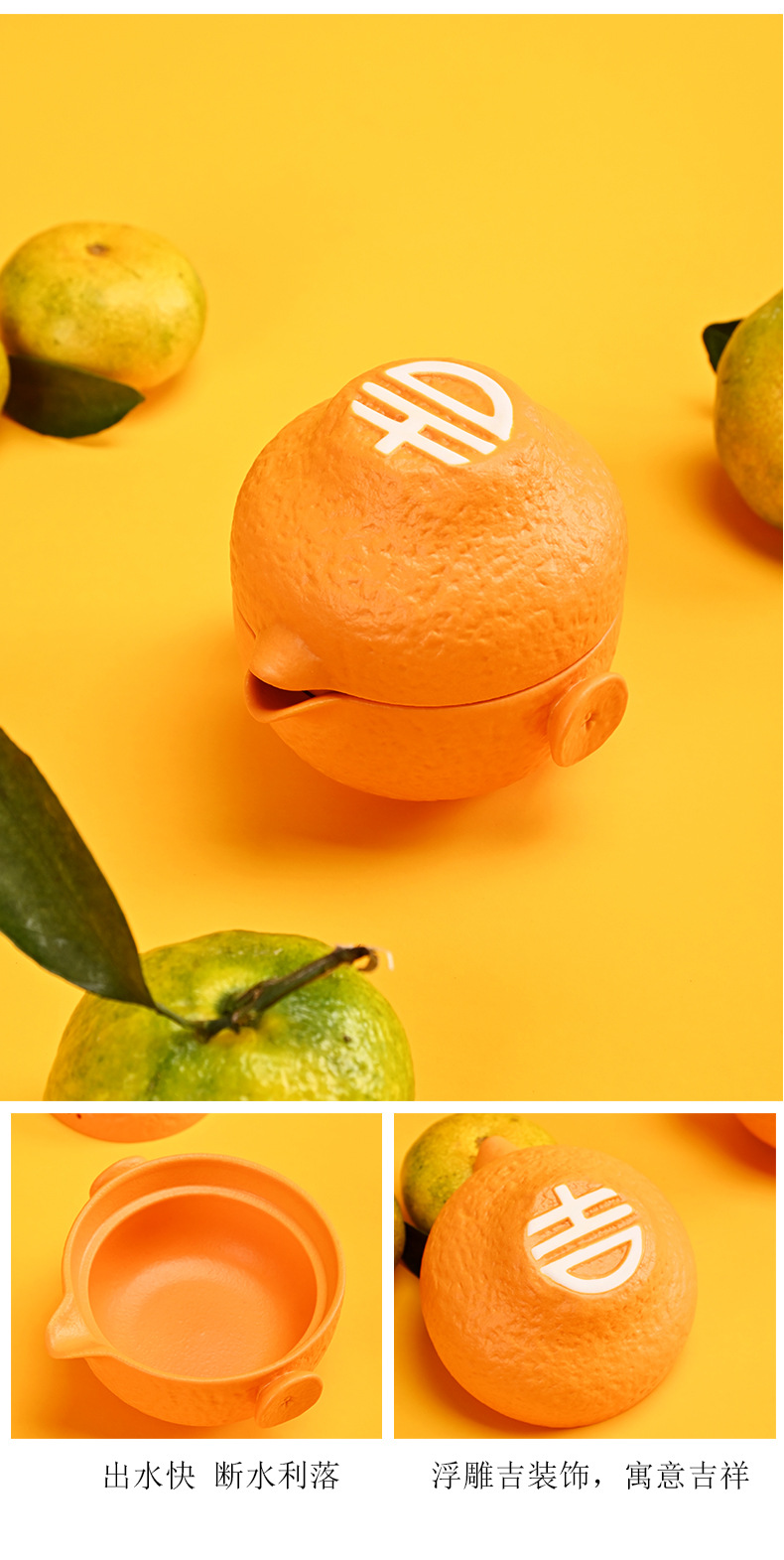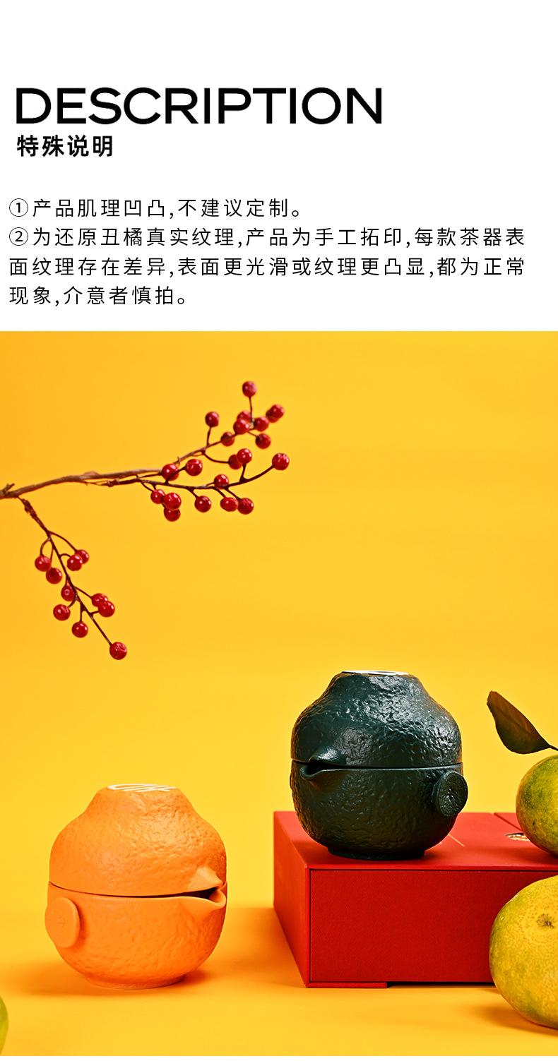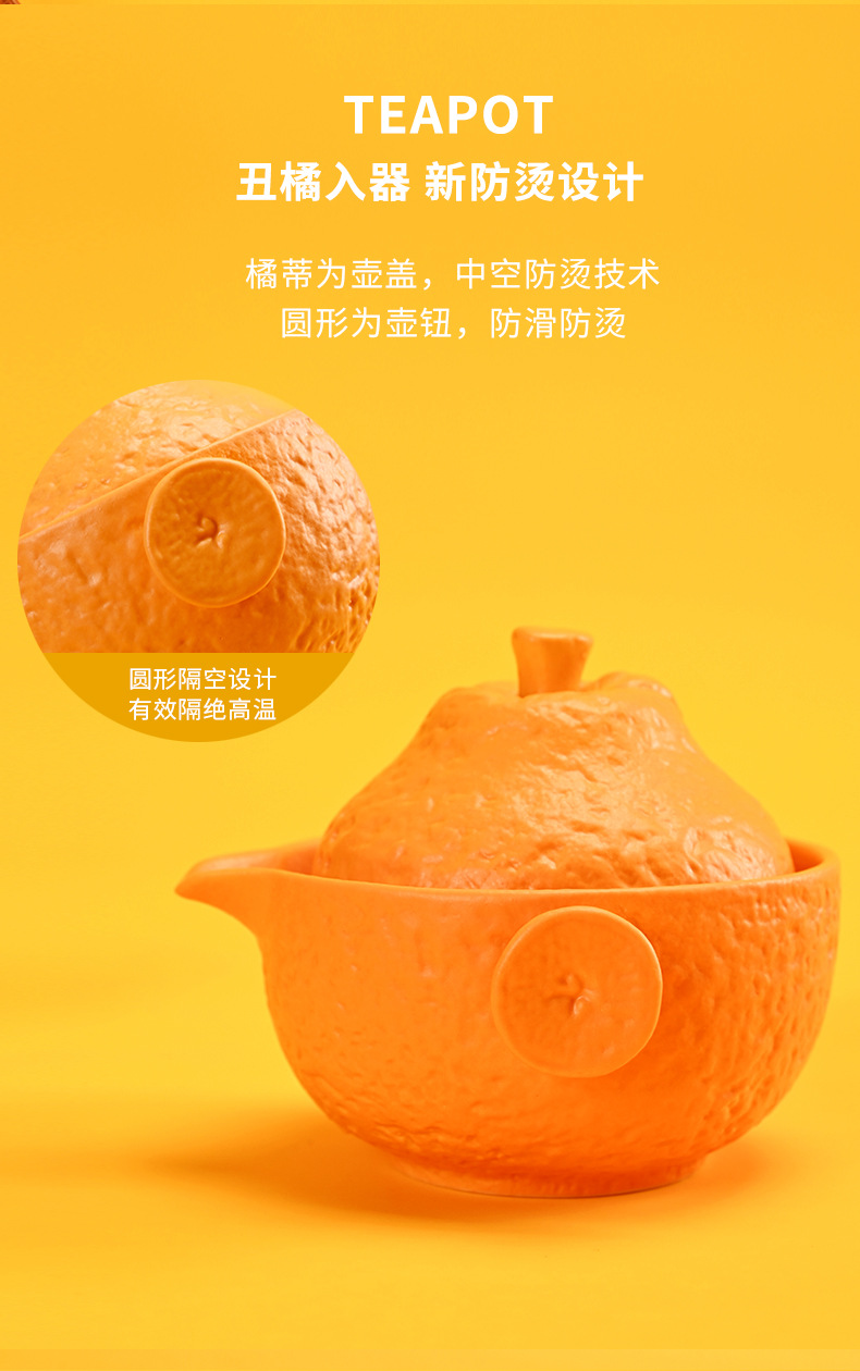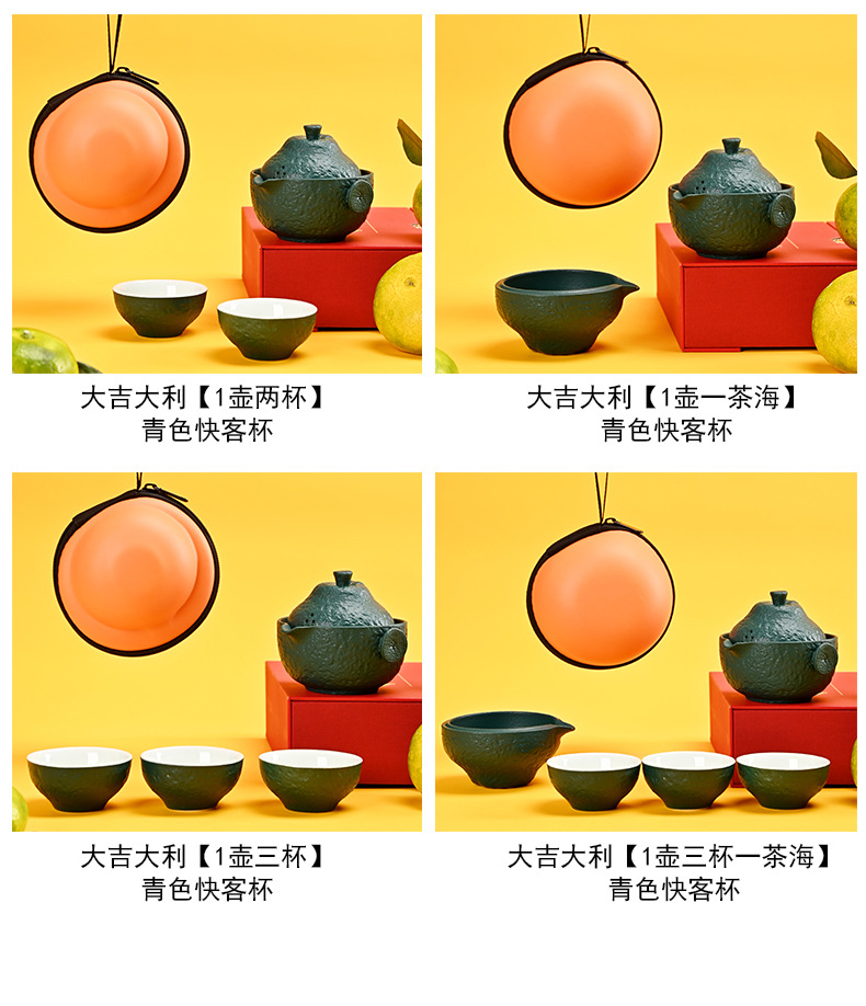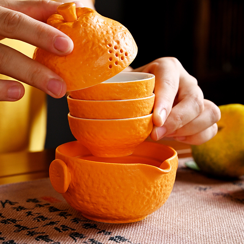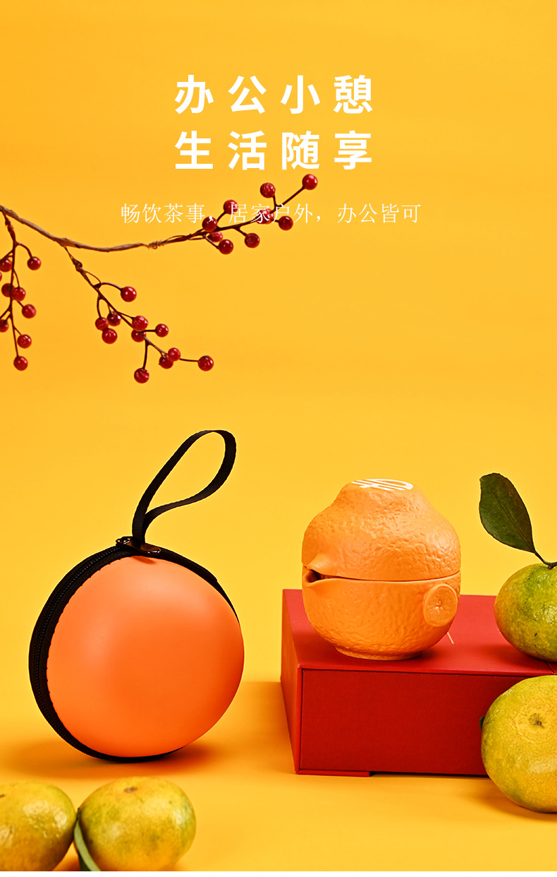 创意旅行功夫茶具小套组丑橘陶瓷一壶四杯大吉大利便携户外泡茶壶