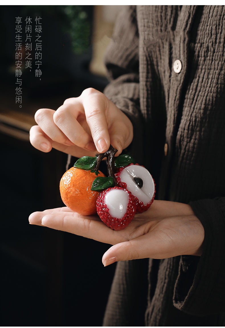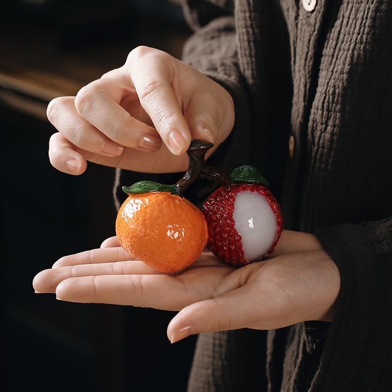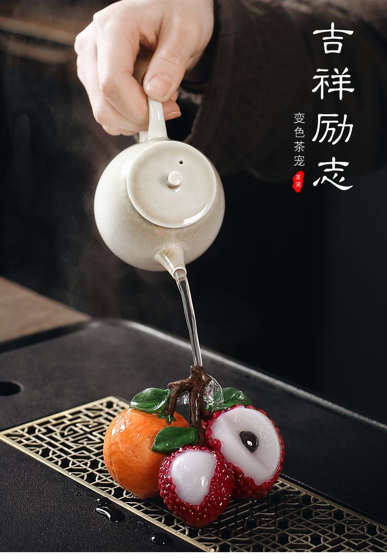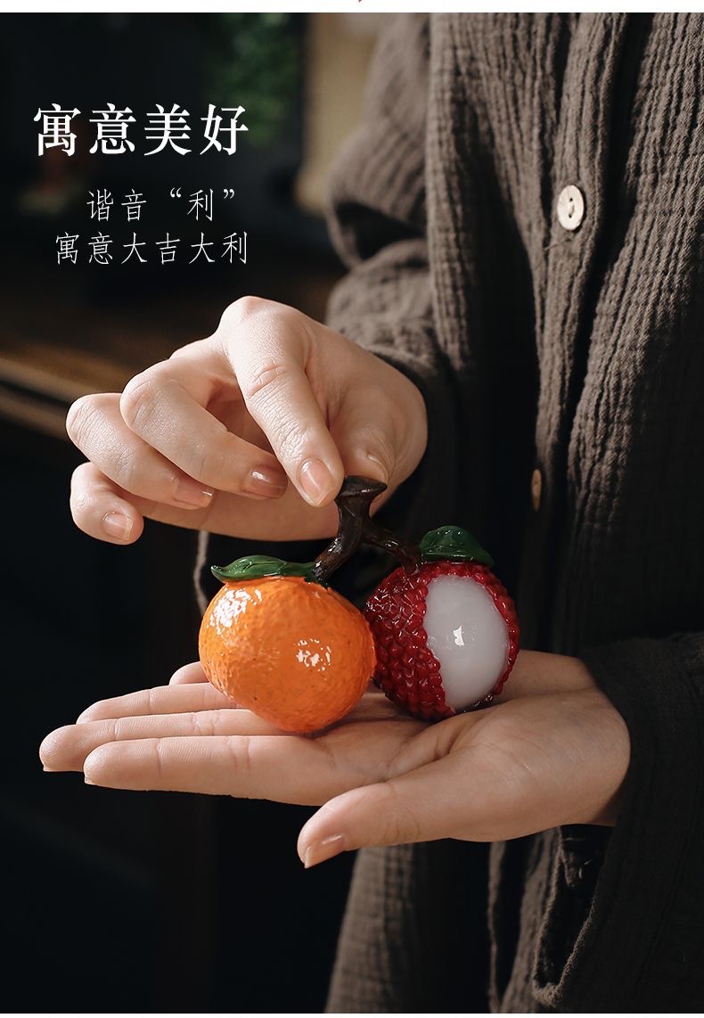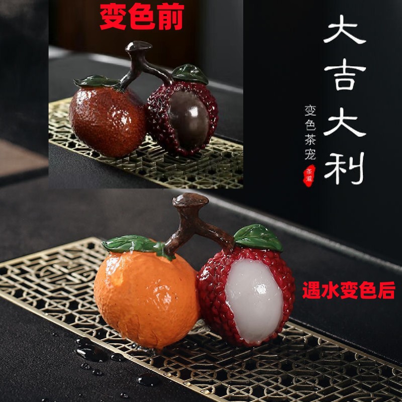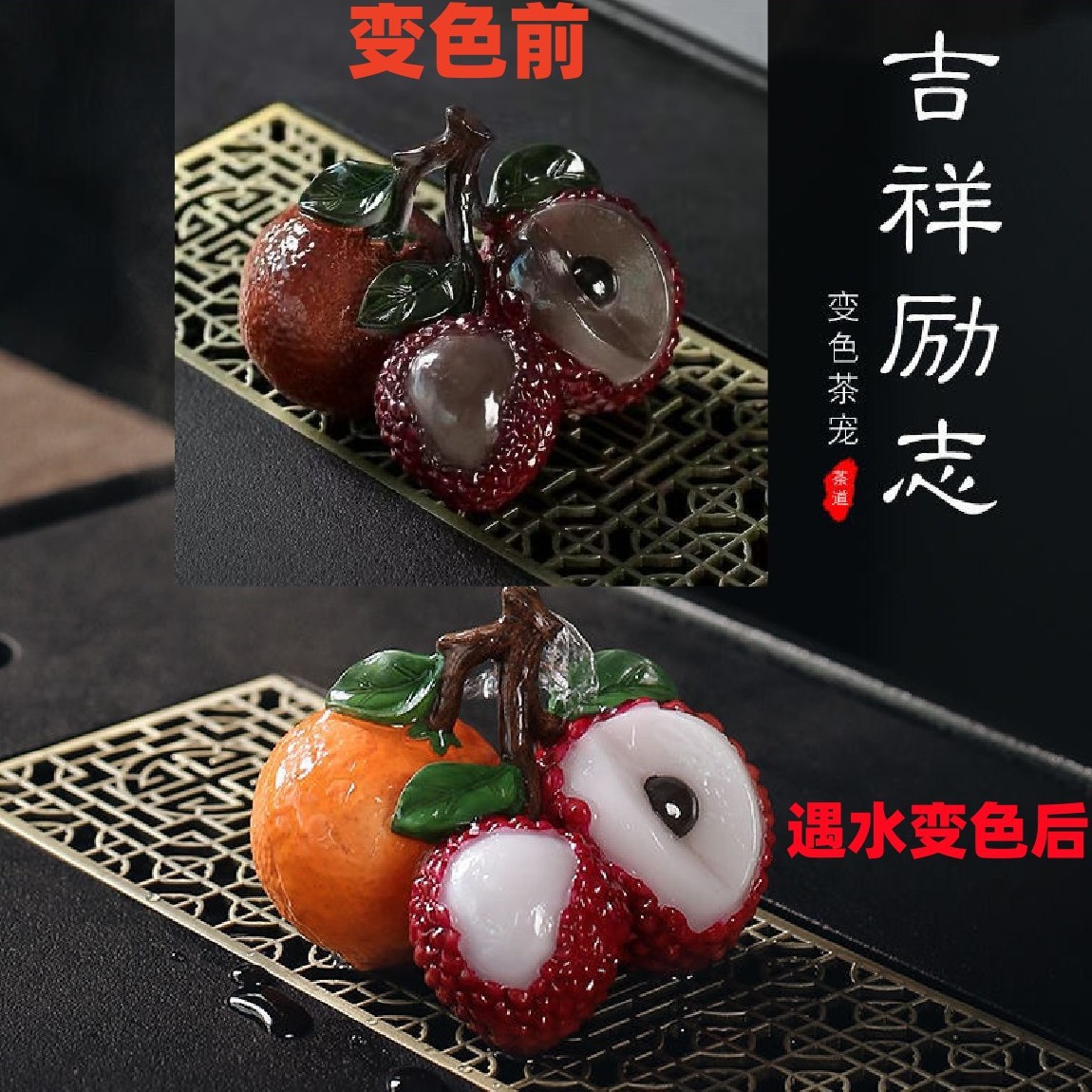 茶宠茶玩摆件变色荔枝桔子茶宠大吉大利茶盘茶桌装饰茶台茶道零配