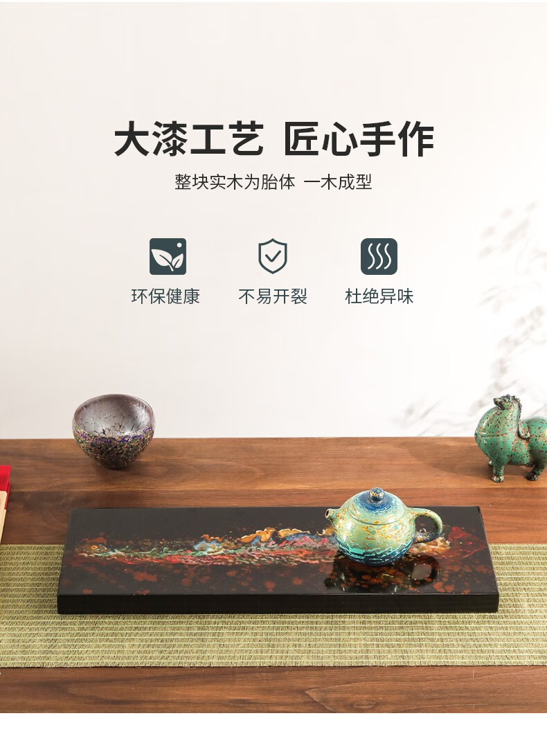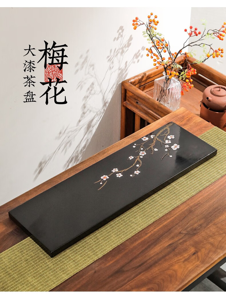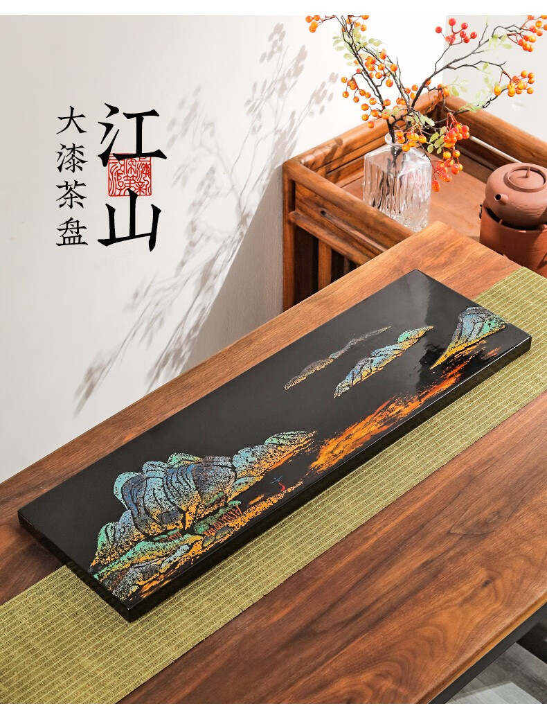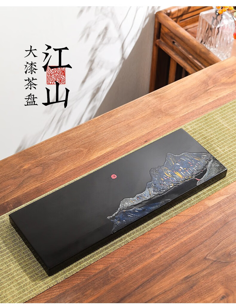 大漆茶盘干泡台轻奢茶具新中式实木茶盘家用客厅功夫高档会所茶台