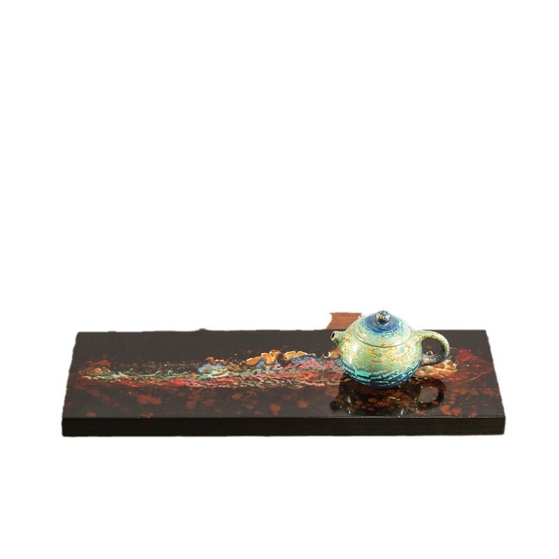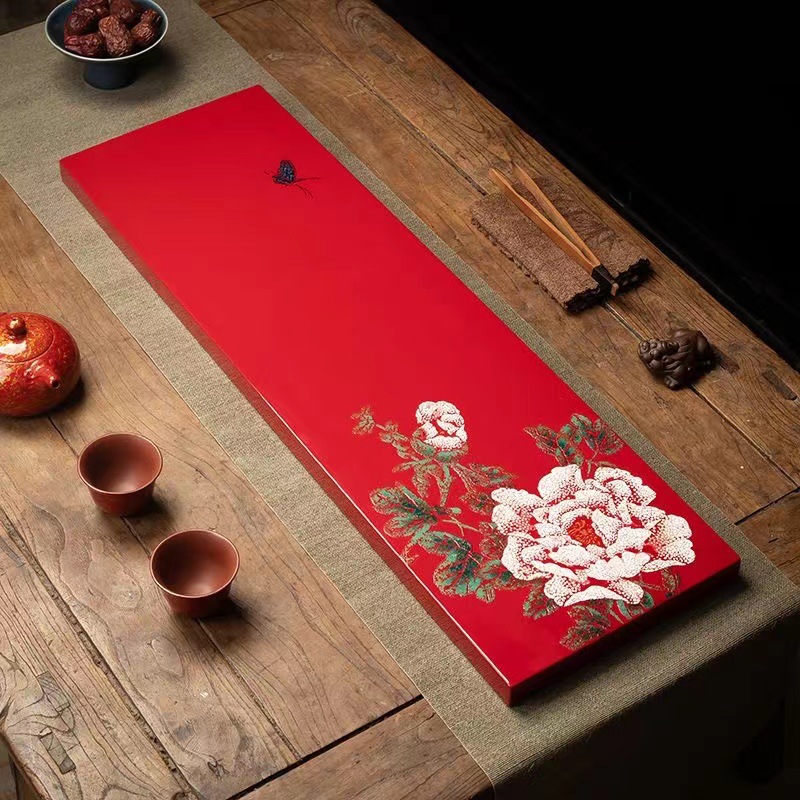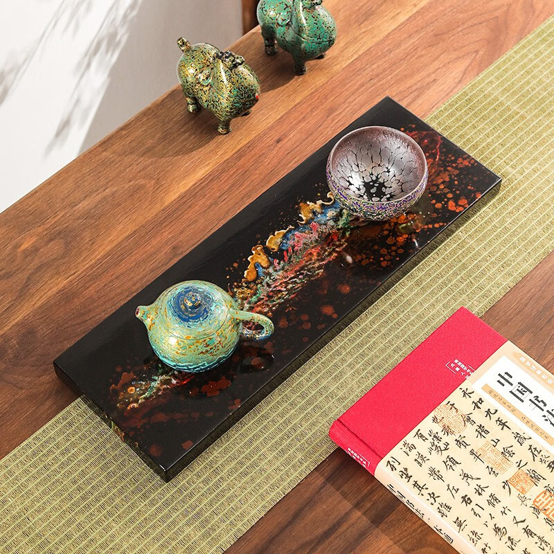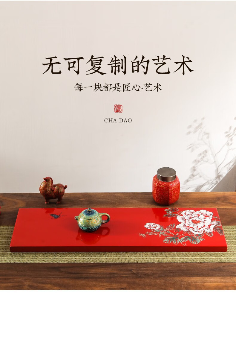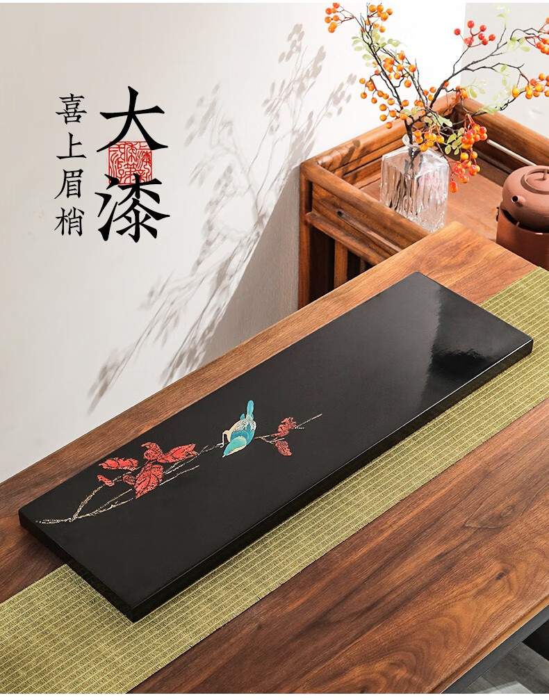 大漆茶盘干泡台轻奢茶具新中式实木茶盘家用客厅功夫高档会所茶台