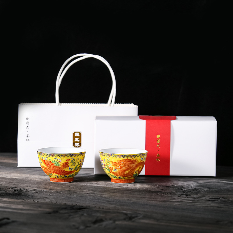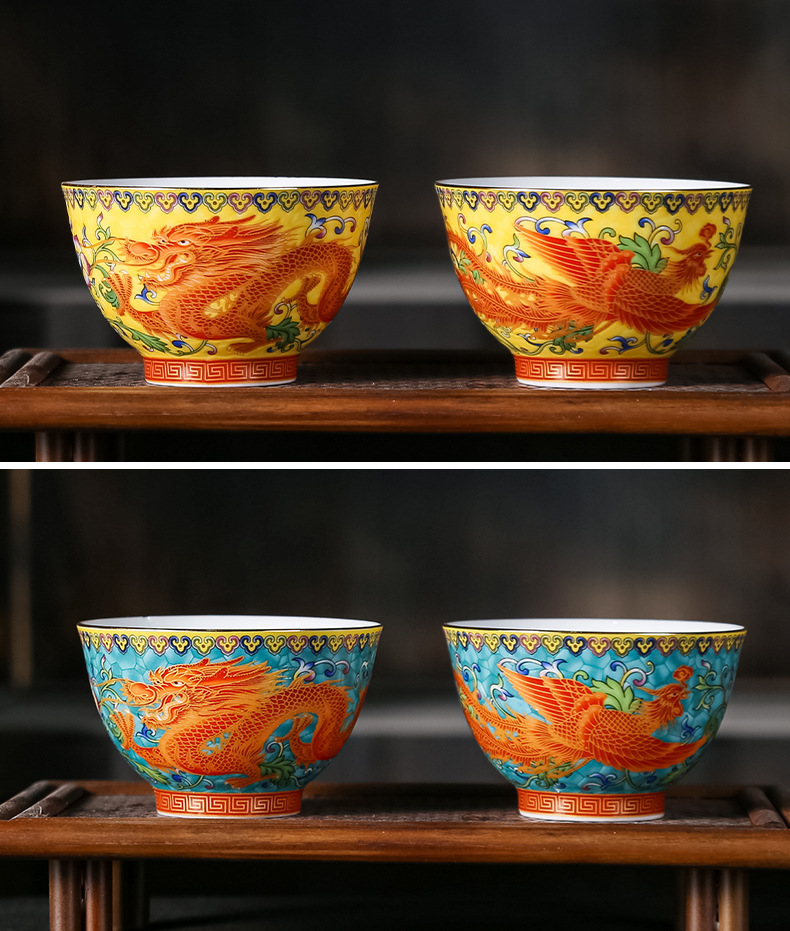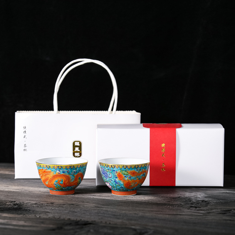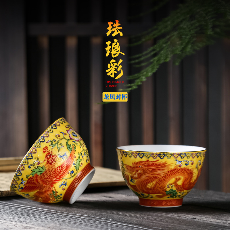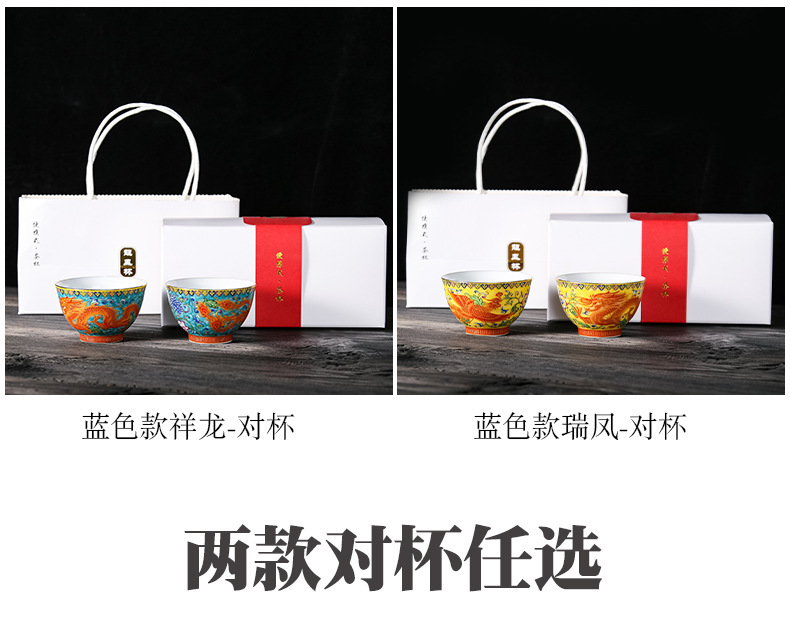 精品茶具 珐琅彩龙凤对杯 单杯主人杯茶碗茶杯陶瓷礼品可LOGO