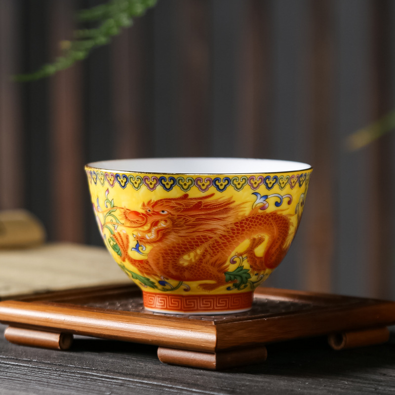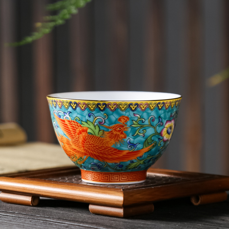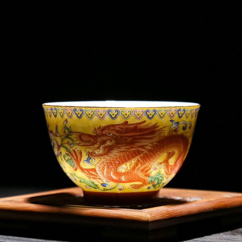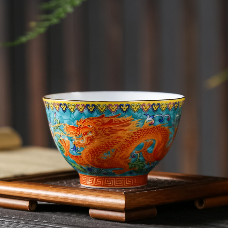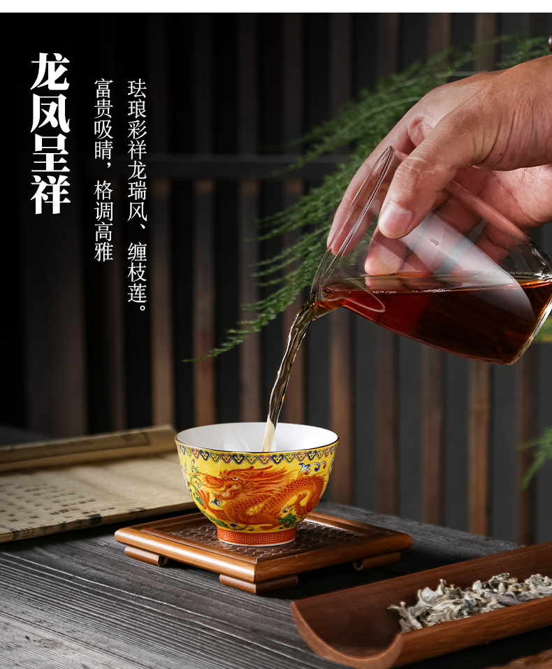 精品茶具 珐琅彩龙凤对杯 单杯主人杯茶碗茶杯陶瓷礼品可LOGO