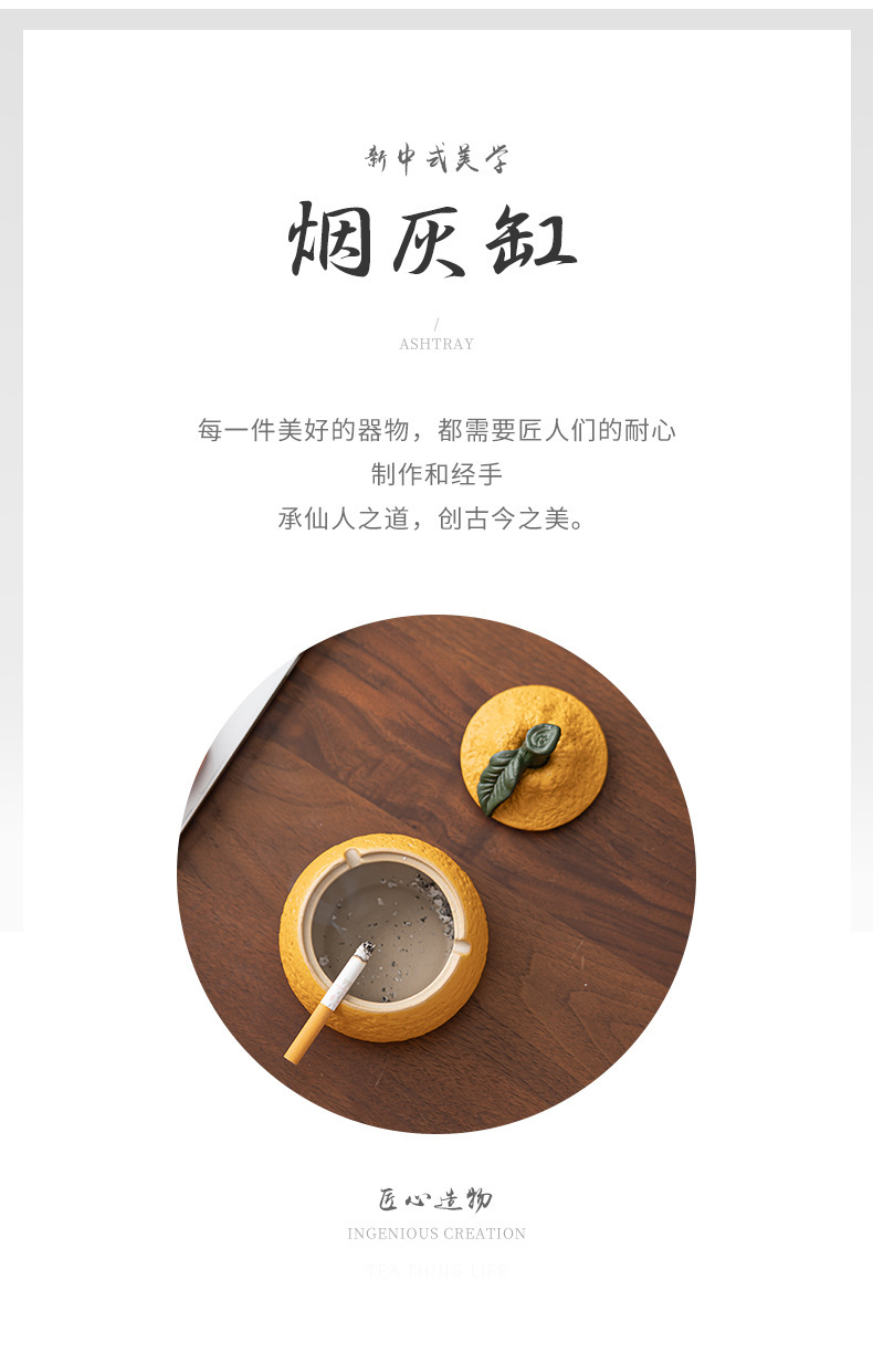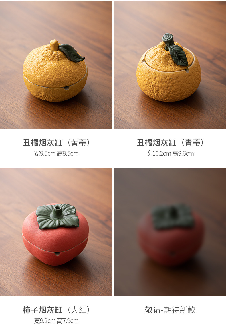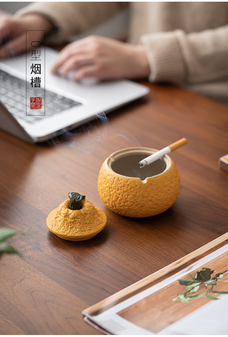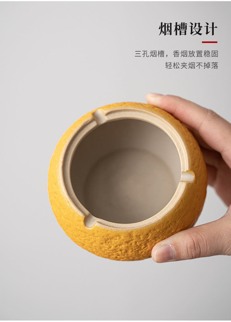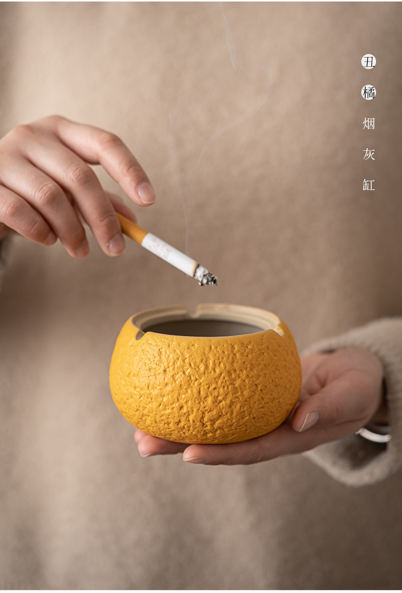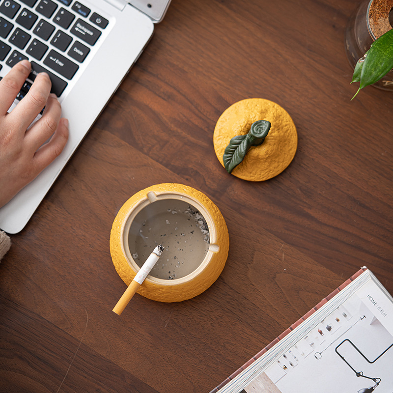 丑橘大吉大利创意陶瓷烟灰缸家用茶几带盖个性潮流装饰防风防飞灰
