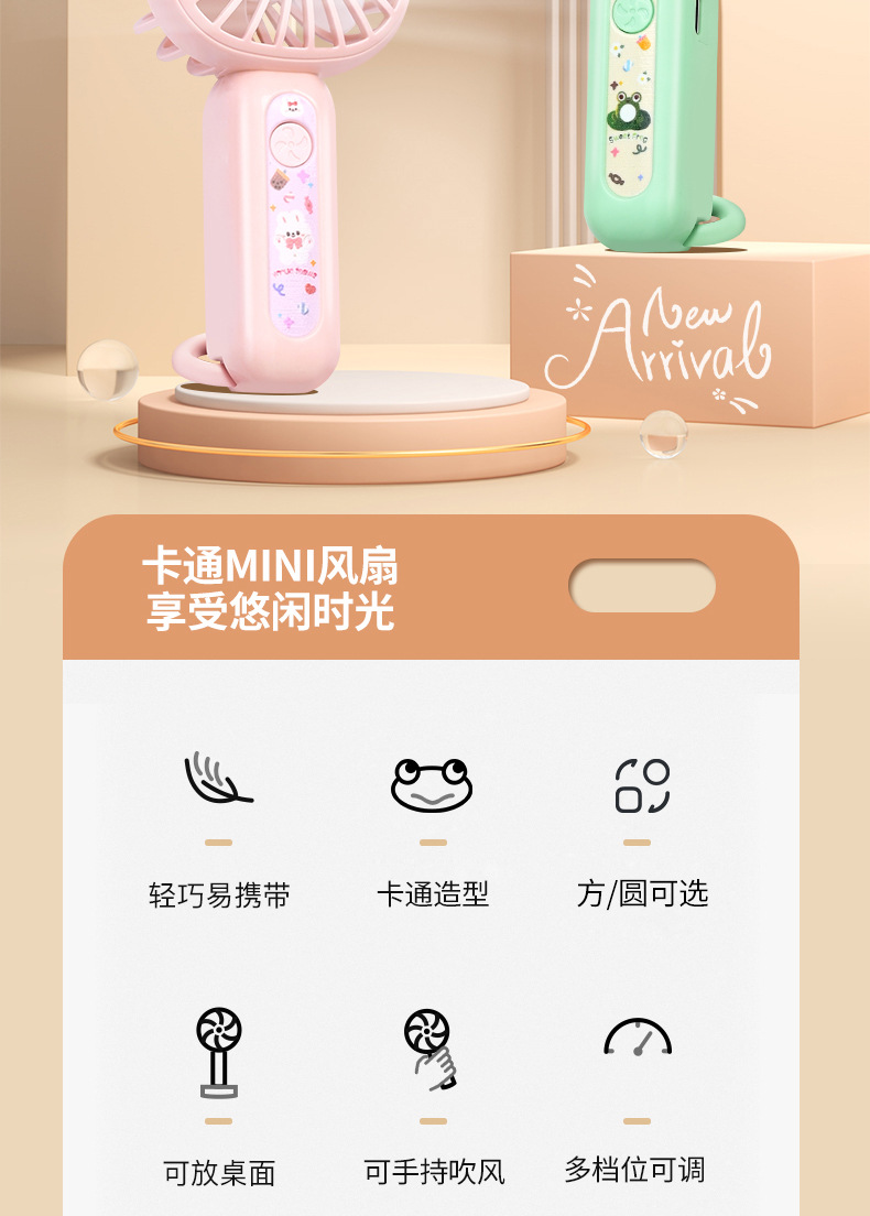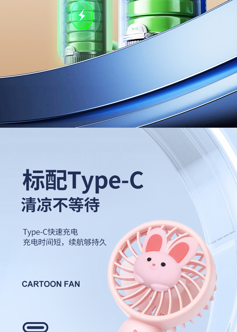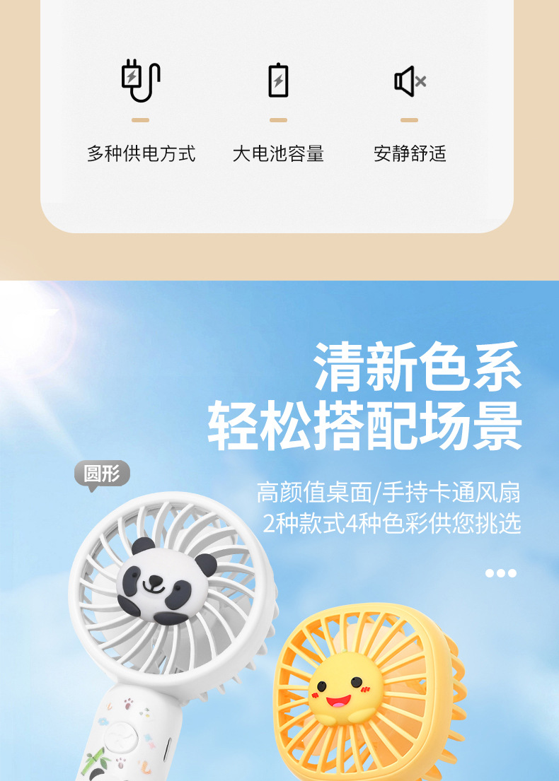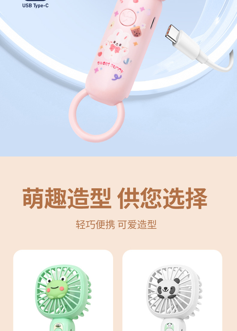 新款可爱手持小风扇静音USB便携式充电风扇儿童礼品跨境风扇厂家
