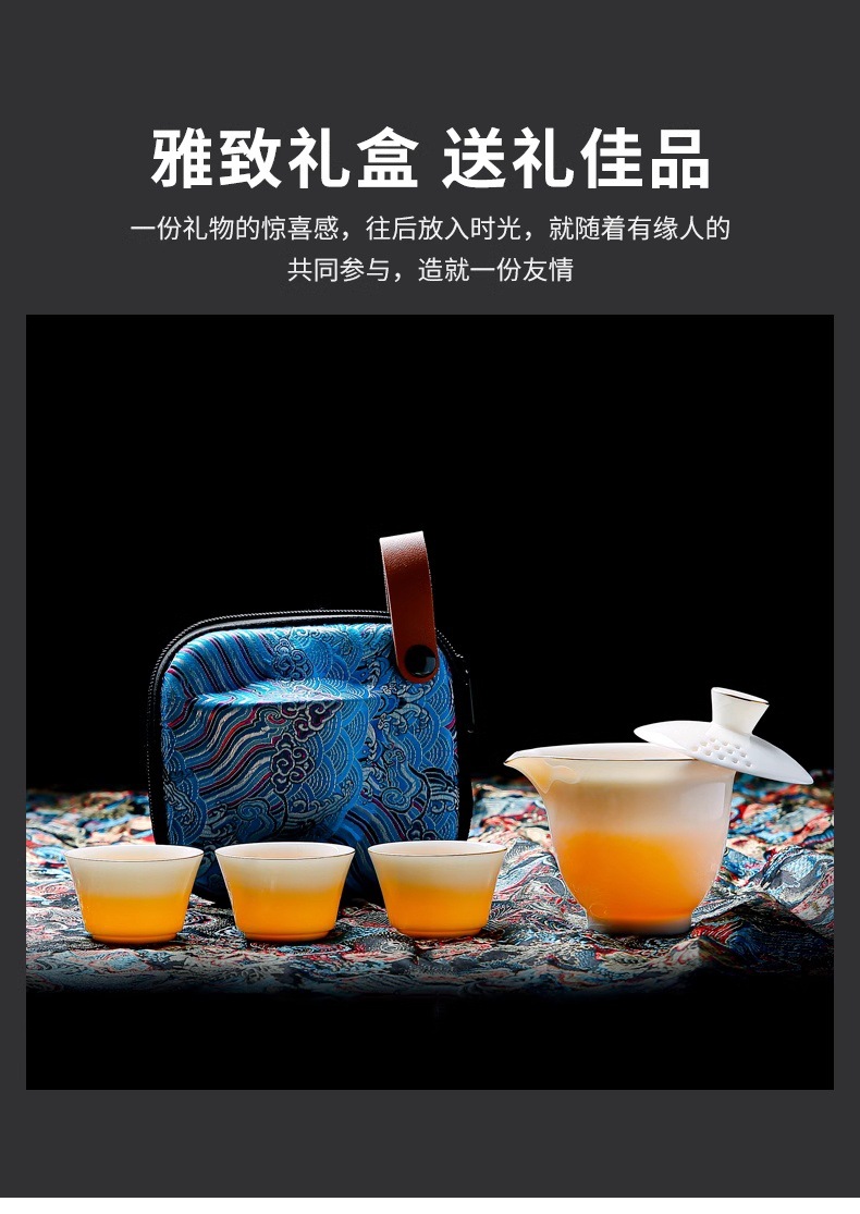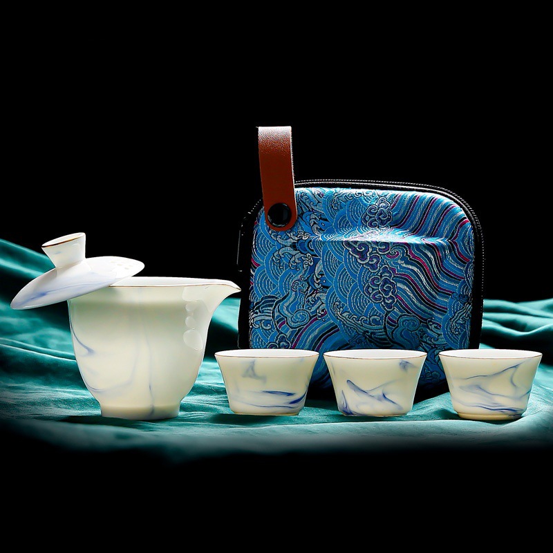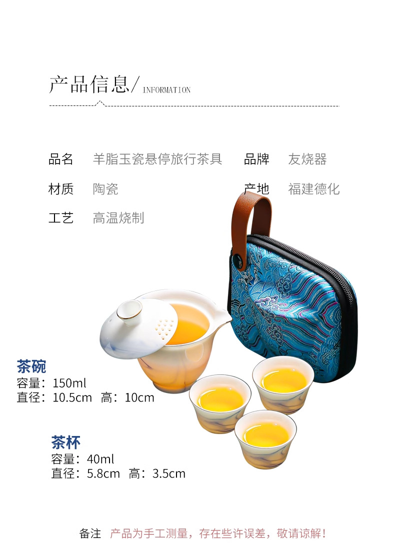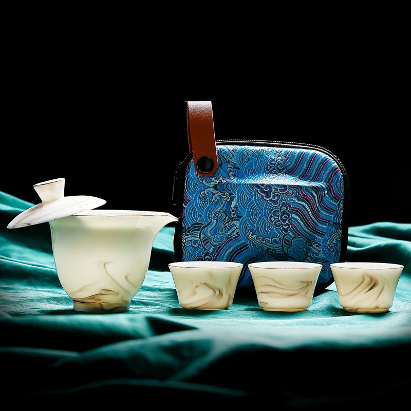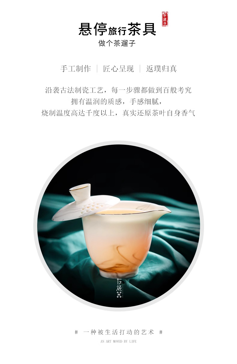 羊脂玉白瓷悬停旋转盖碗茶杯旅行茶具便捷式泡茶器户外露营快客杯