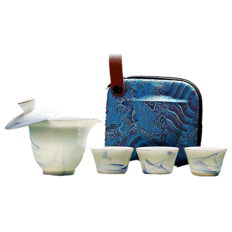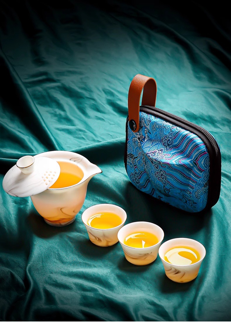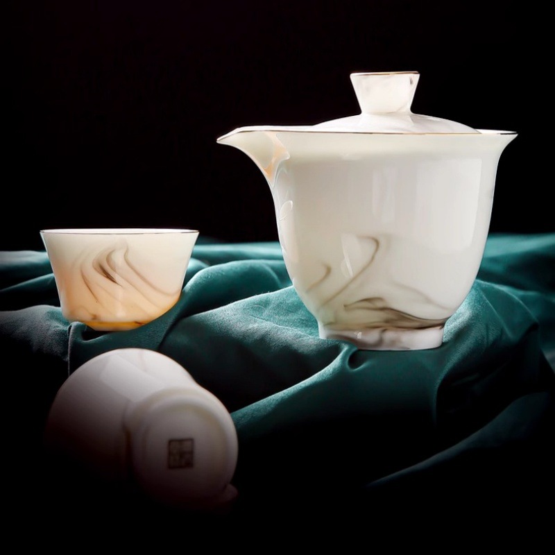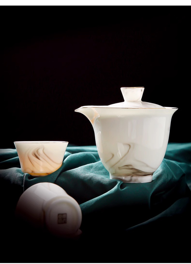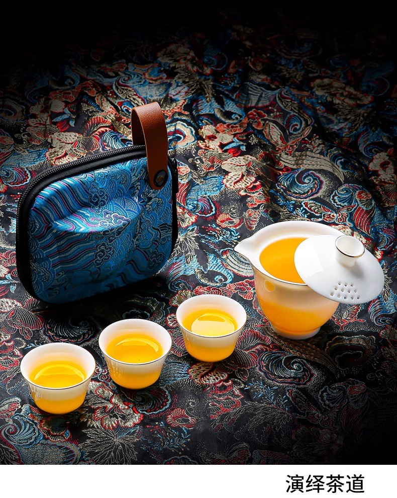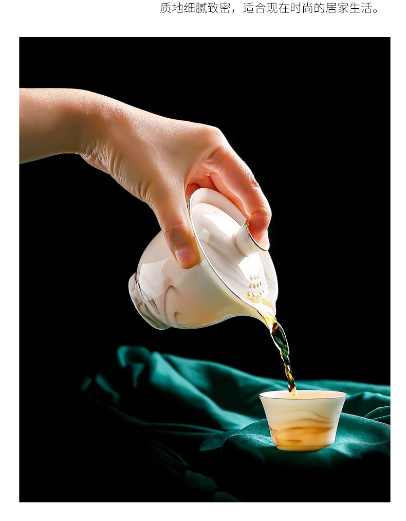羊脂玉白瓷悬停旋转盖碗茶杯旅行茶具便捷式泡茶器户外露营快客杯