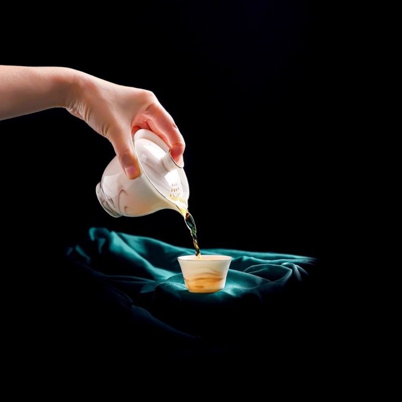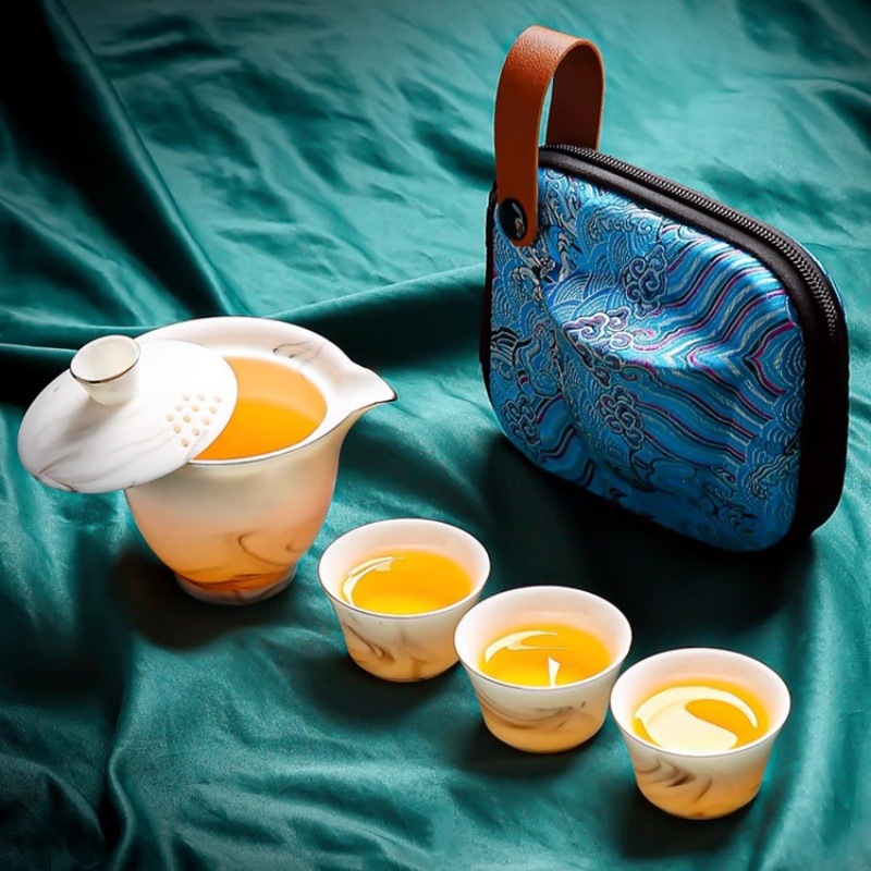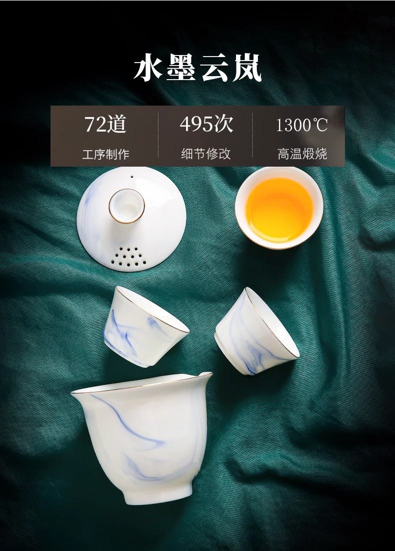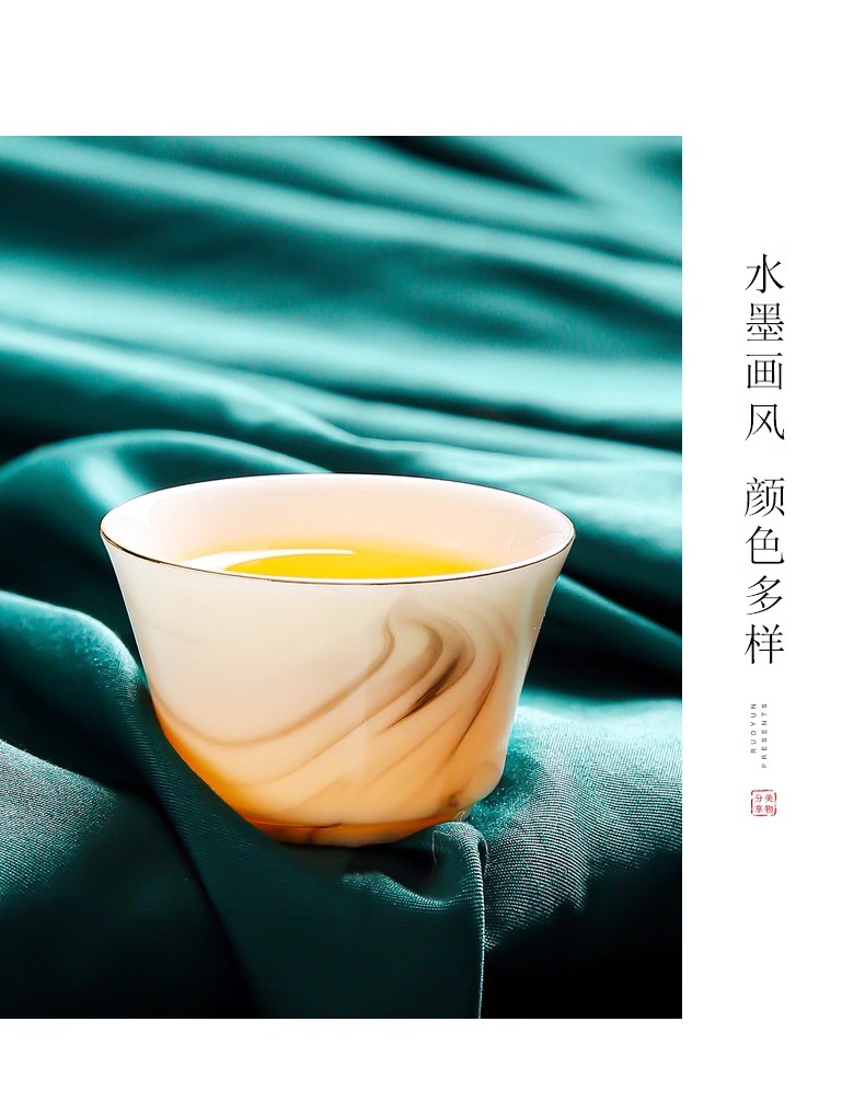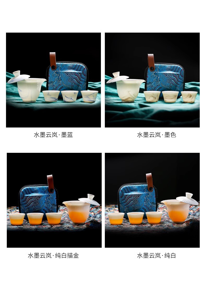 羊脂玉白瓷悬停旋转盖碗茶杯旅行茶具便捷式泡茶器户外露营快客杯