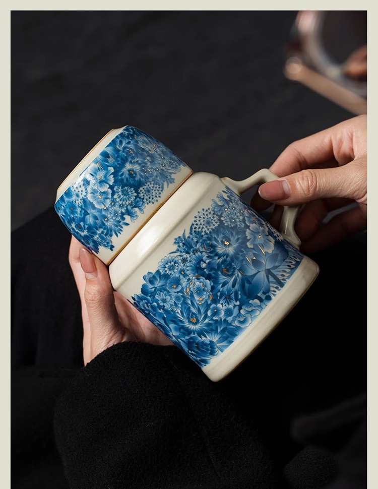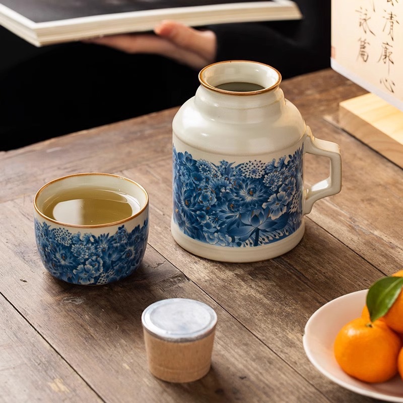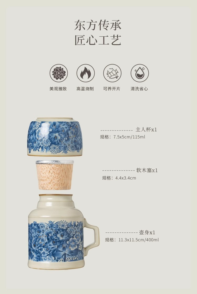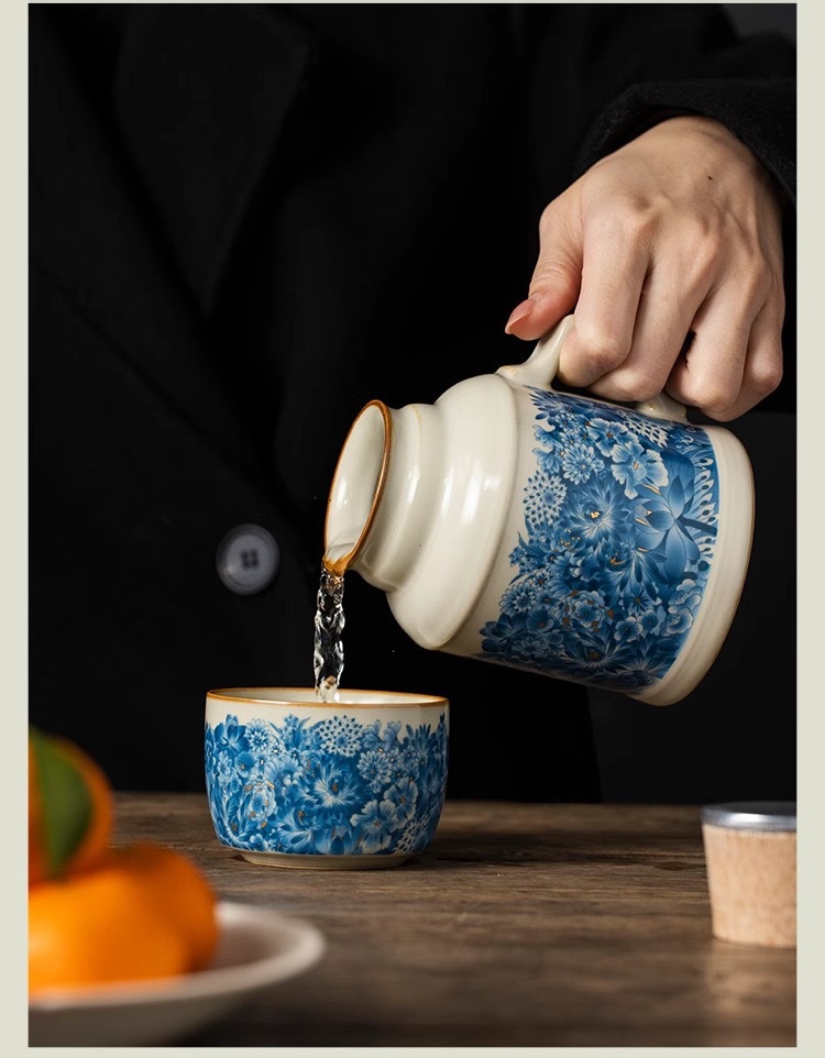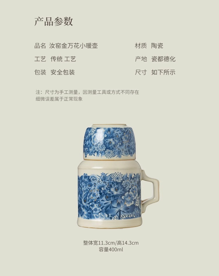 汝窑金万花小暖壶家用闷陶瓷茶壶泡茶壶功夫茶具泡茶壶伴手礼礼盒