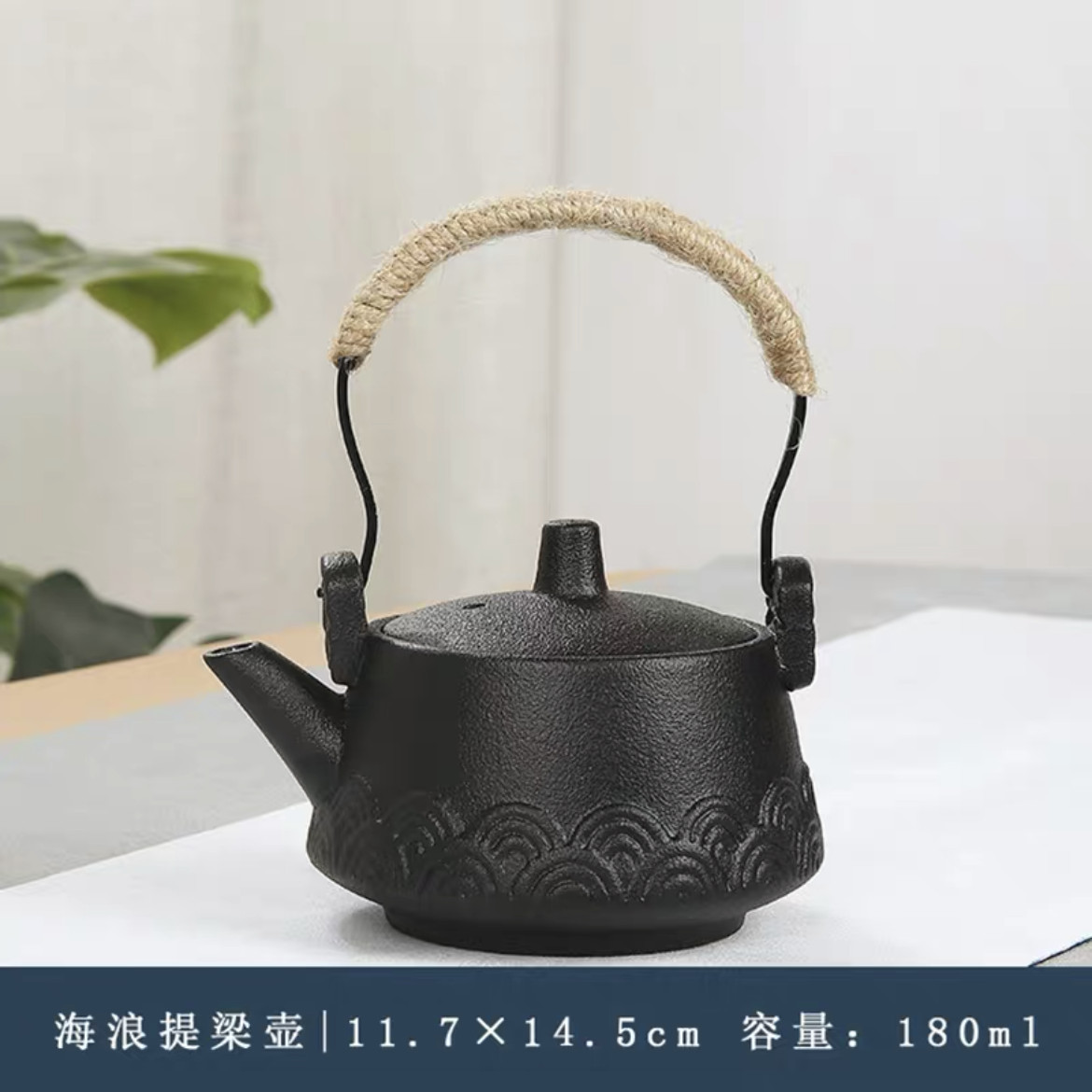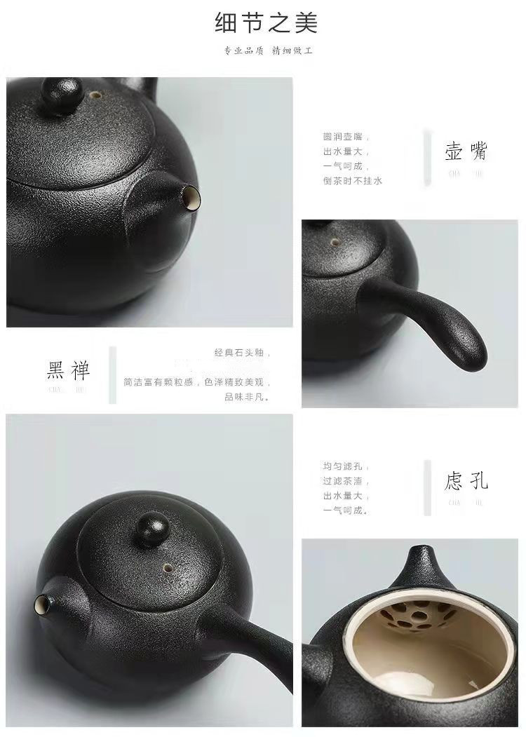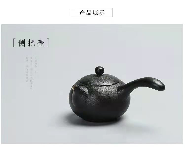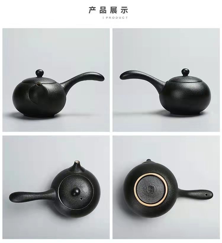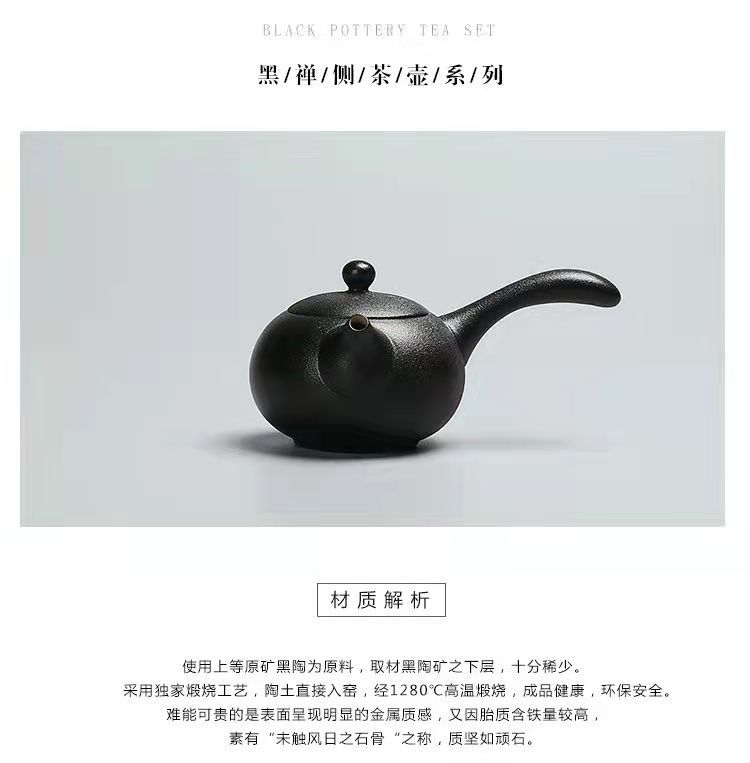 黑陶茶壶单壶家用现代简约陶瓷侧柄紫砂功夫茶具泡茶可明火煮