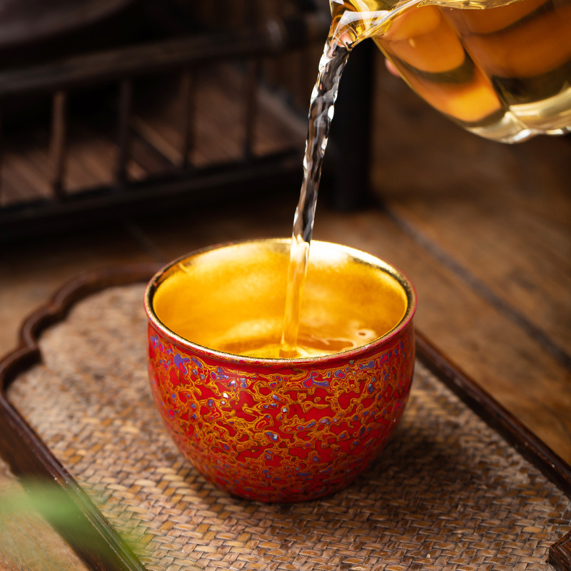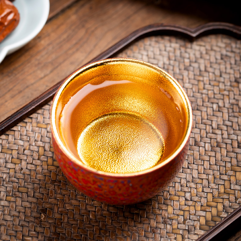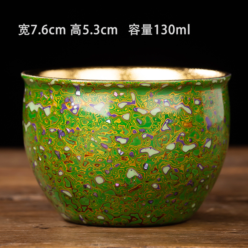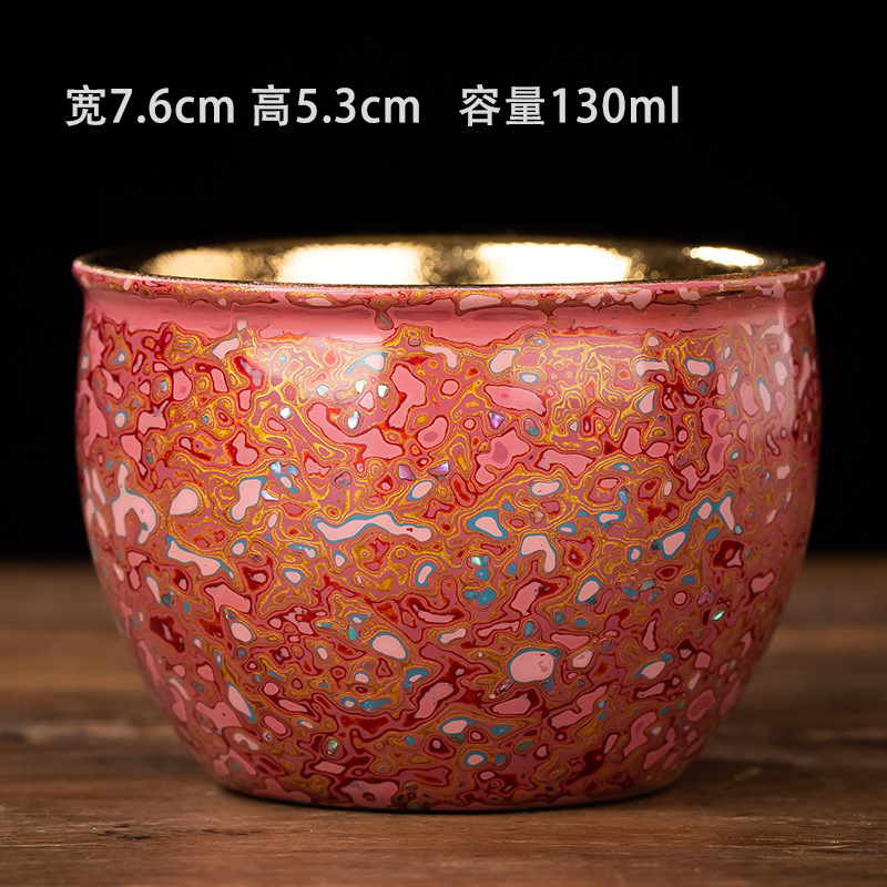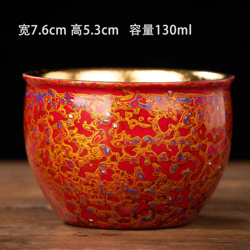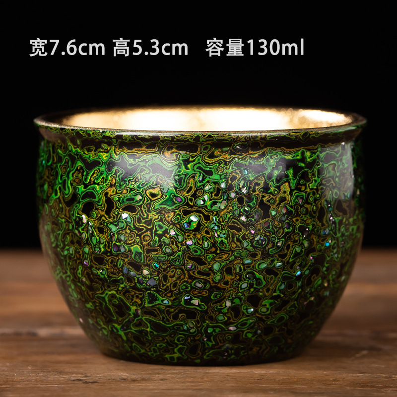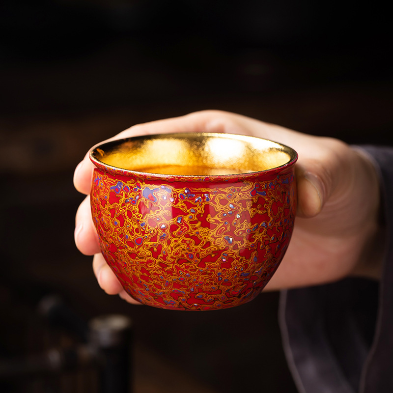 高档茶盏手工大漆茶具鎏金杯功夫茶杯缸单个主人杯陶瓷礼盒装
