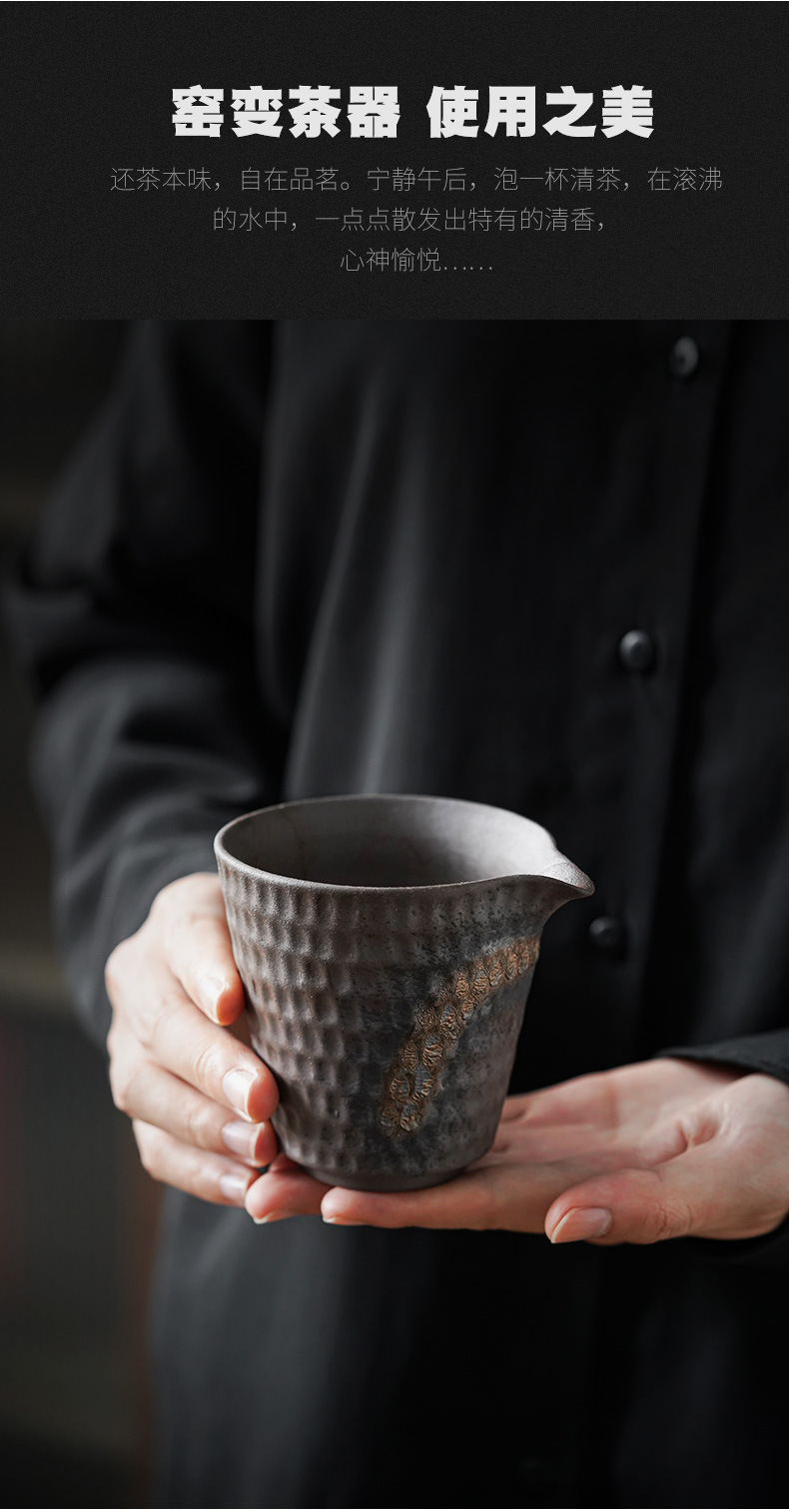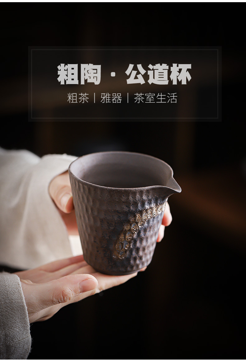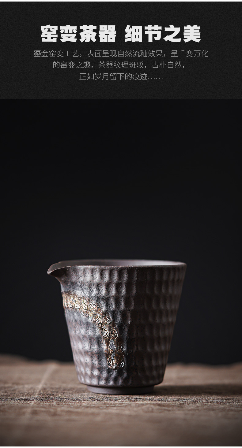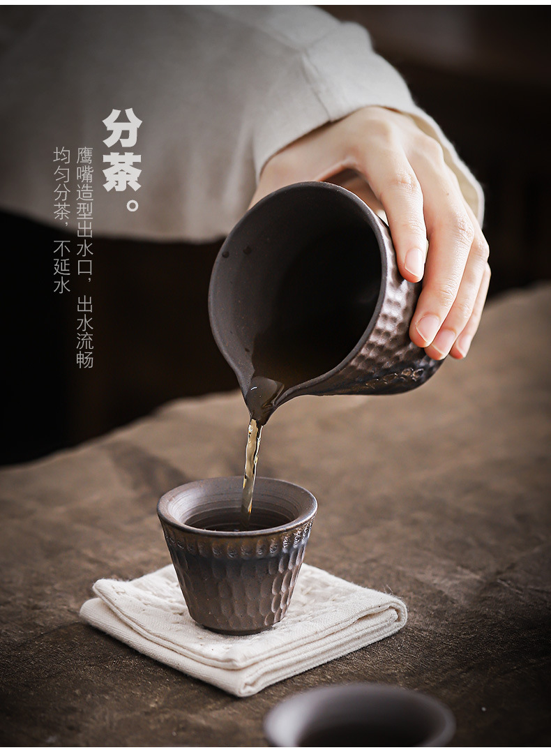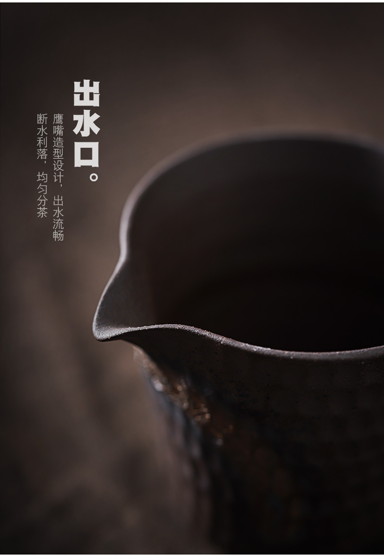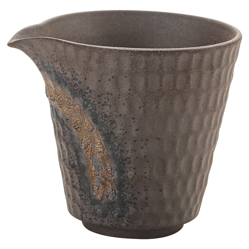 鎏金铁釉侧把公道杯茶海日式手工功夫茶具复古粗陶分茶器公杯匀杯