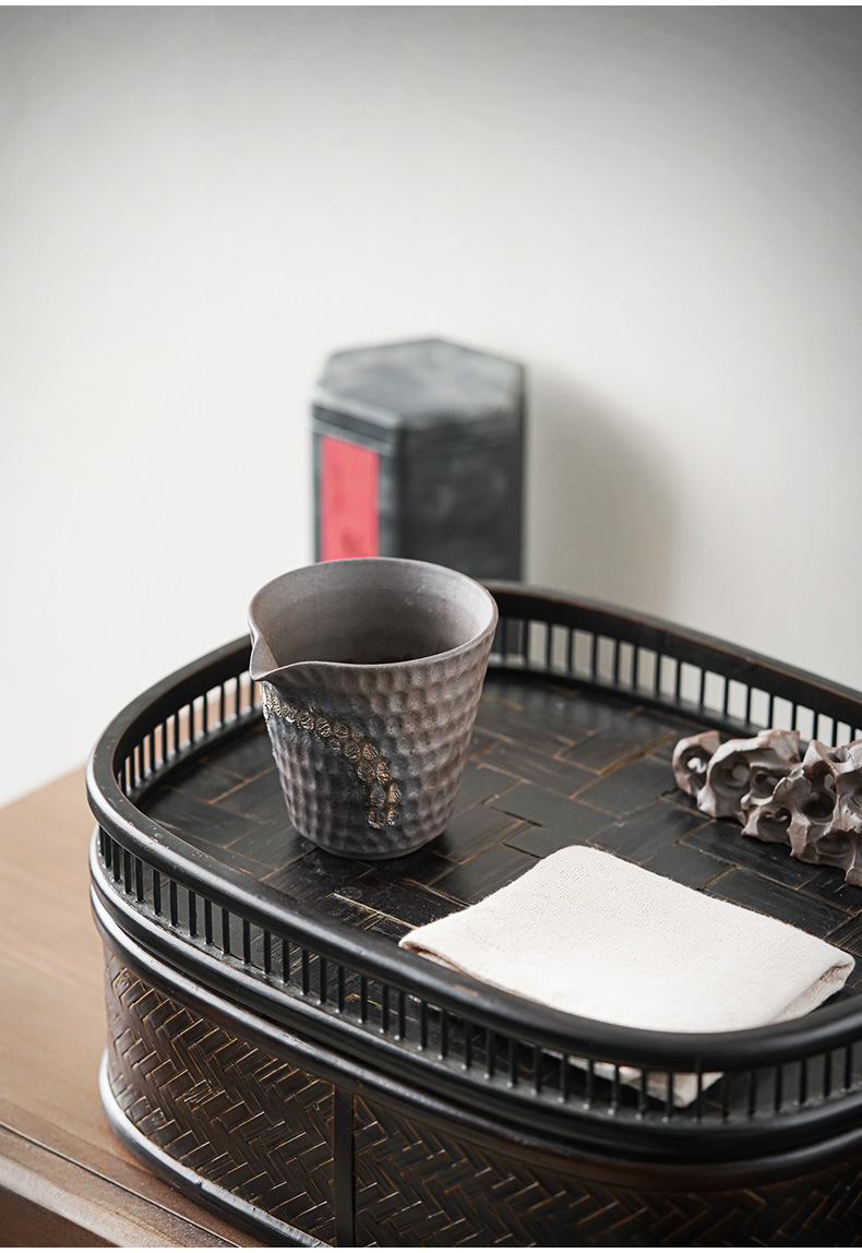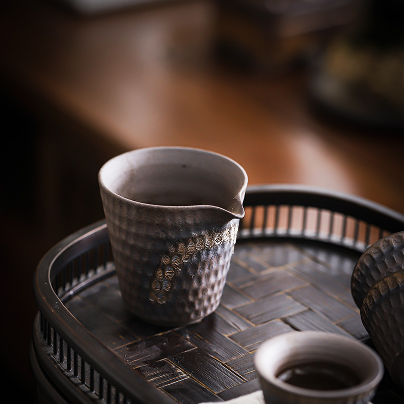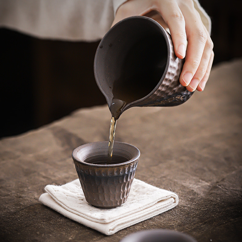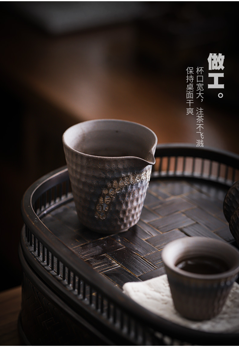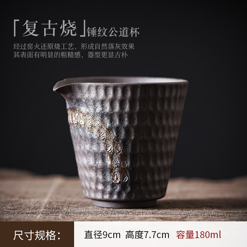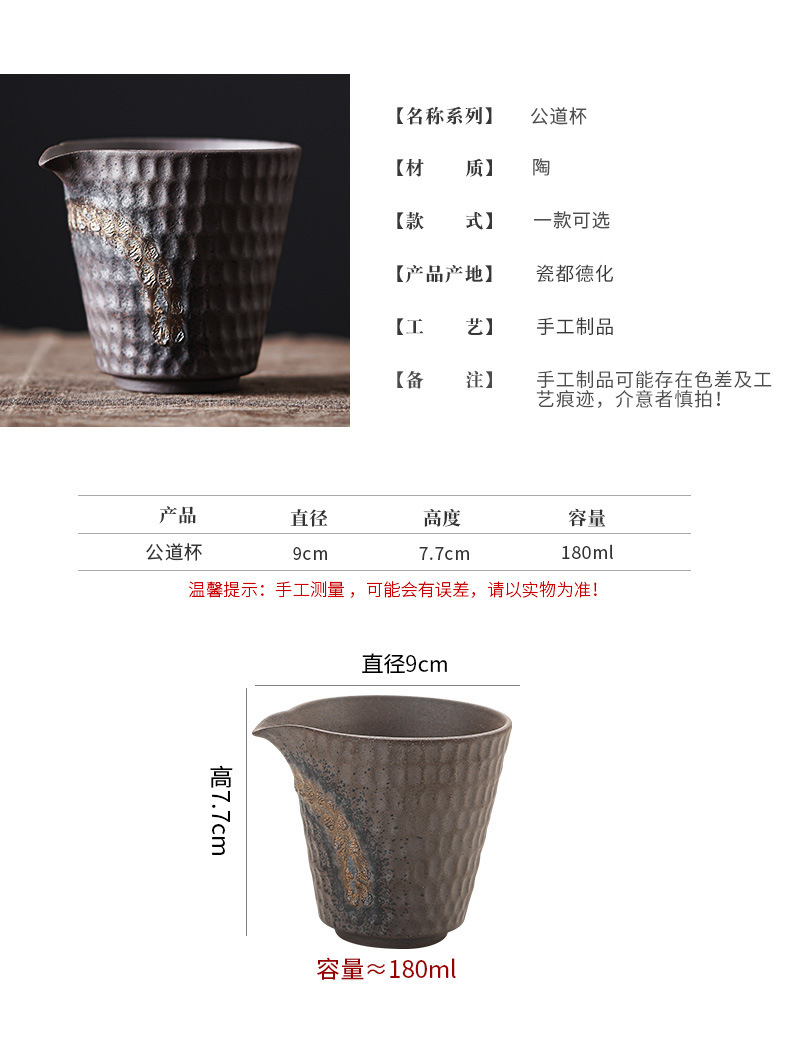 鎏金铁釉侧把公道杯茶海日式手工功夫茶具复古粗陶分茶器公杯匀杯