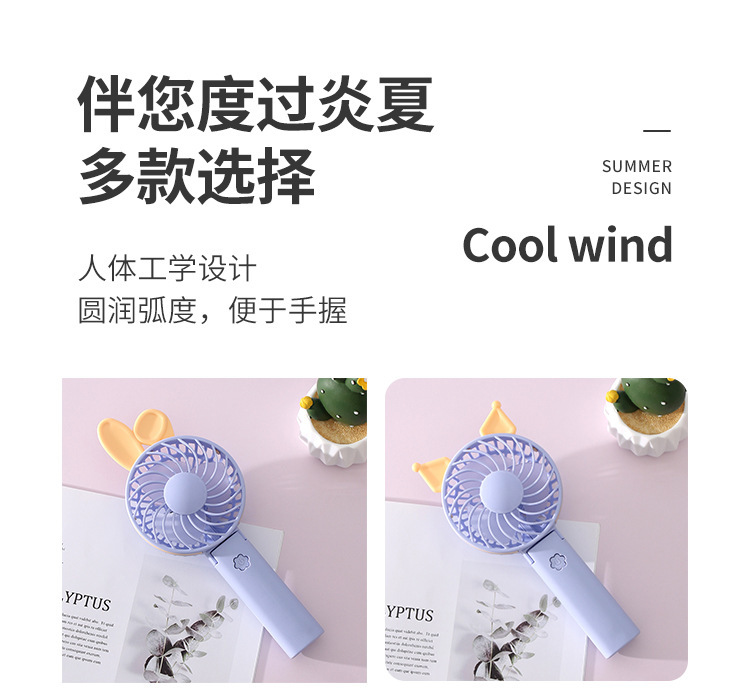 萌趣可爱手持迷你简约小风扇 usb充电便携式折叠电扇批发制定logo