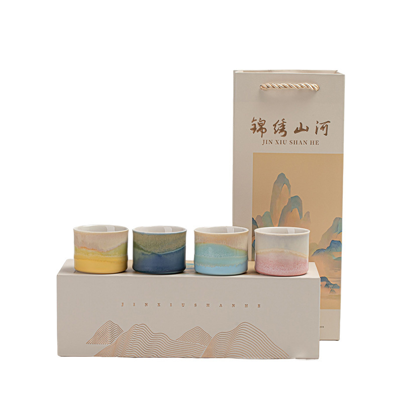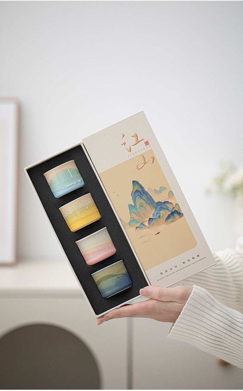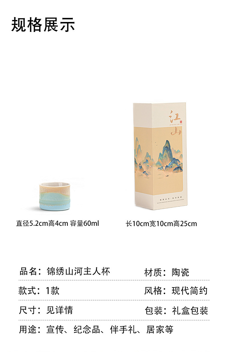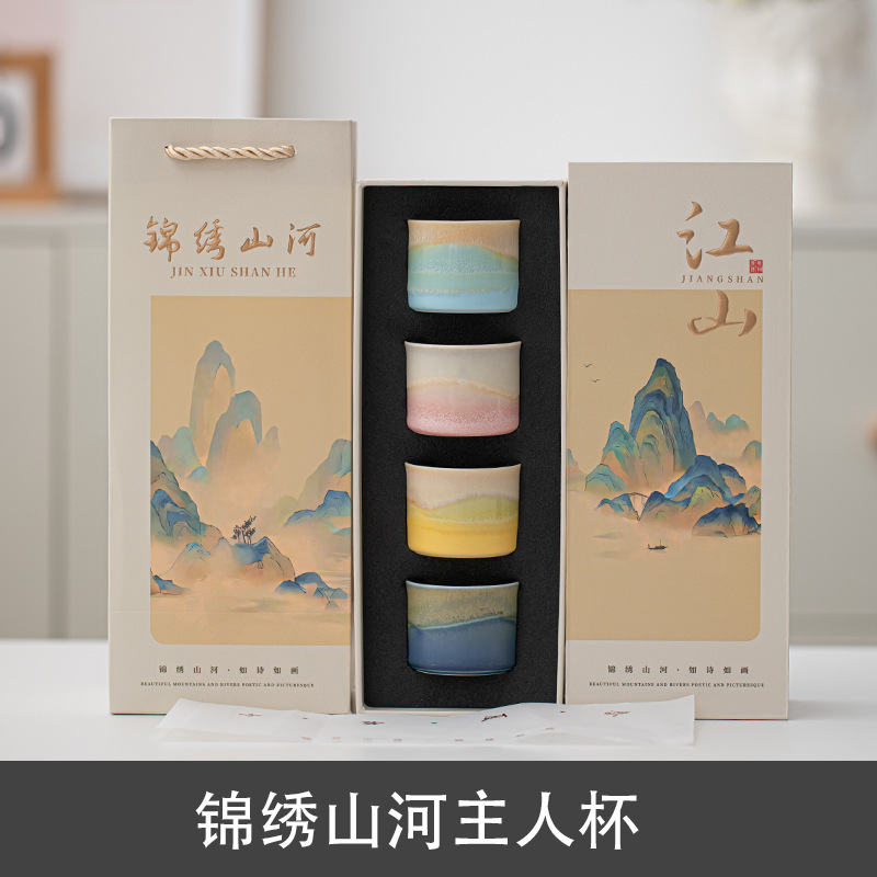 锦绣江山文创国风茶杯套装礼盒送人礼物主人杯家用办公商务