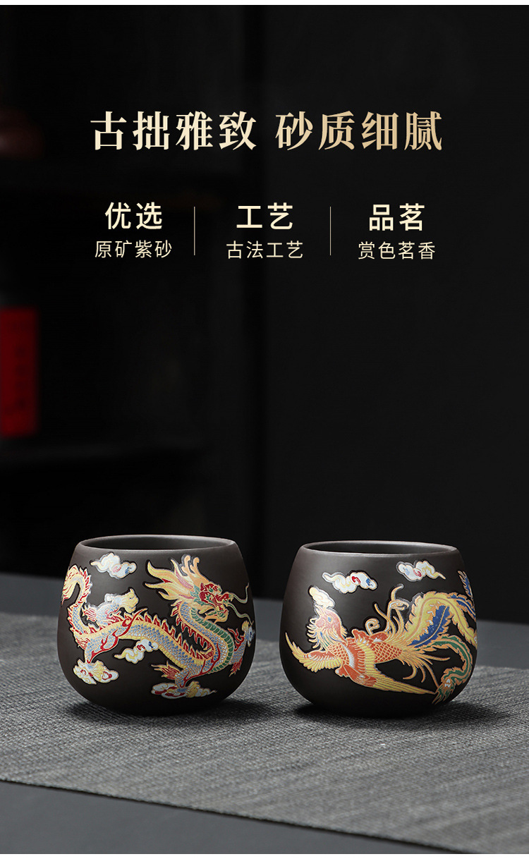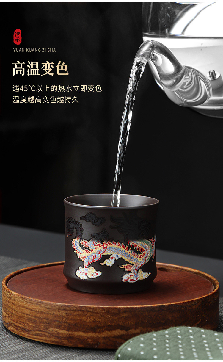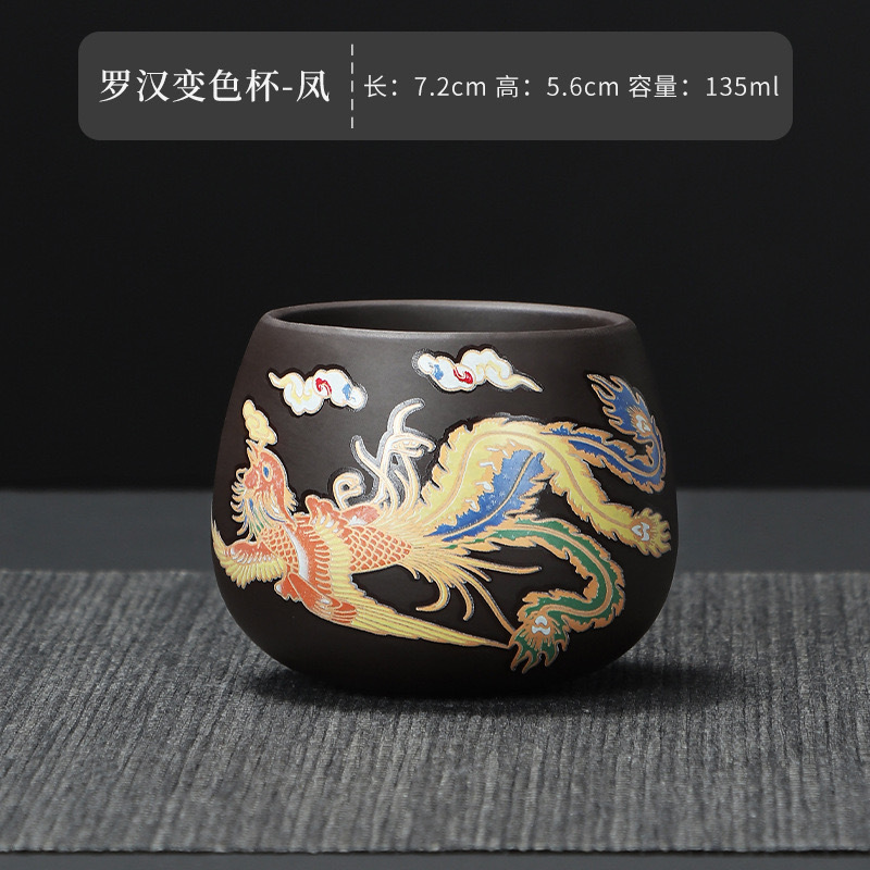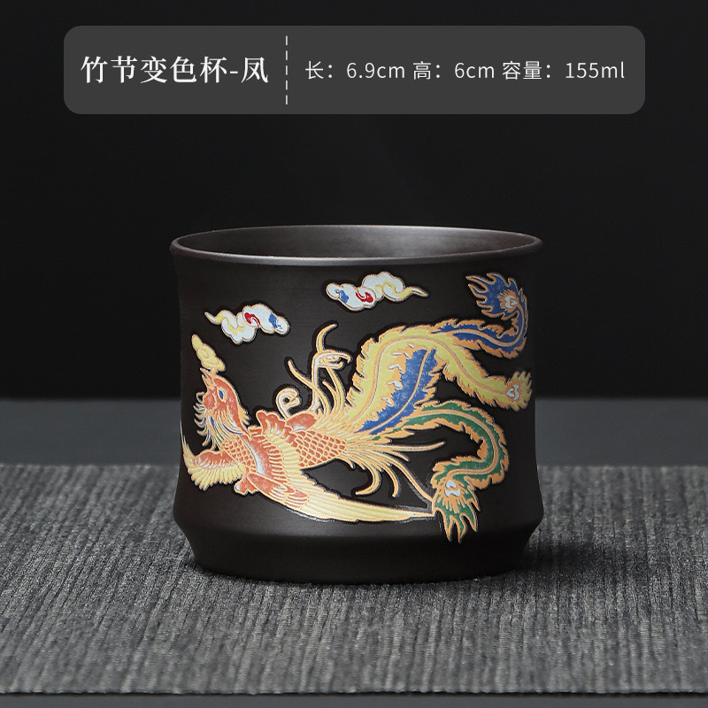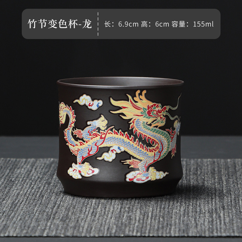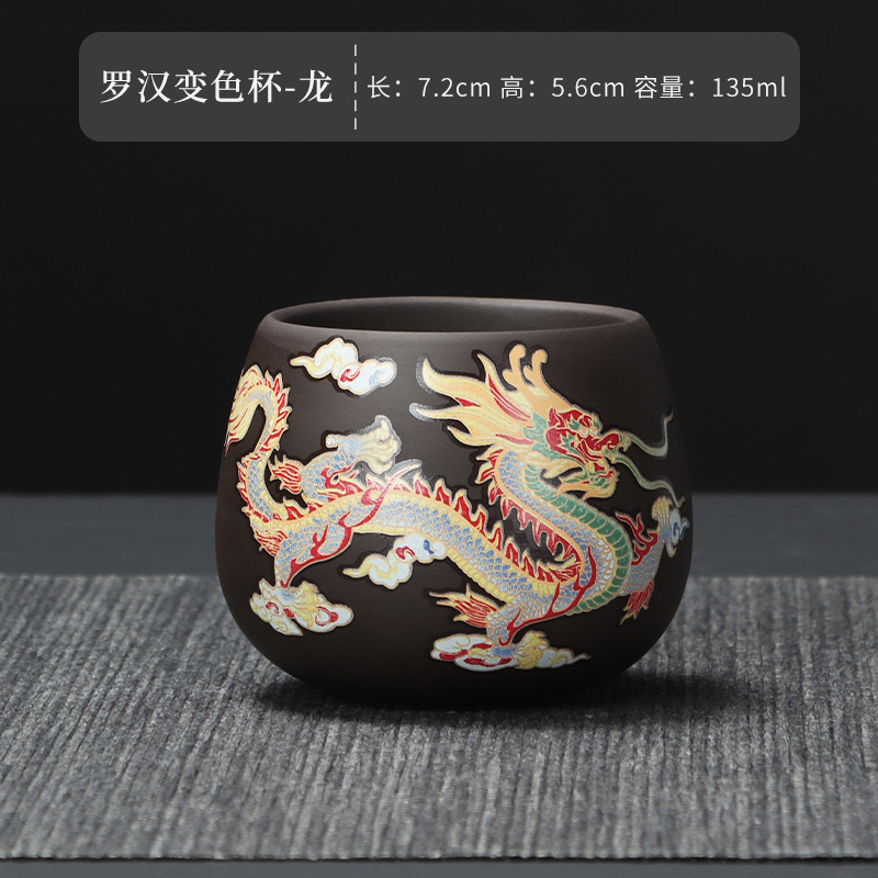 紫砂变色温变遇热龙凤主人杯紫砂茶杯单杯品茗杯仿古茶杯情侣对杯