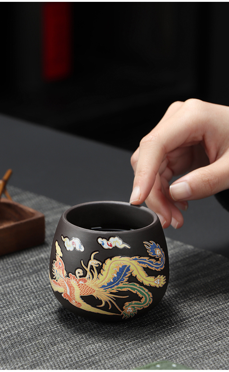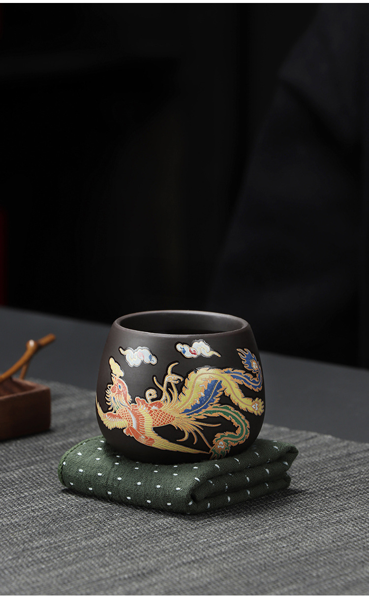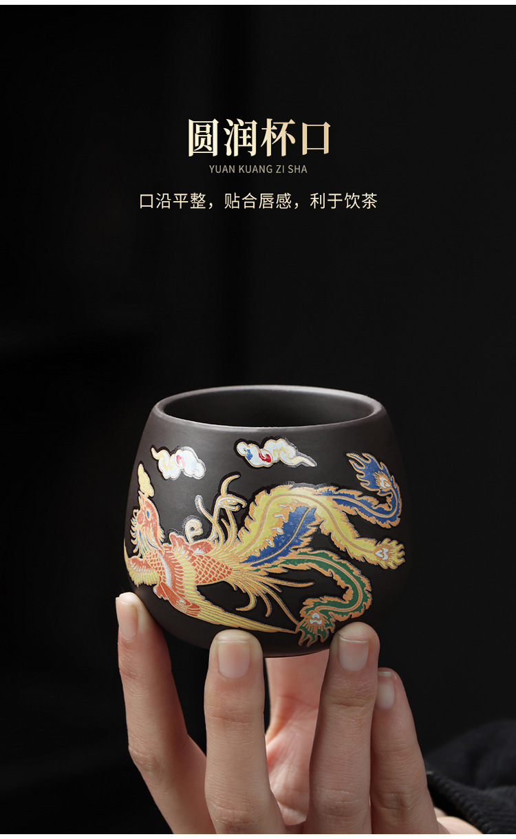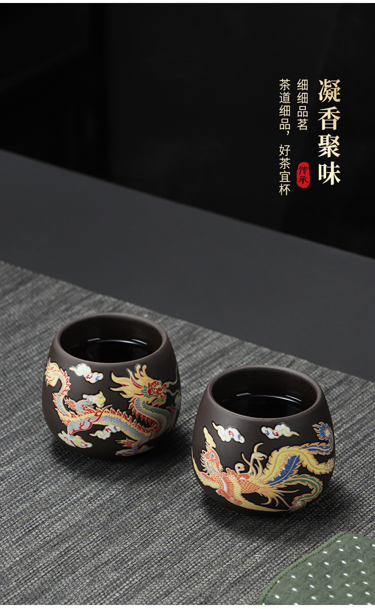 紫砂变色温变遇热龙凤主人杯紫砂茶杯单杯品茗杯仿古茶杯情侣对杯