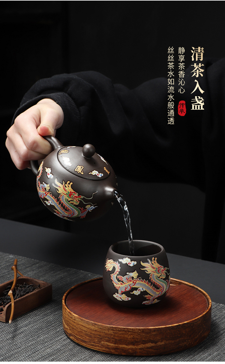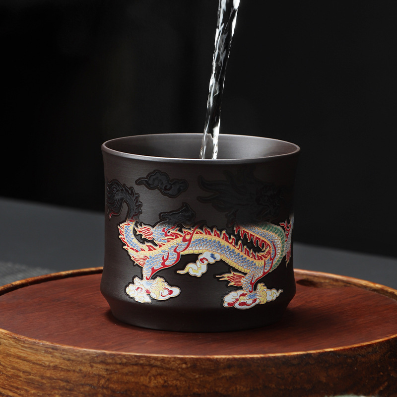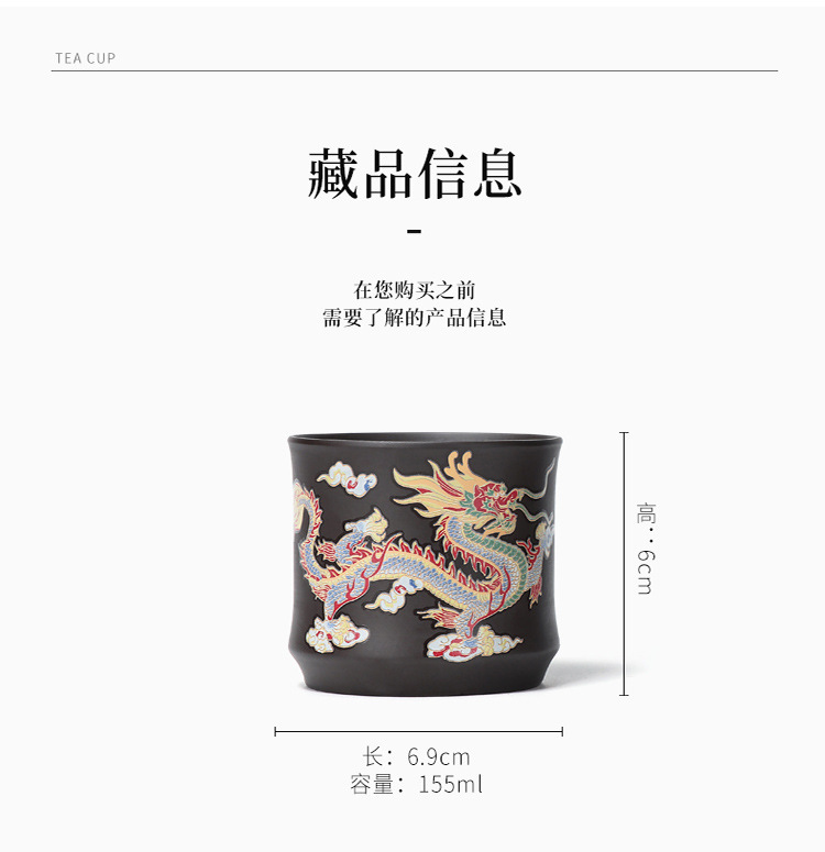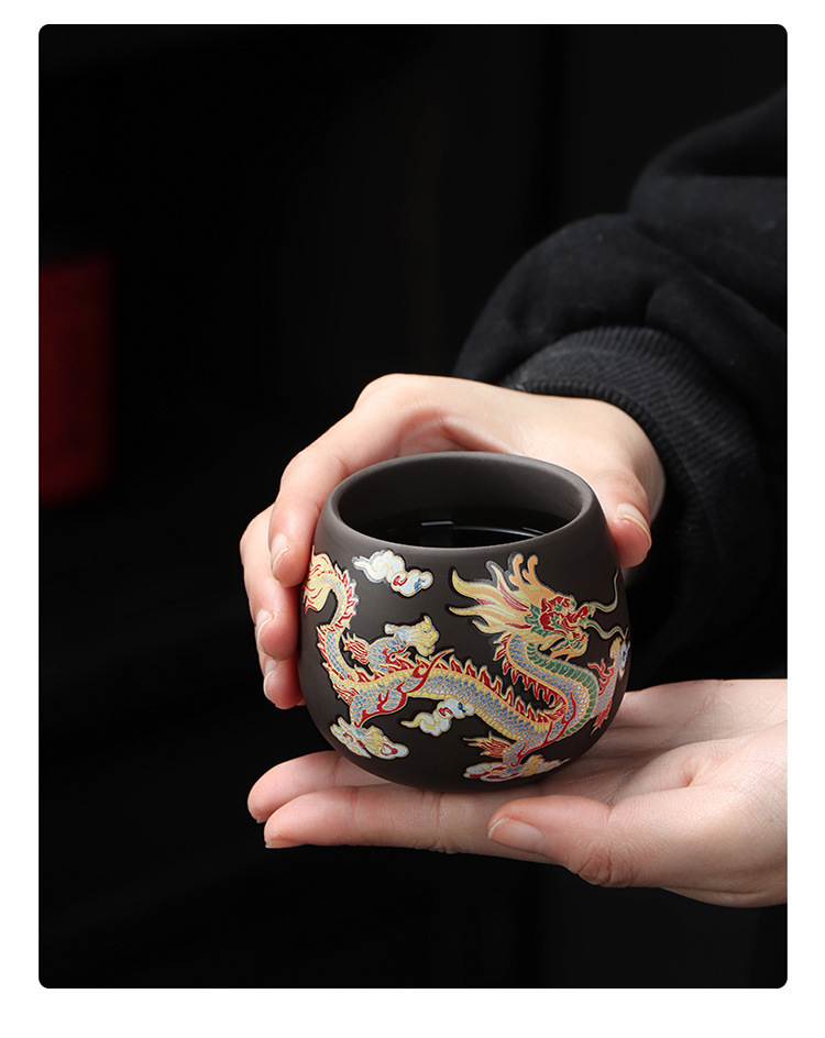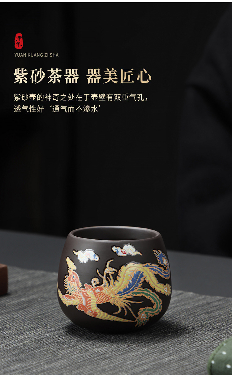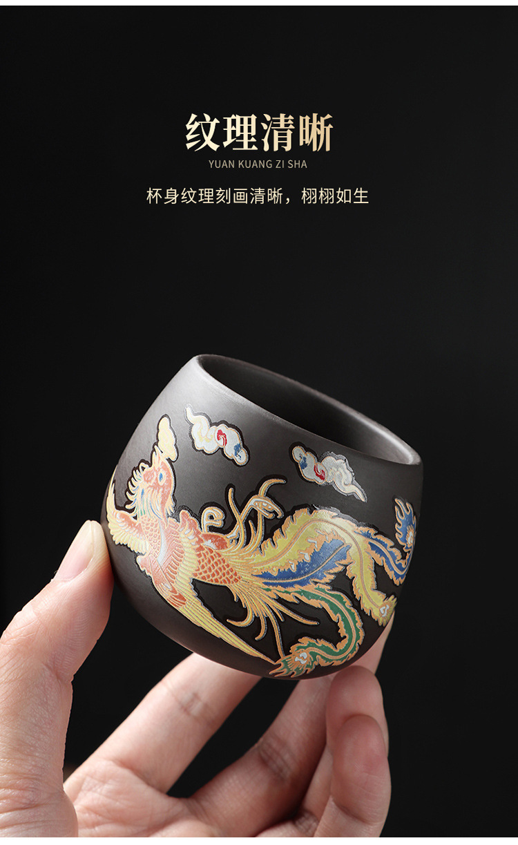 紫砂变色温变遇热龙凤主人杯紫砂茶杯单杯品茗杯仿古茶杯情侣对杯