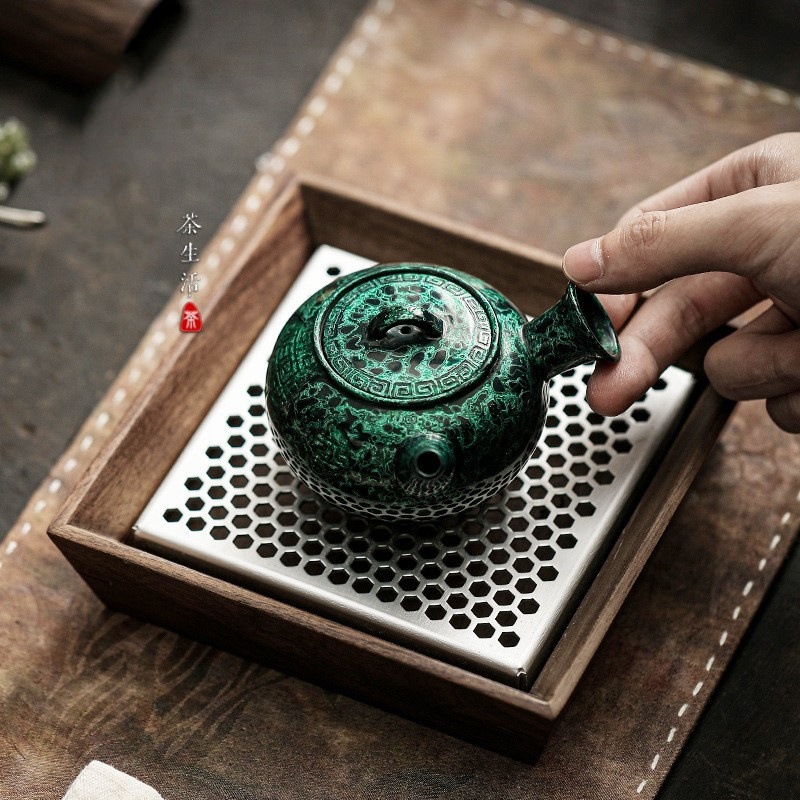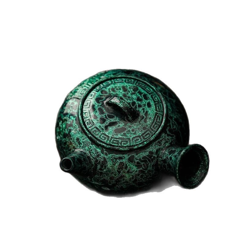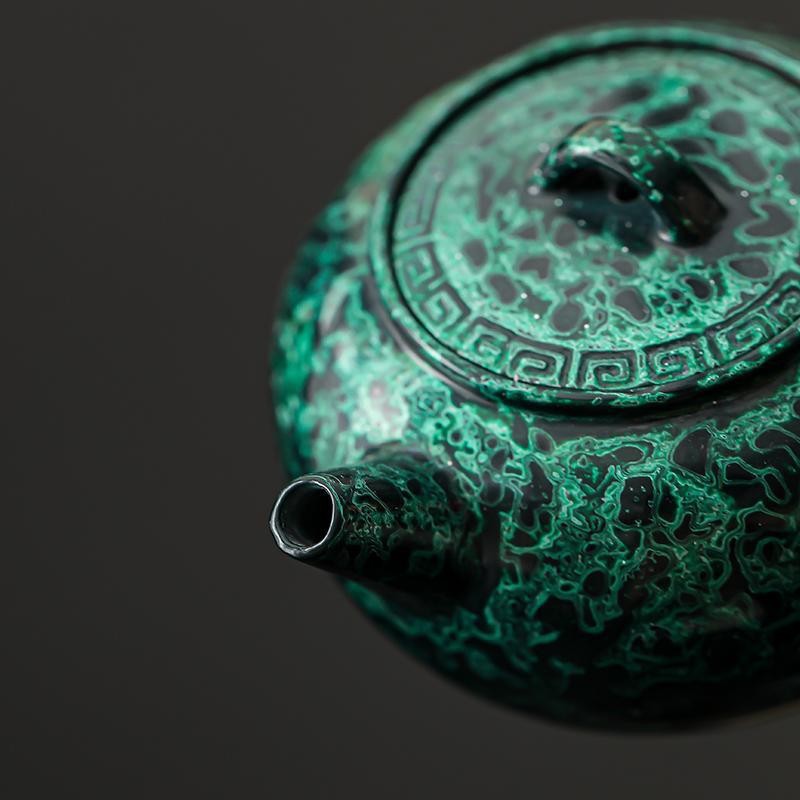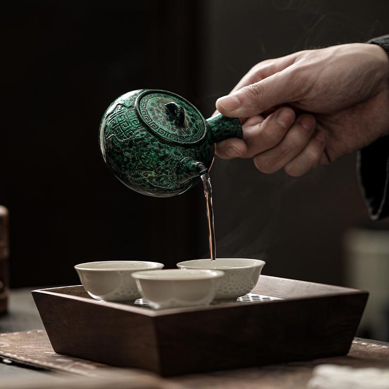 侘寂风手作漆器茶具粗陶茶壶祖母绿家用小容量天然大漆侧把泡茶壶