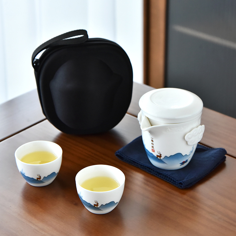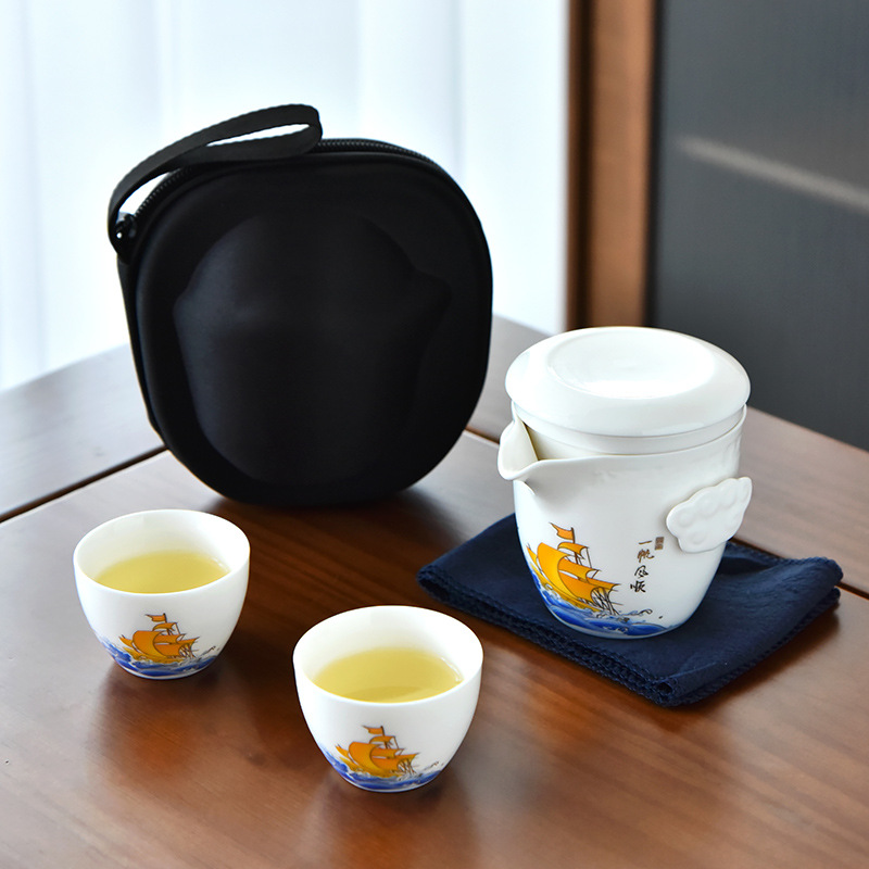 旅行茶具套装随身一壶两杯快客杯便携式陶瓷商务伴手礼品logo制定