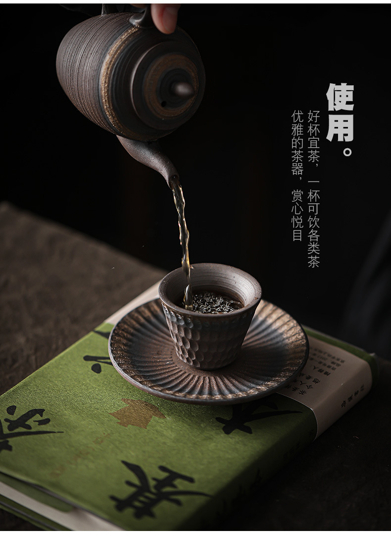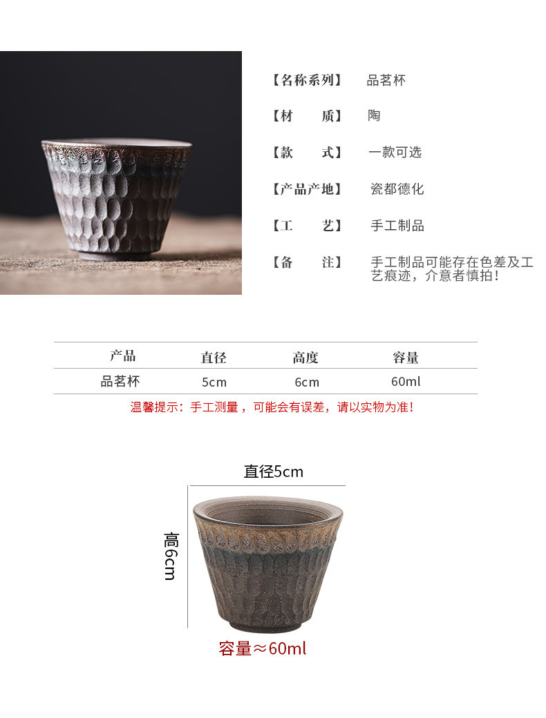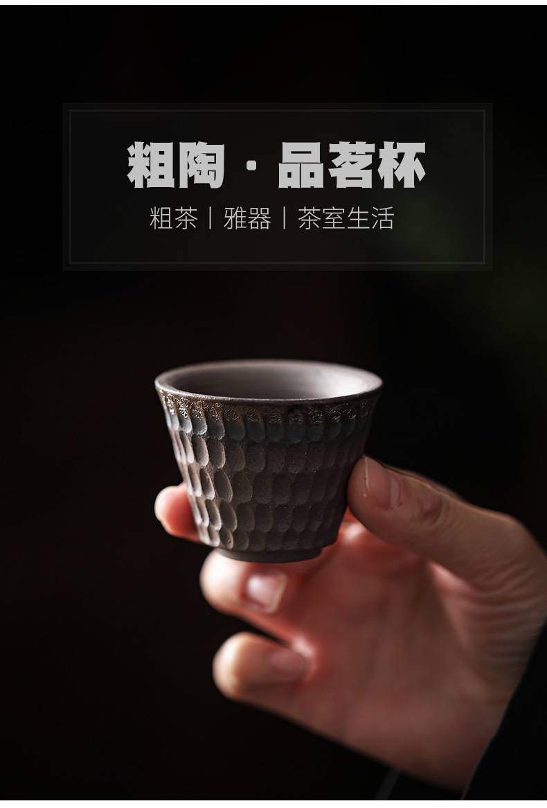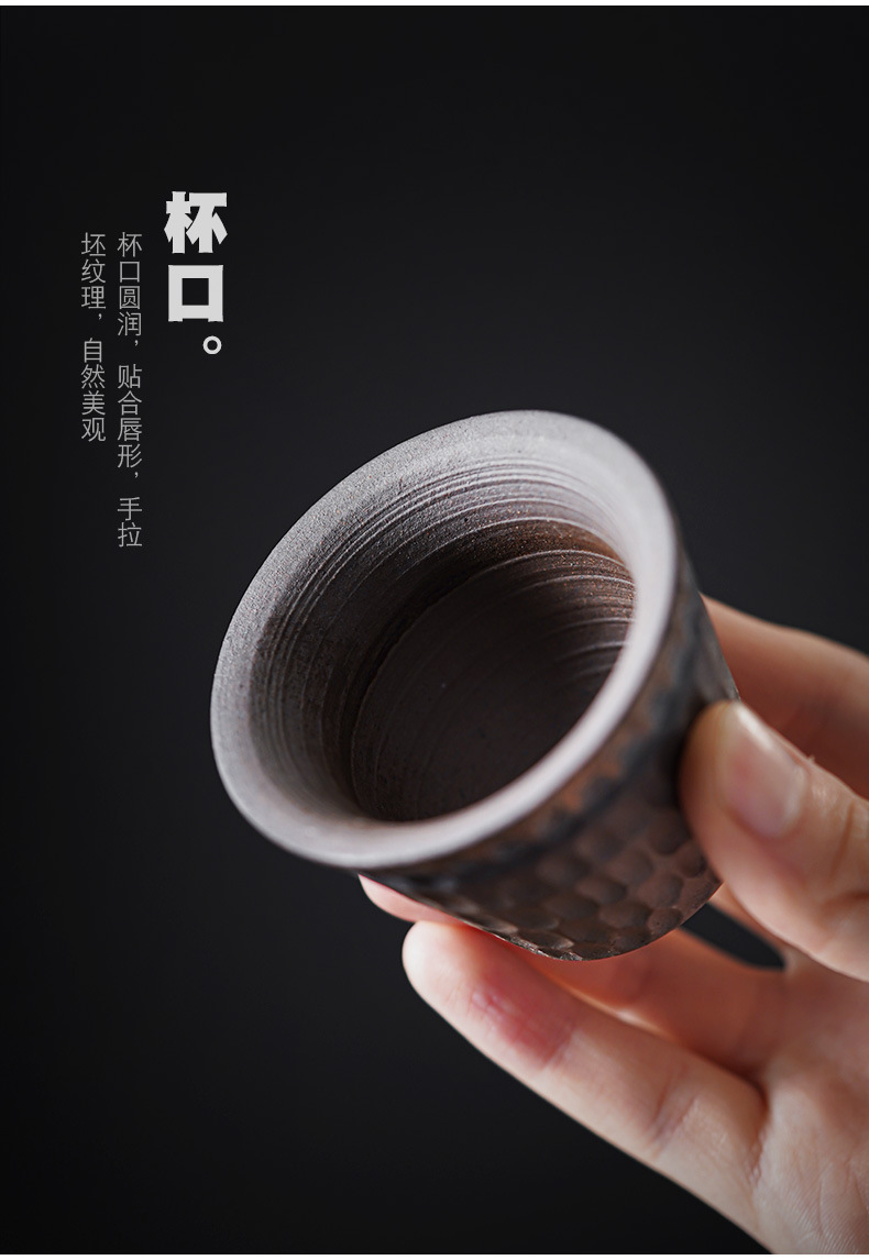 复古功夫茶具家用主人杯品茗杯日式烧陶瓷茶杯小单杯仿柴鎏金茶碗